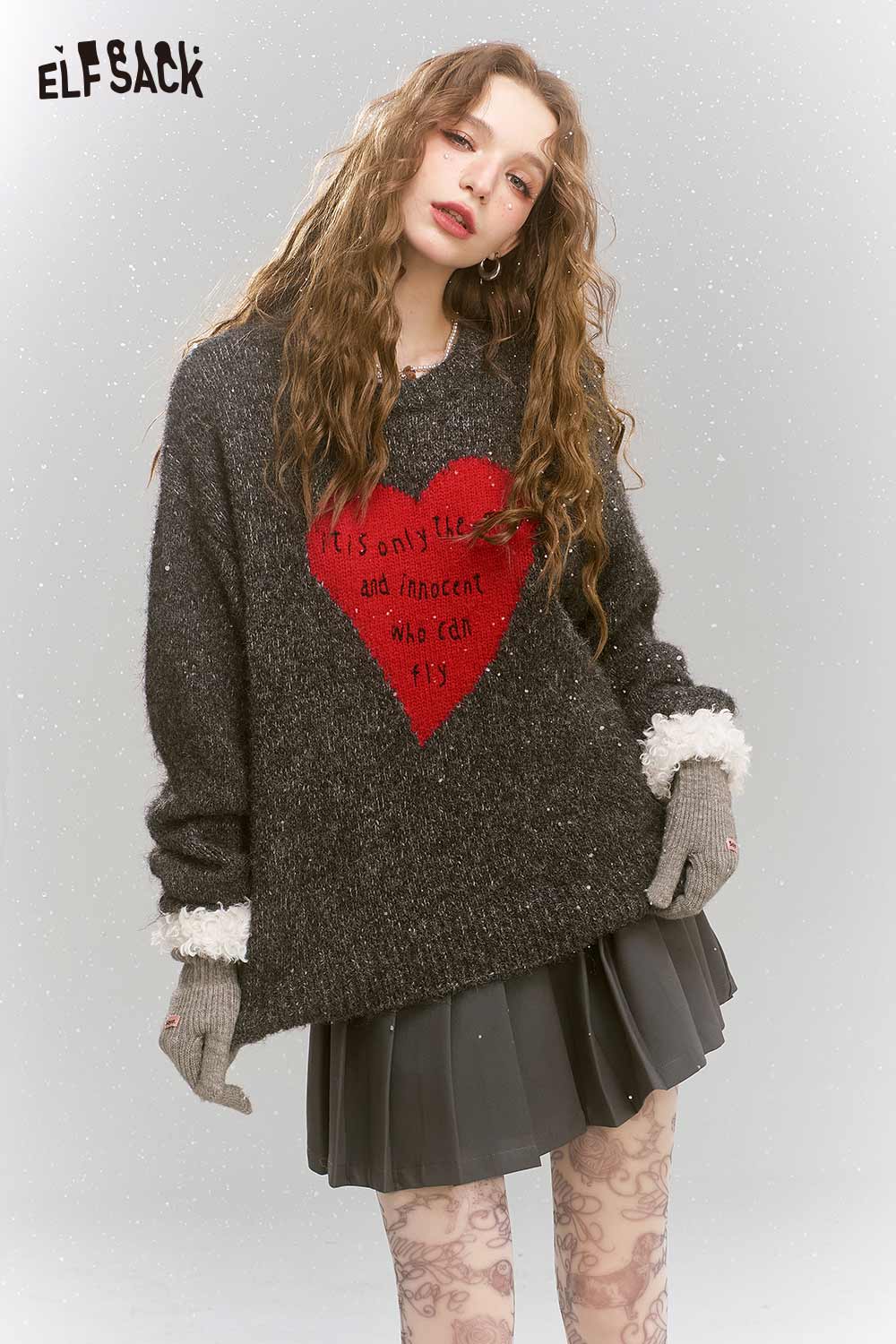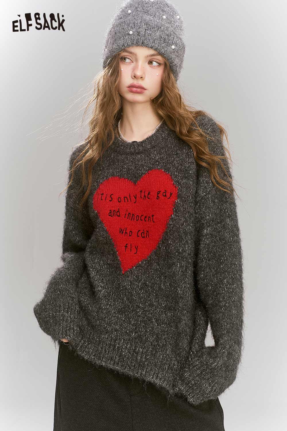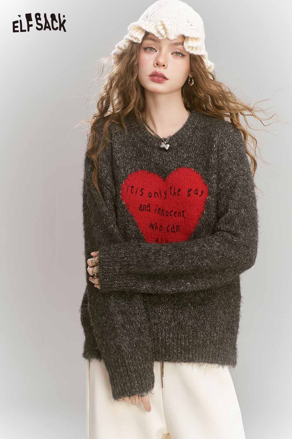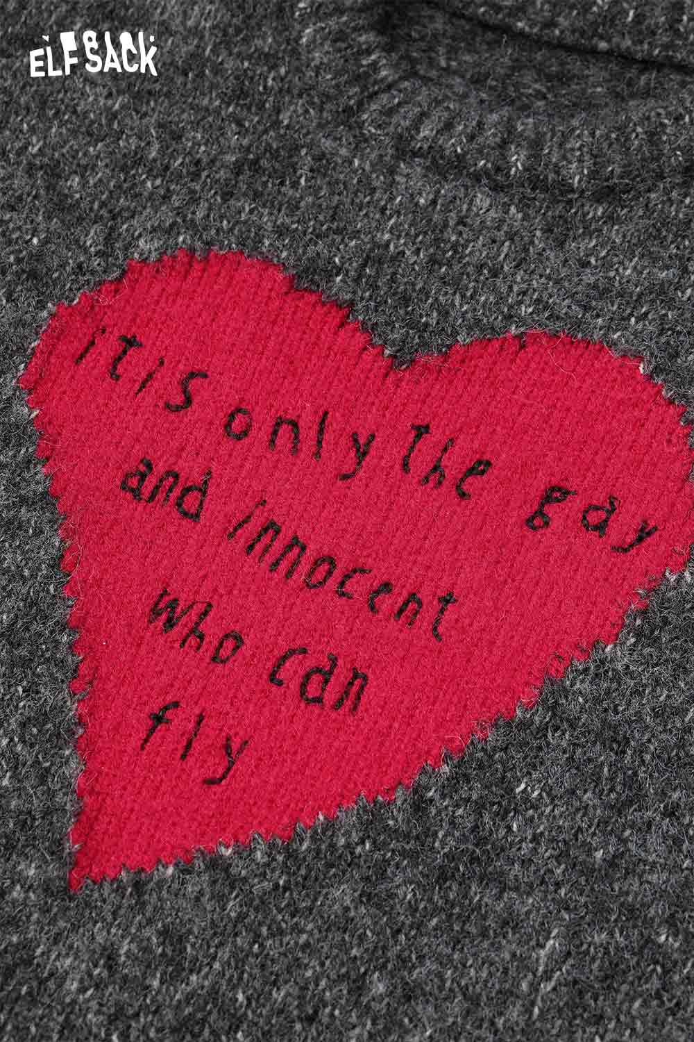 Loose Gray Heart Pattern Sweater