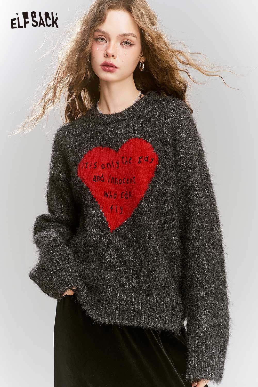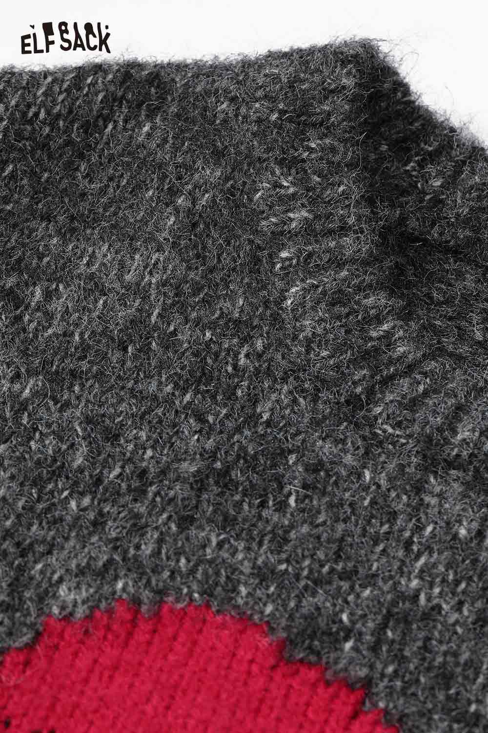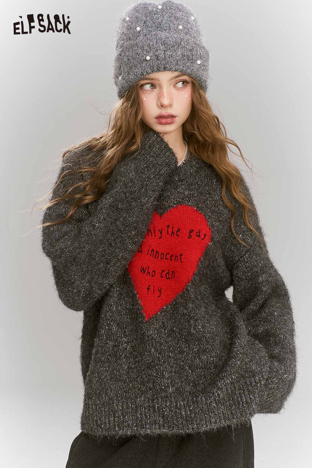 Loose Gray Heart Pattern Sweater