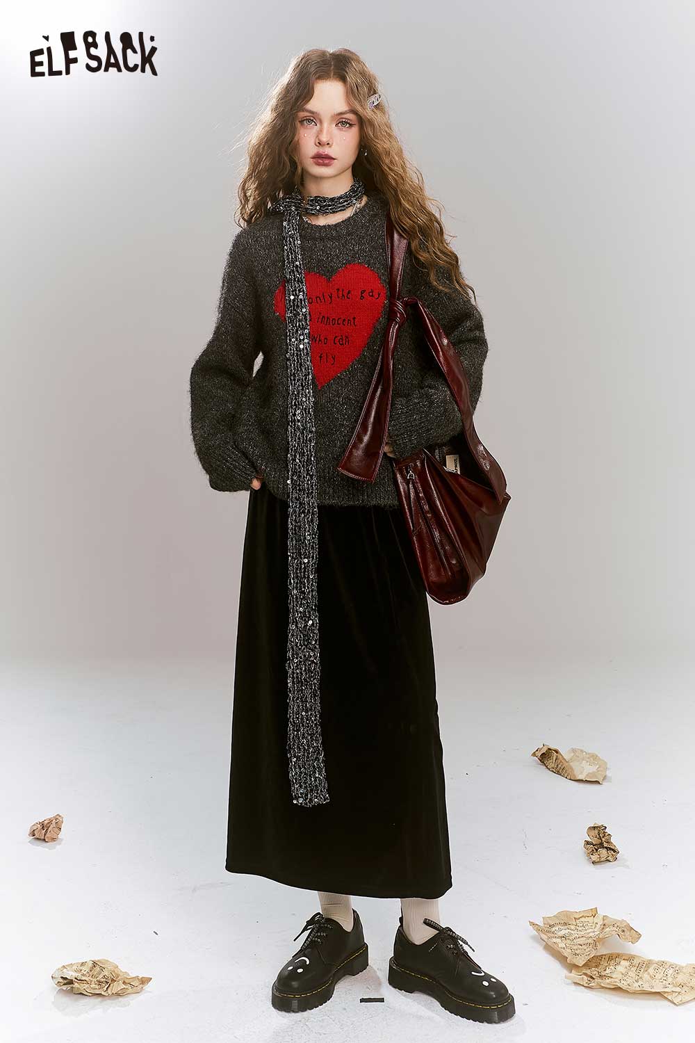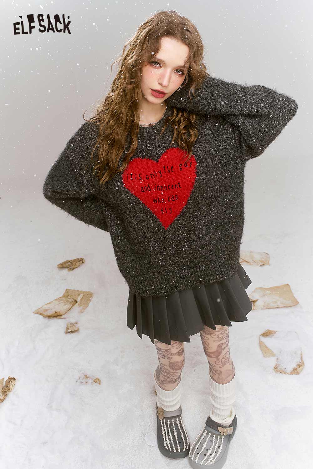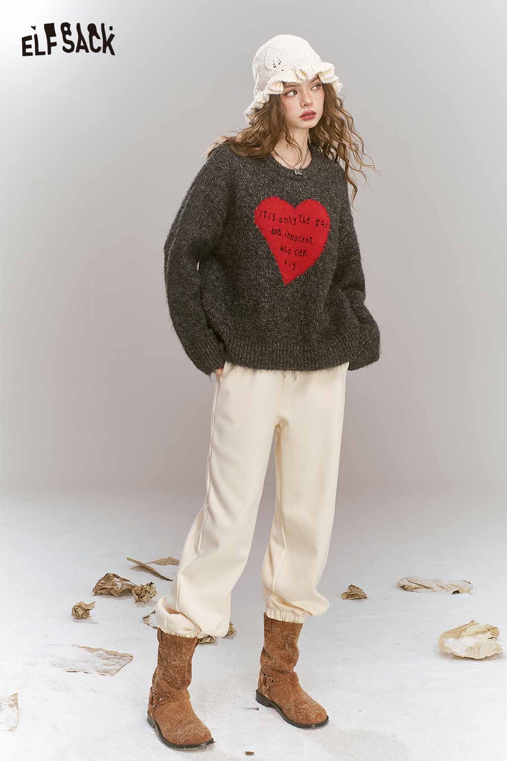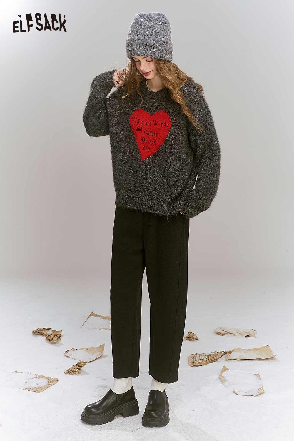 Loose Gray Heart Pattern Sweater