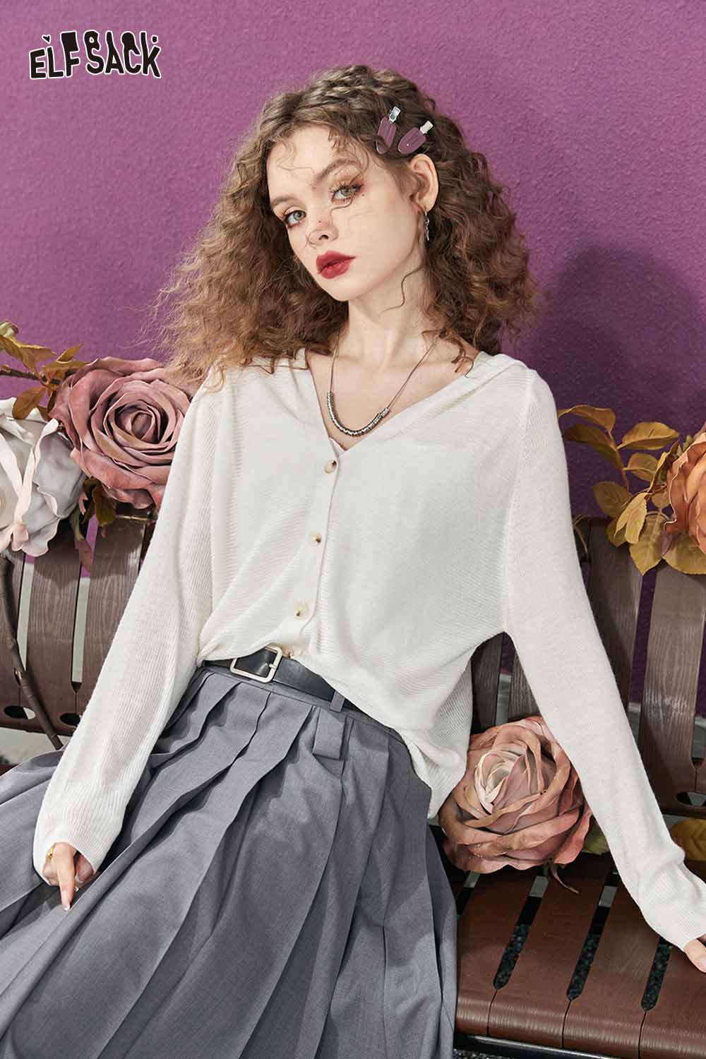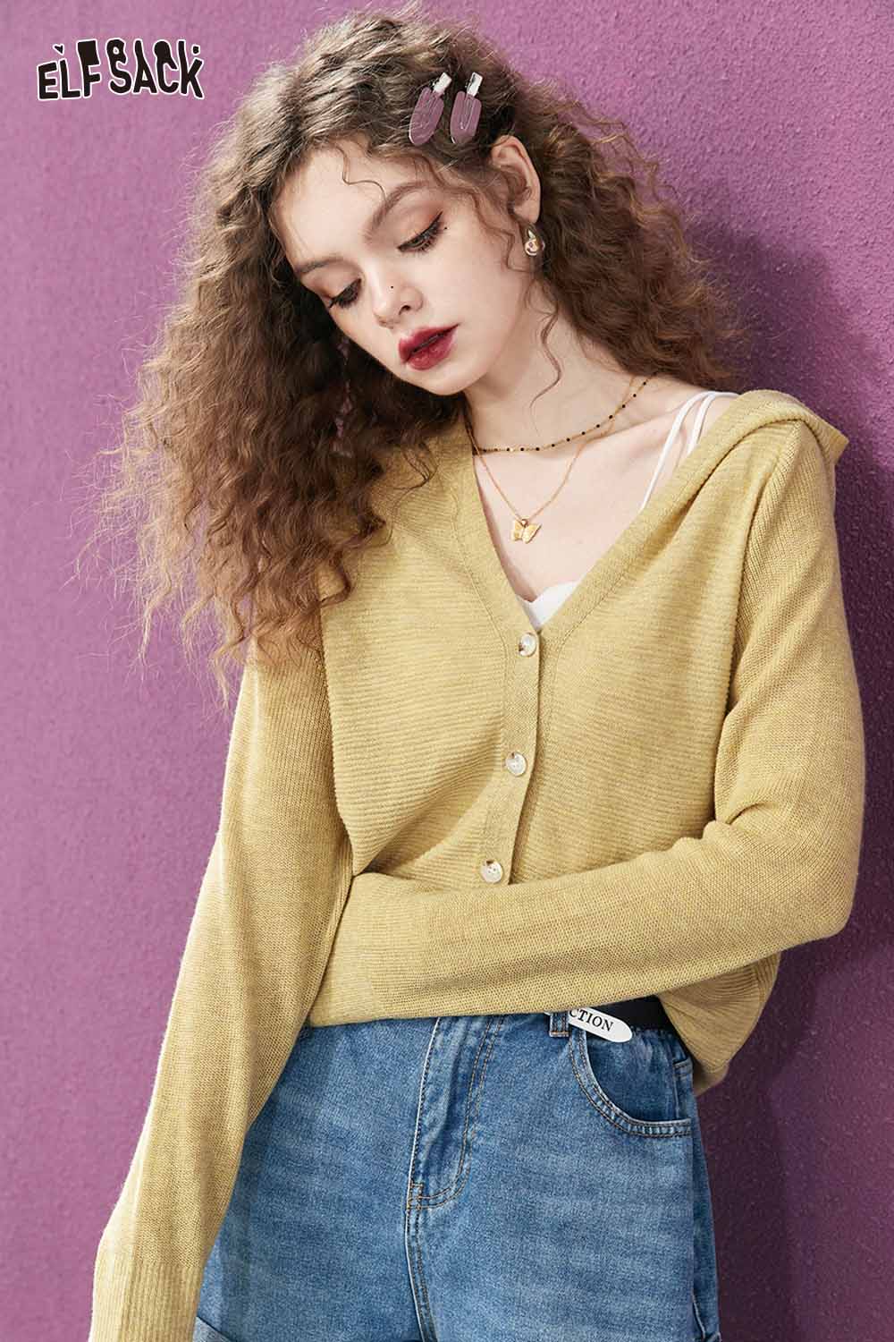 Minimalist Solid Hooded Long Sleeve Knit Cardigan