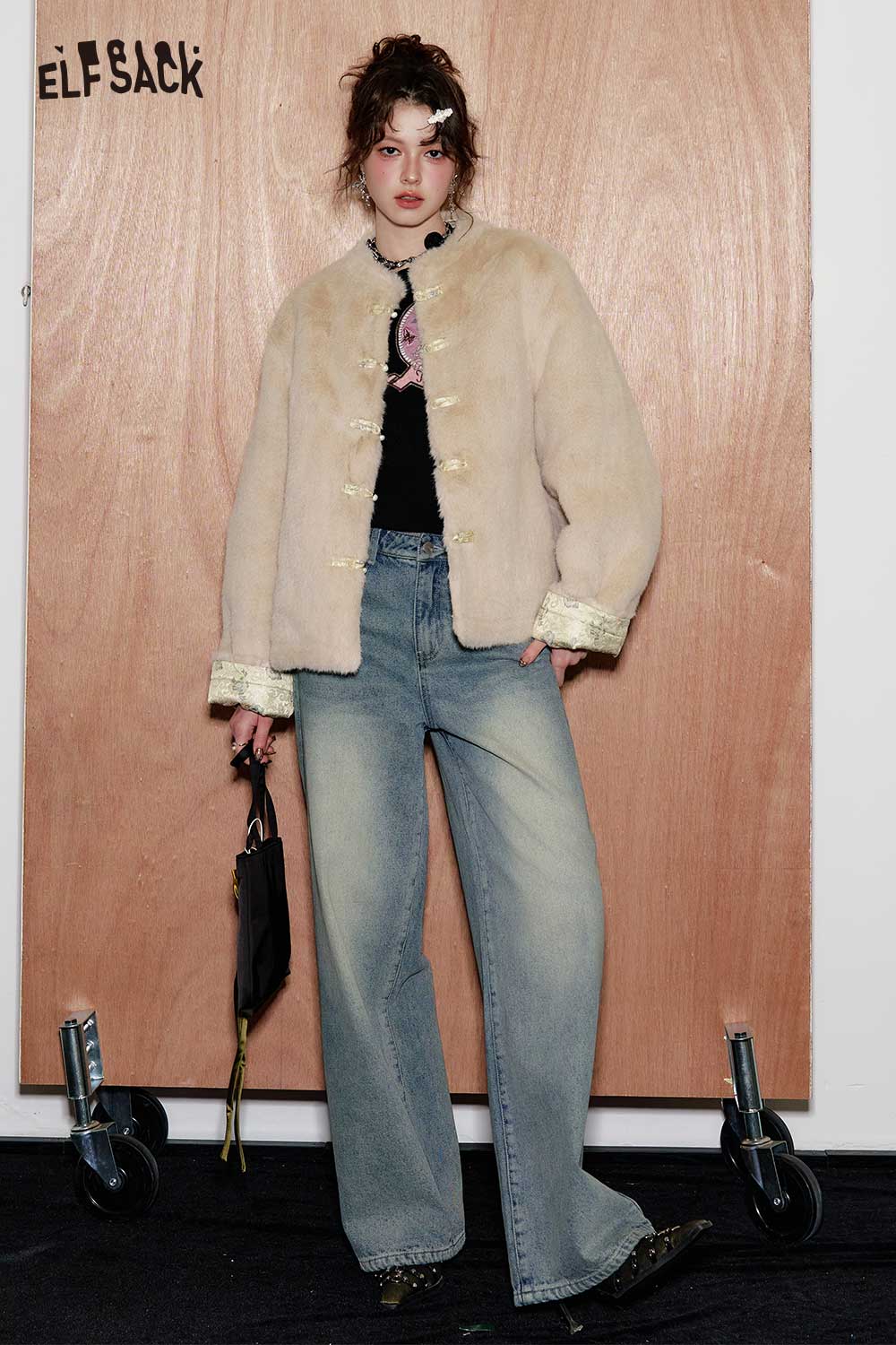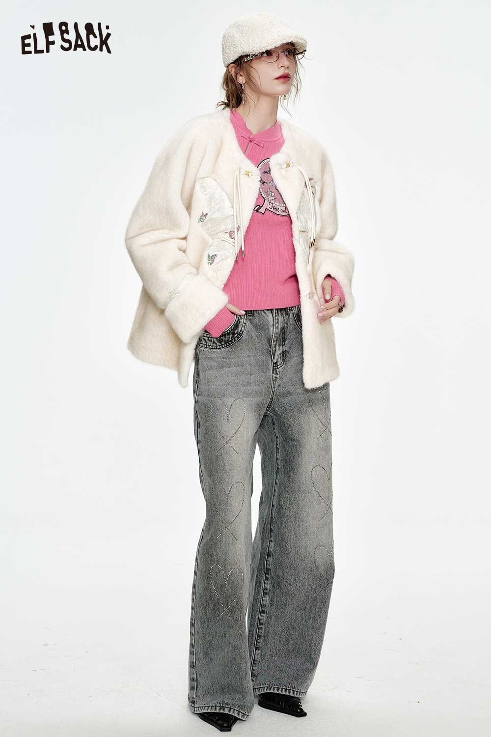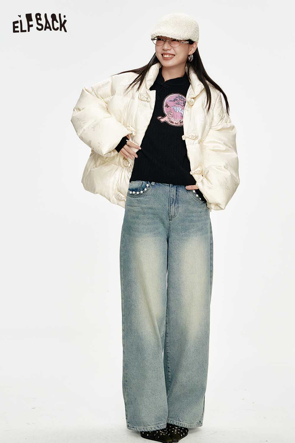 New Oriental Style Frog Button Graphic Knit Sweater