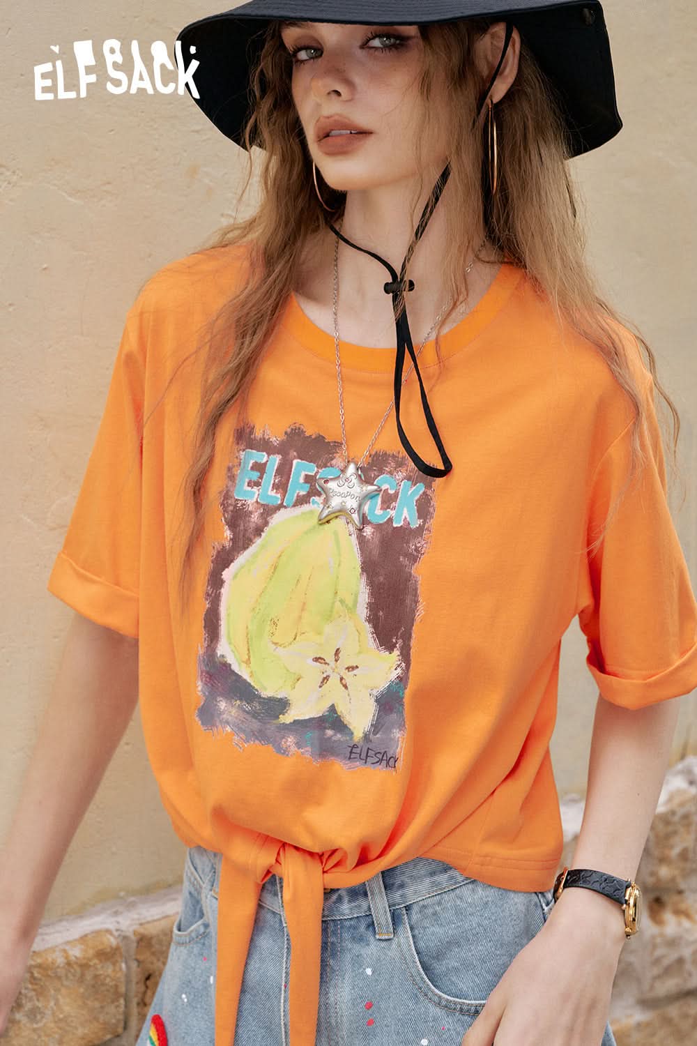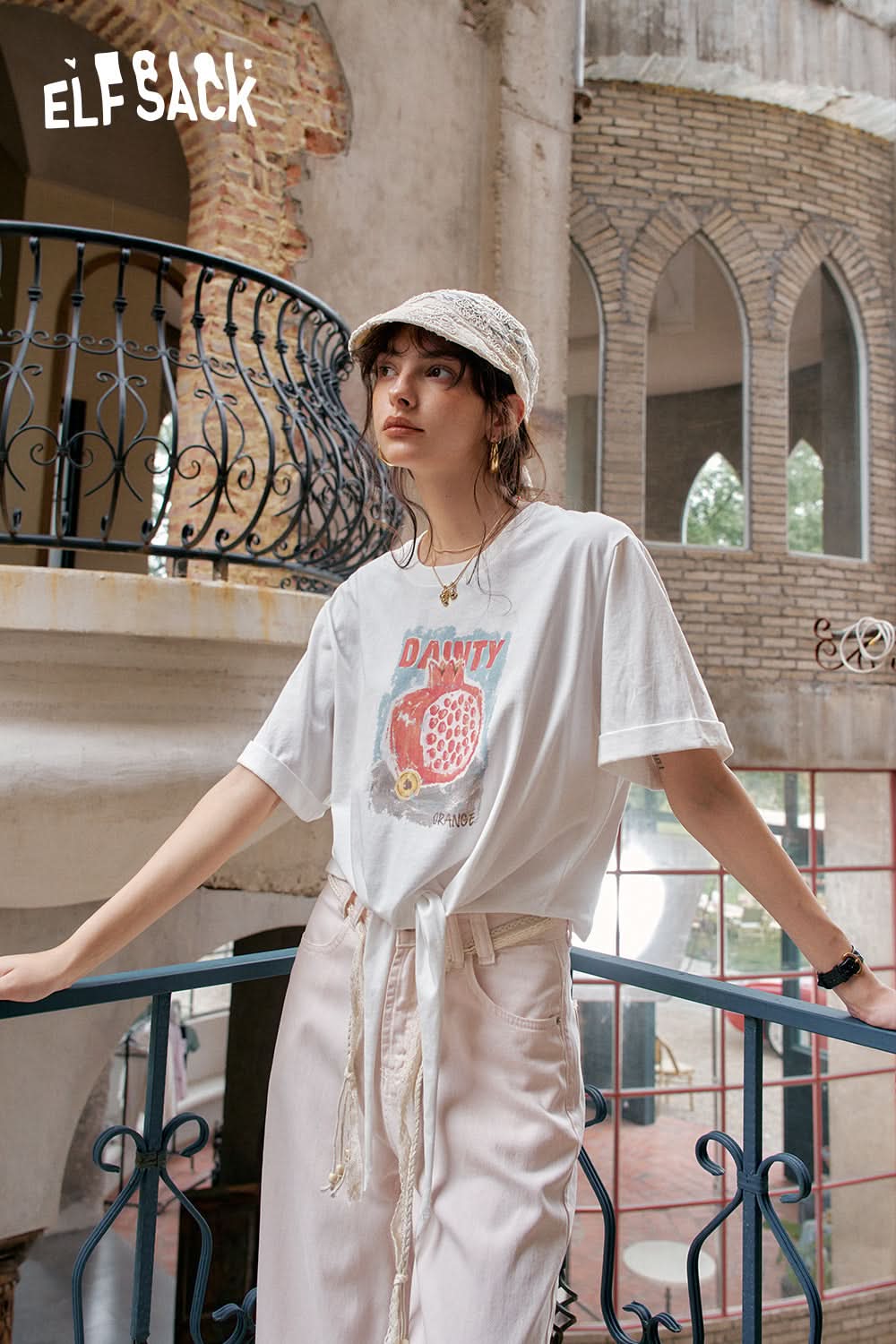 White Fruit Printed Lace Up Casual Short Sleeve T-Shirt
