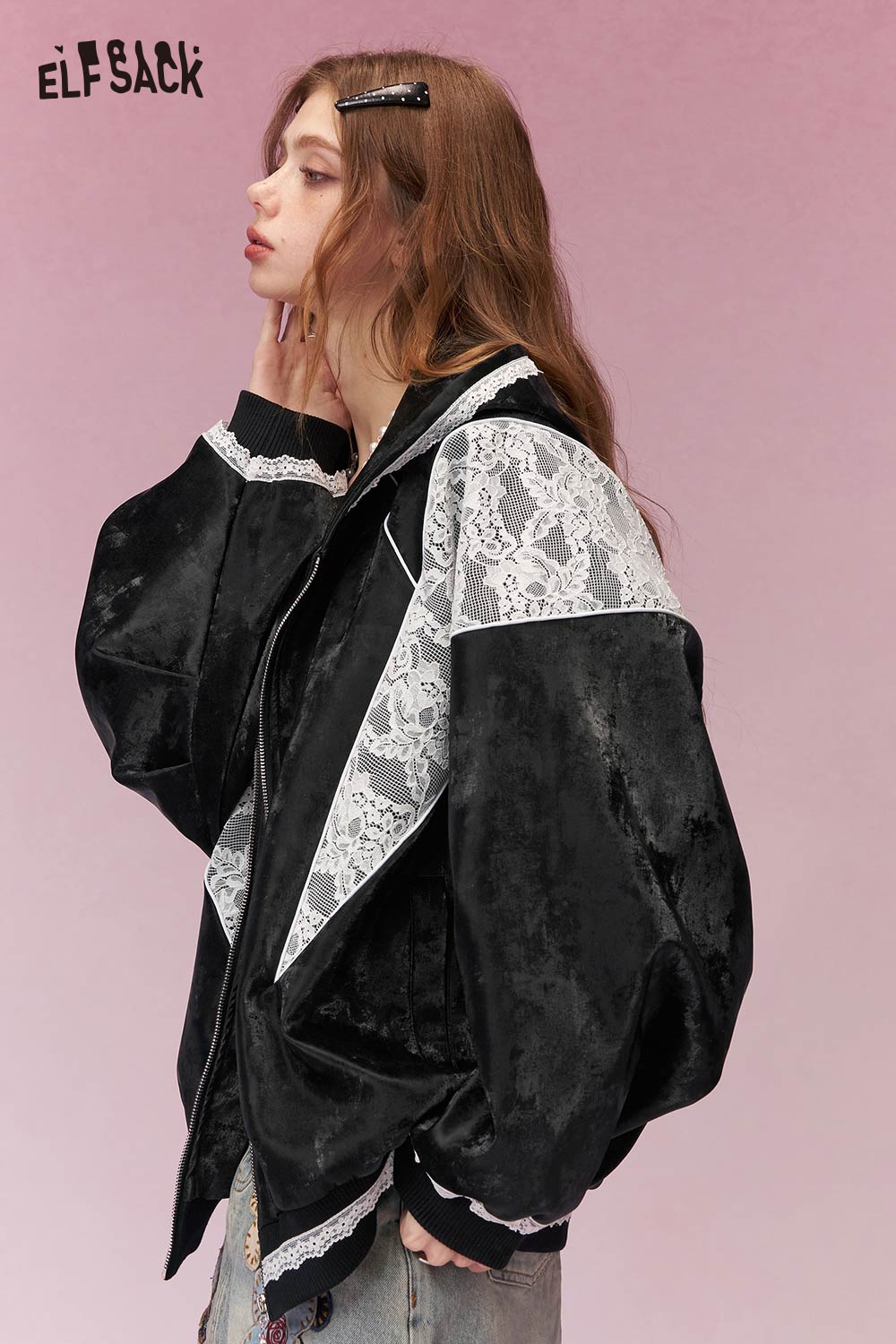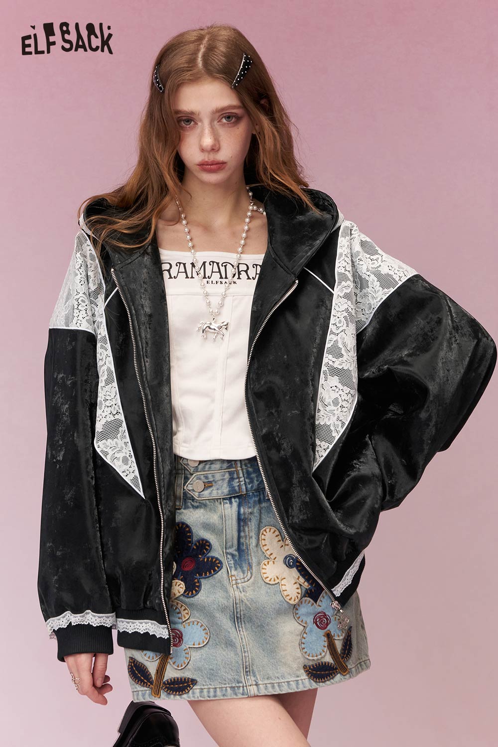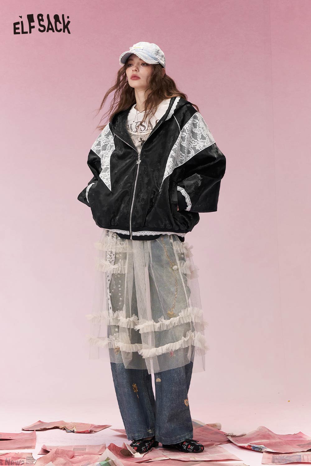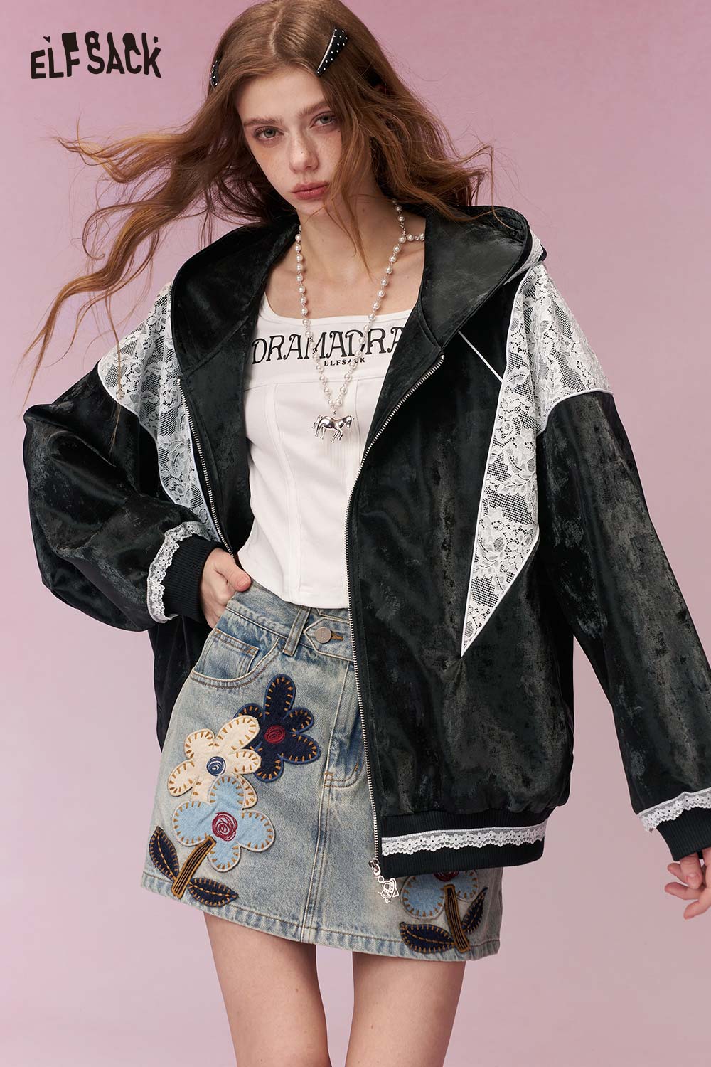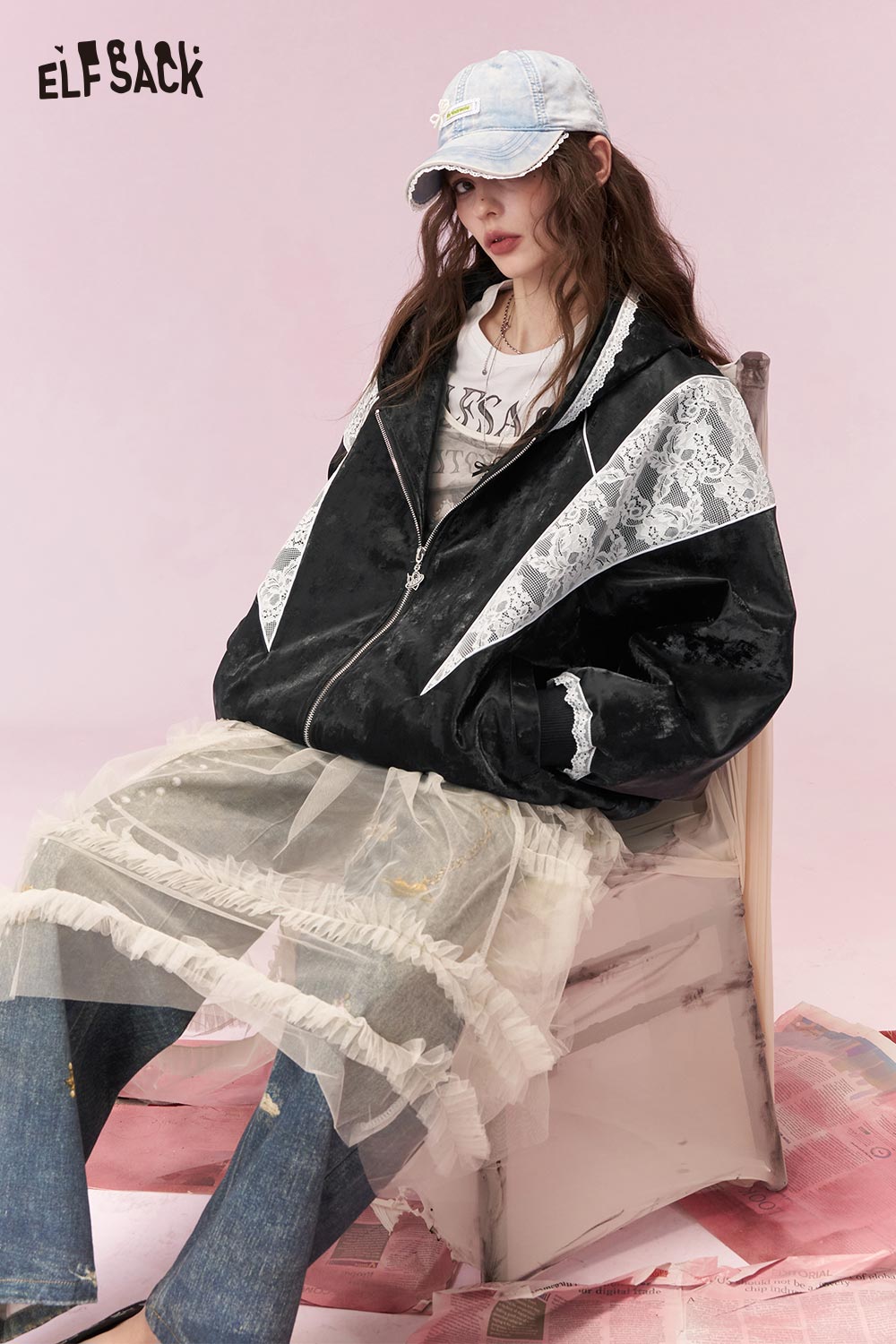Sweet Cool Lace Insert Lace Hem Cropped Jacket