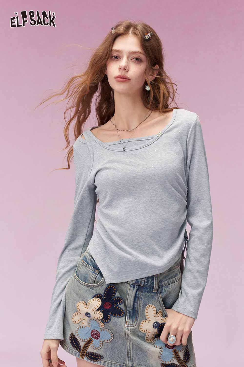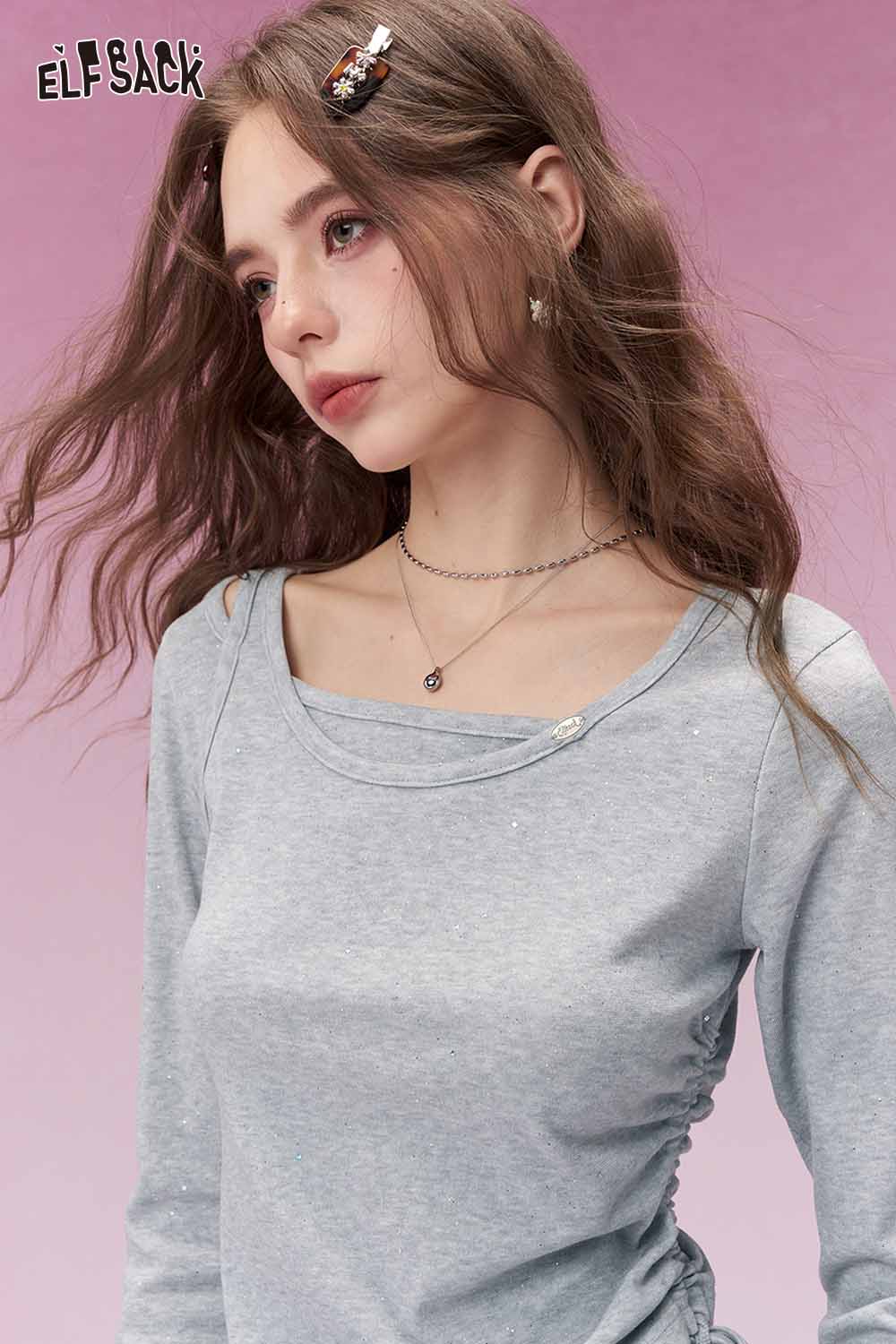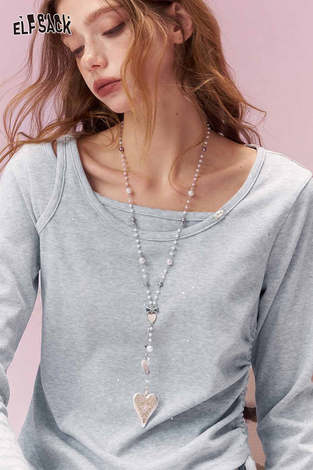 Y2K Aesthetic Long Sleeve T-Shirt with Side Drawstring Ruched