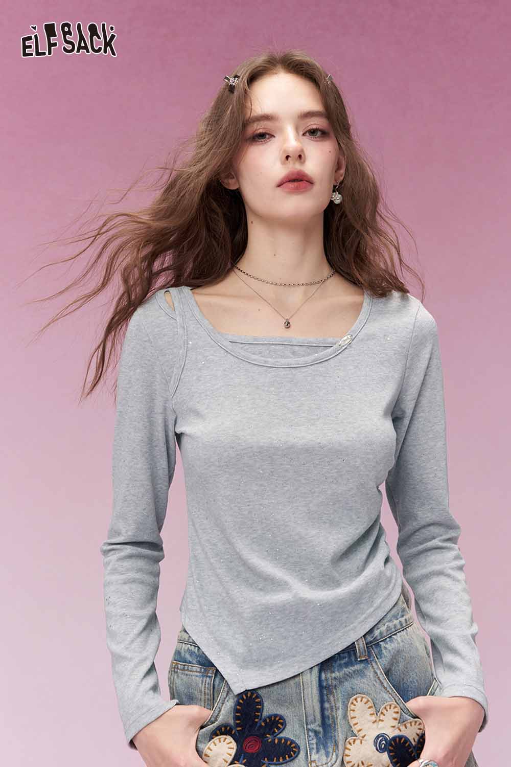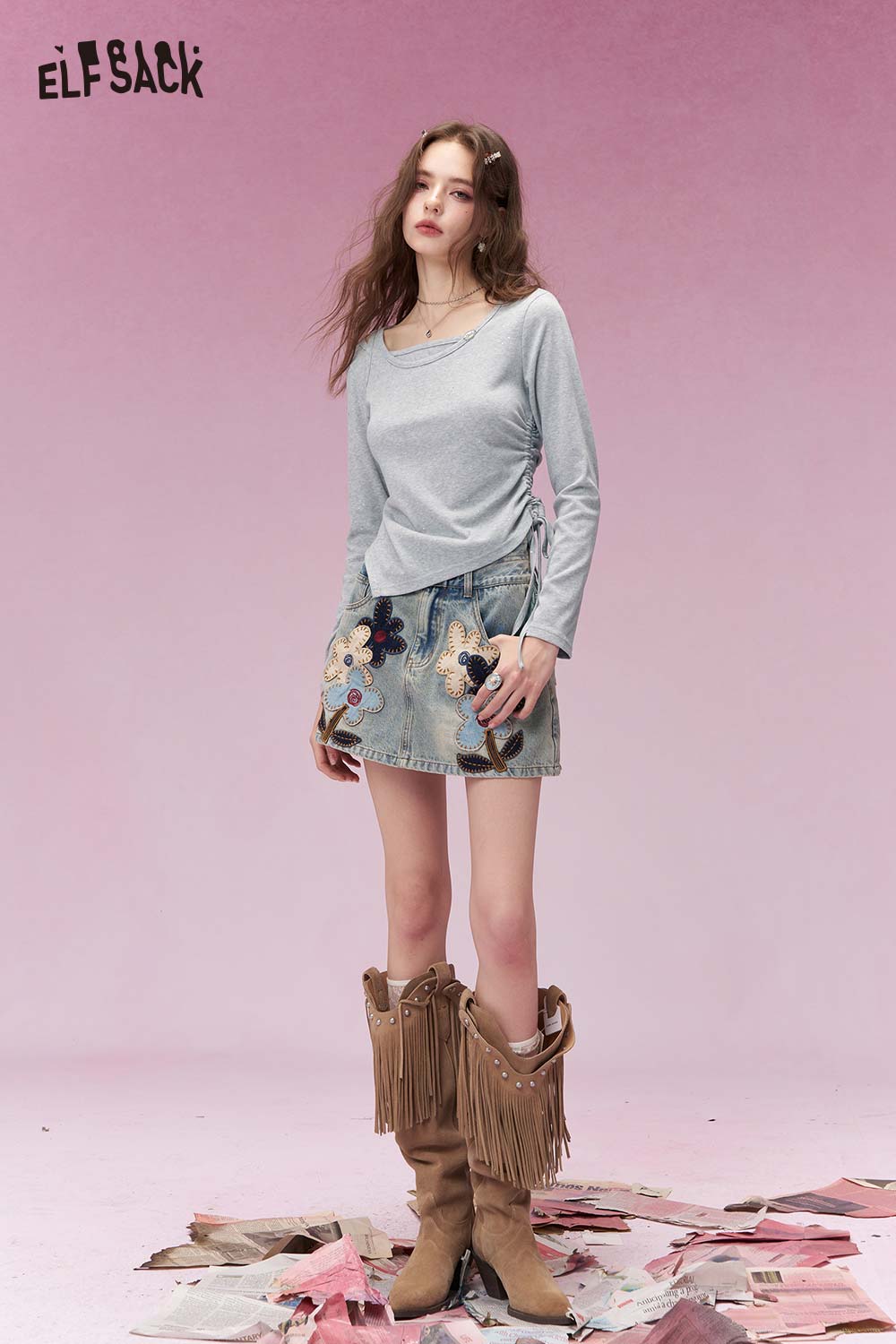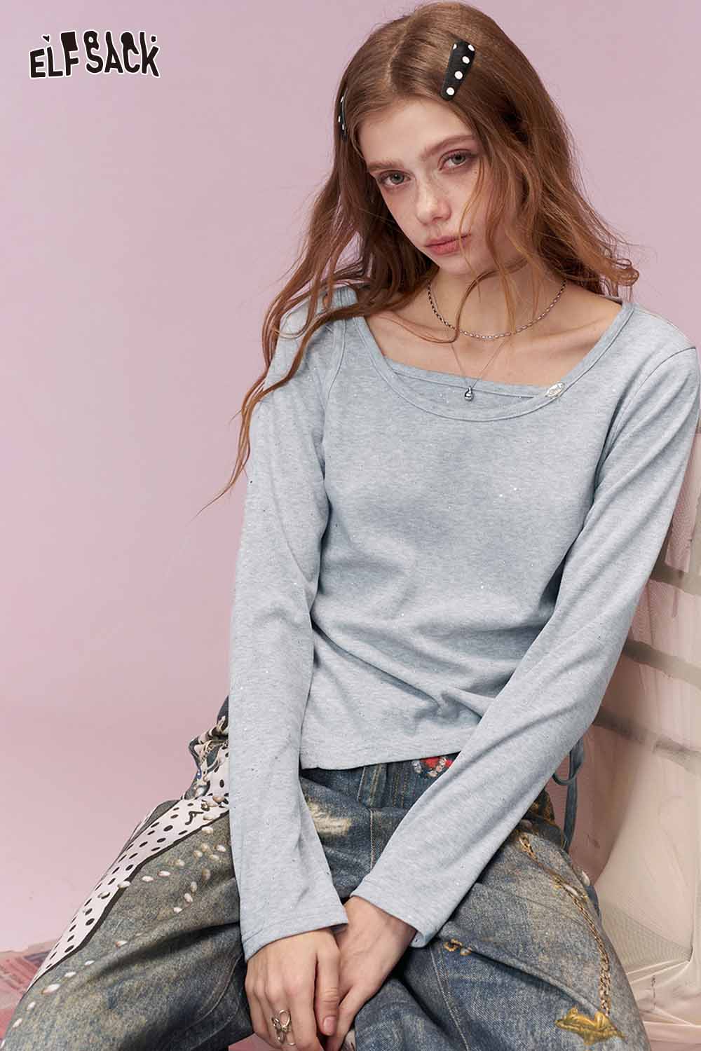 Y2K Aesthetic Long Sleeve T-Shirt with Side Drawstring Ruched
