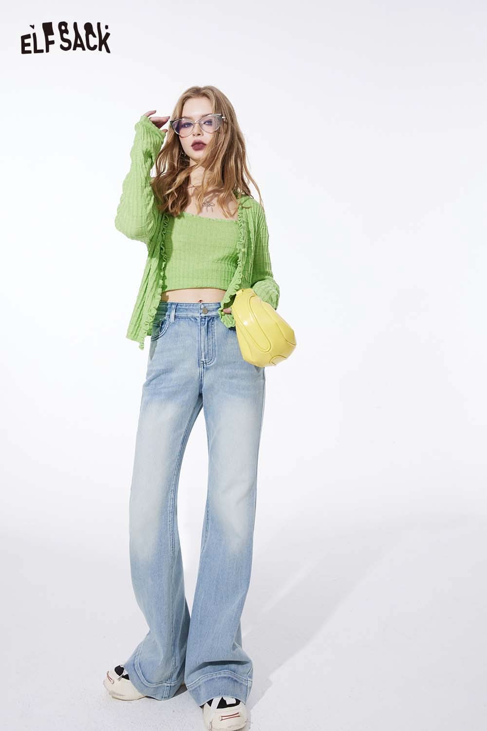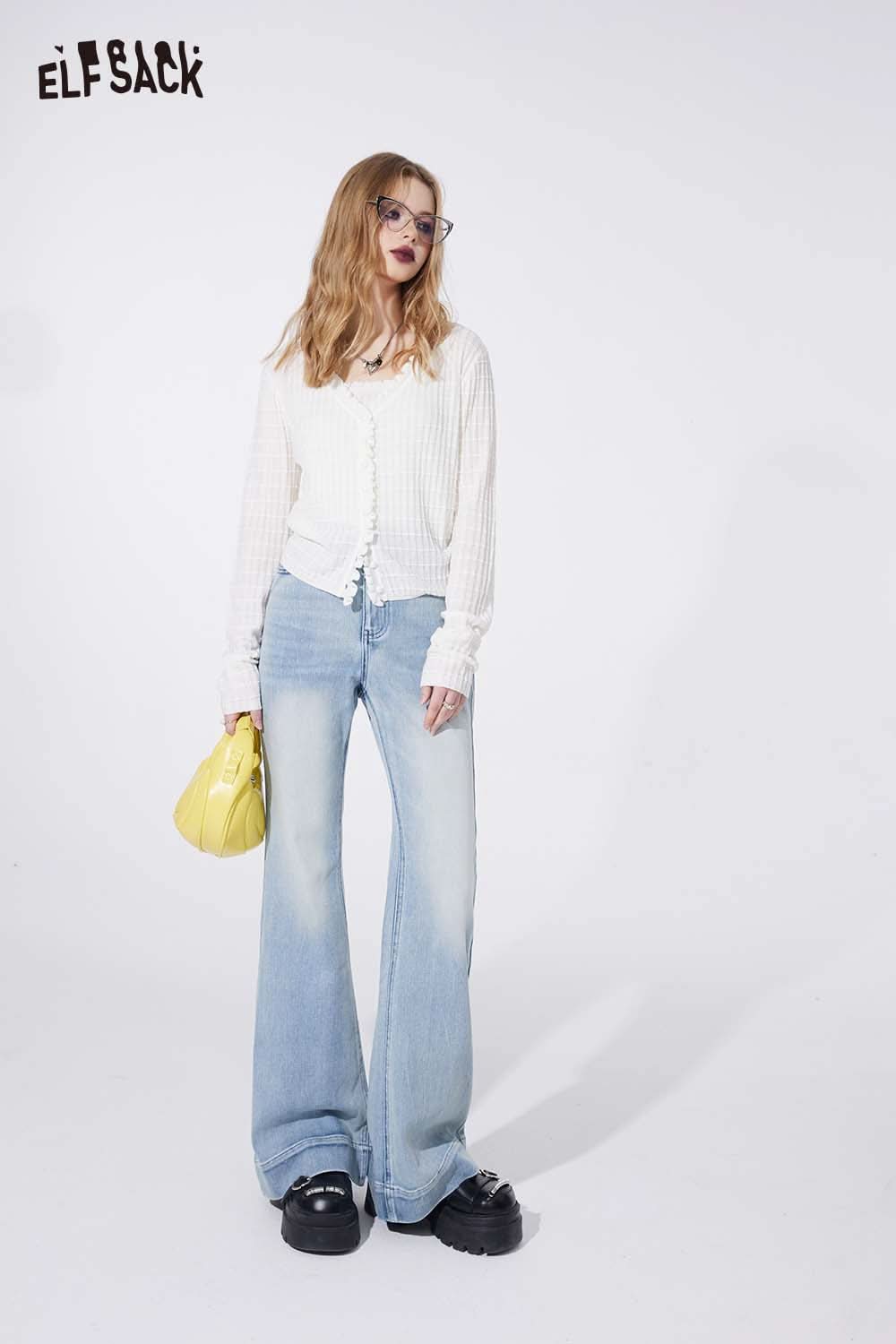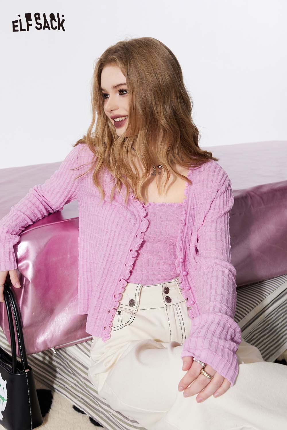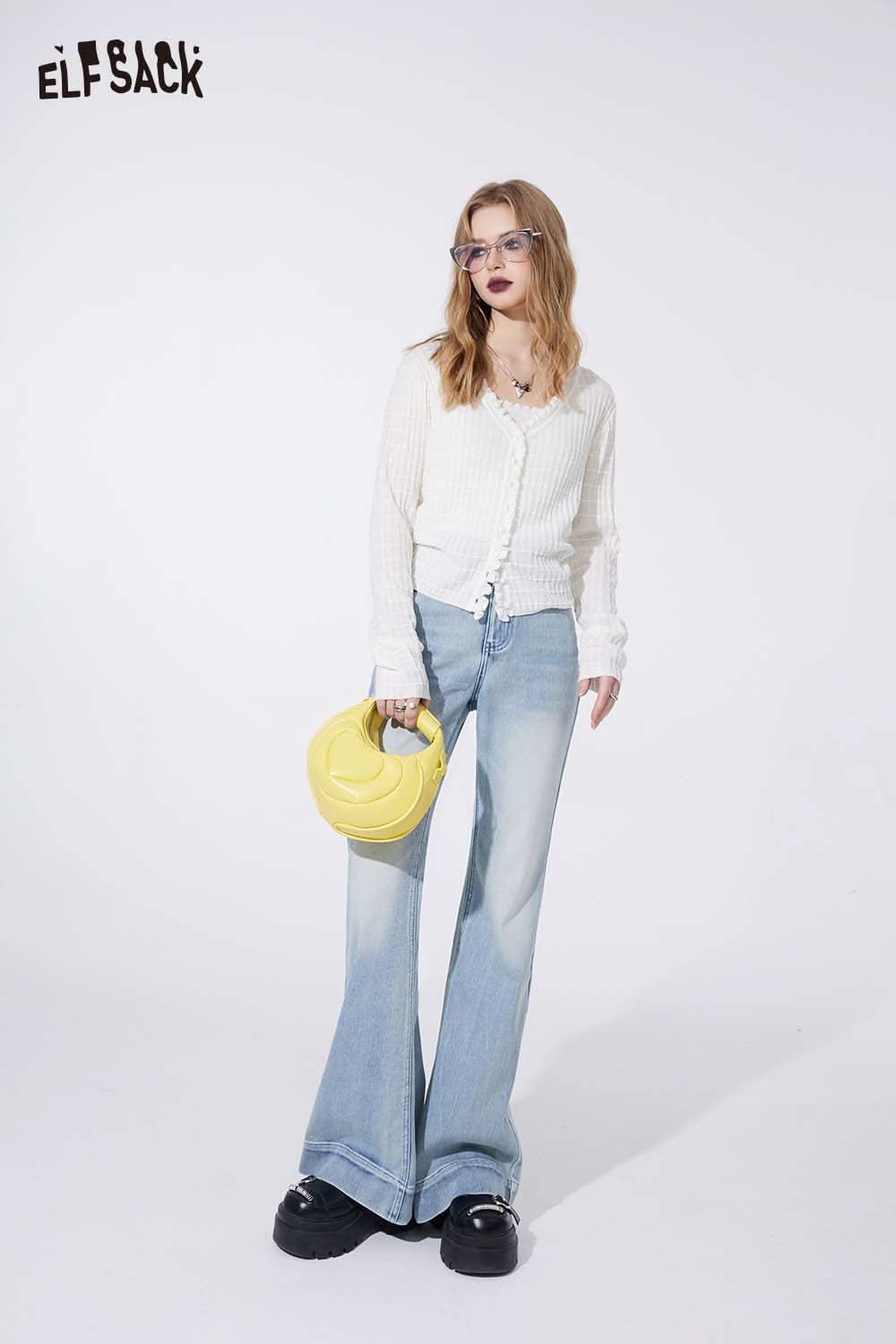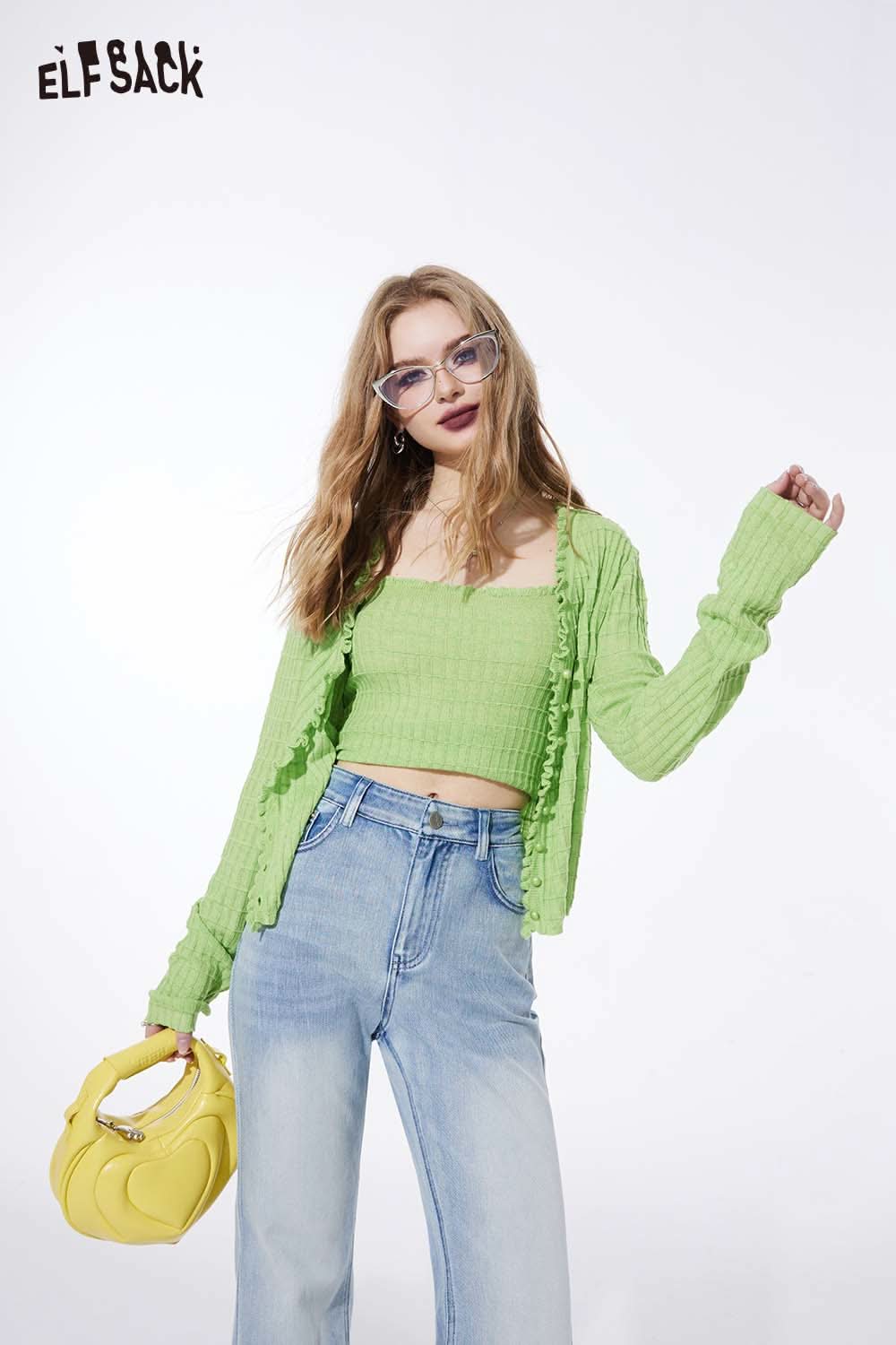 Ruffle V Neck Solid Cropped Knit Cardigan Slim Fit