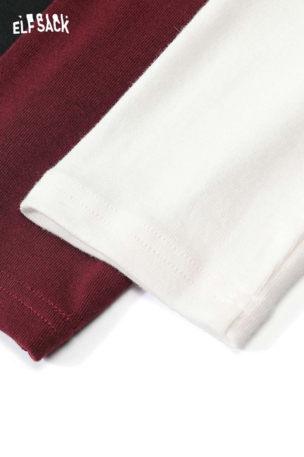 ELFSACK women's high neck pearl t-shirt in white, styled with a trendy hat and casual pants