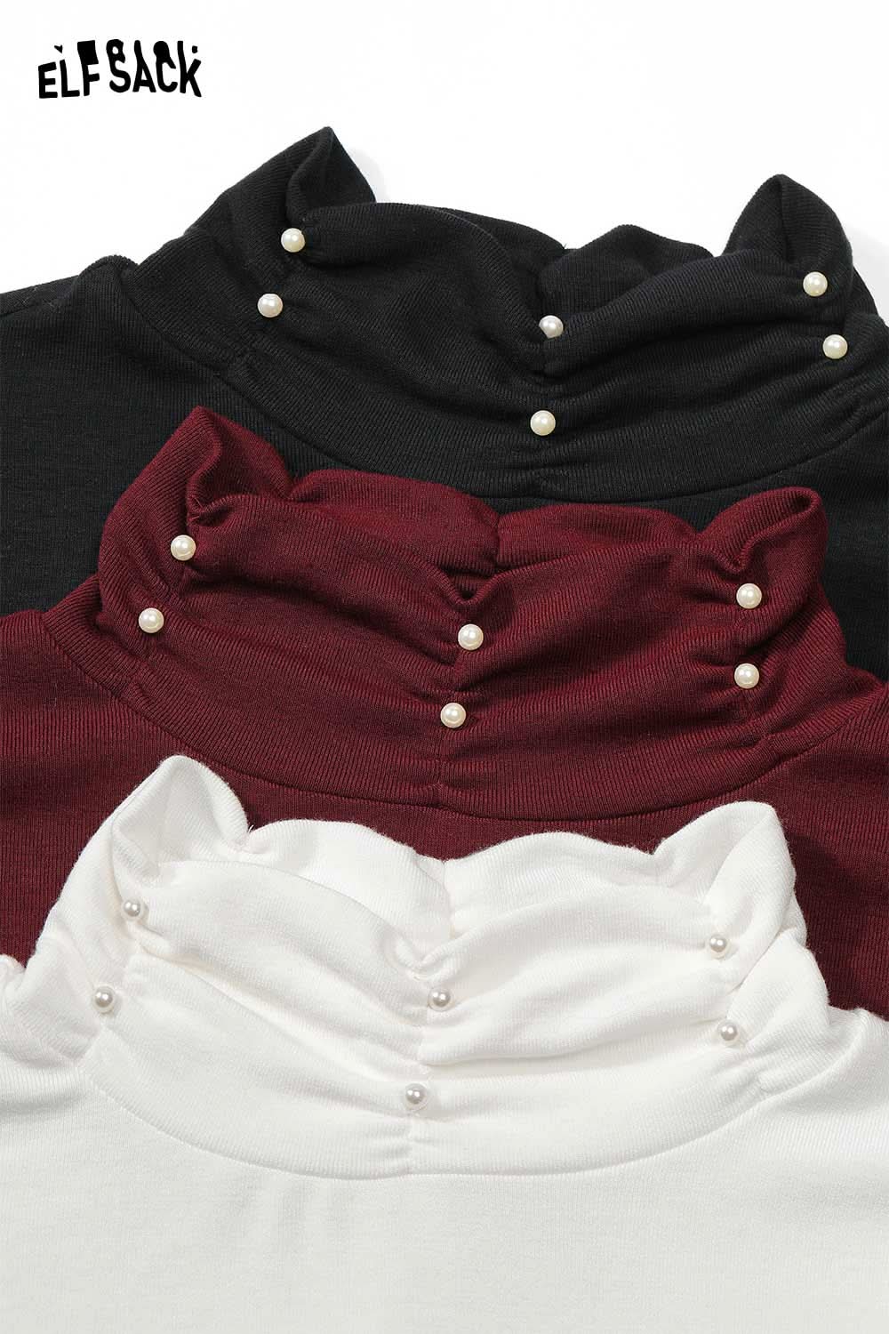 ELFSACK women's high neck pearl t-shirt in black with decorative pearls and stylish design