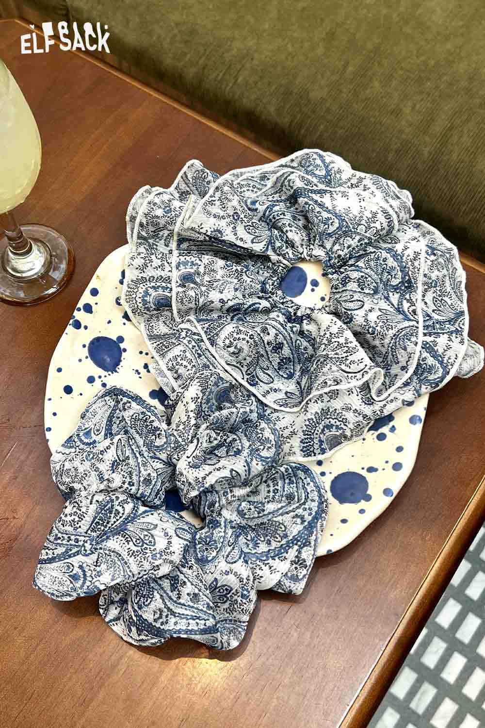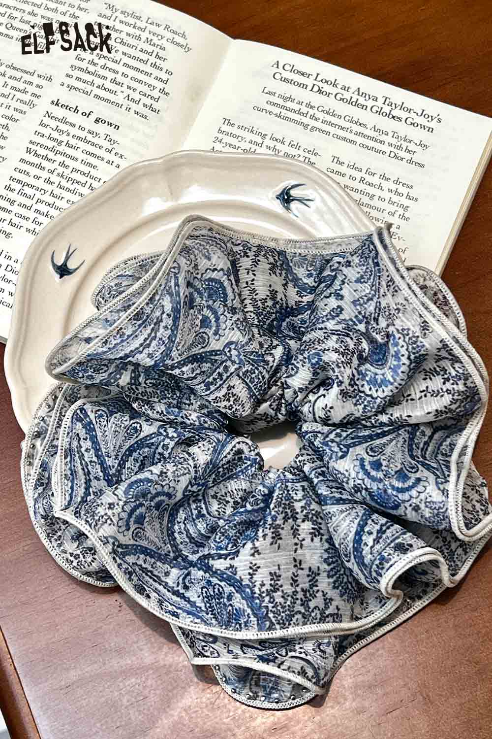 Cotton Voile Bohemian Paisley Print Elastic Hair Tie