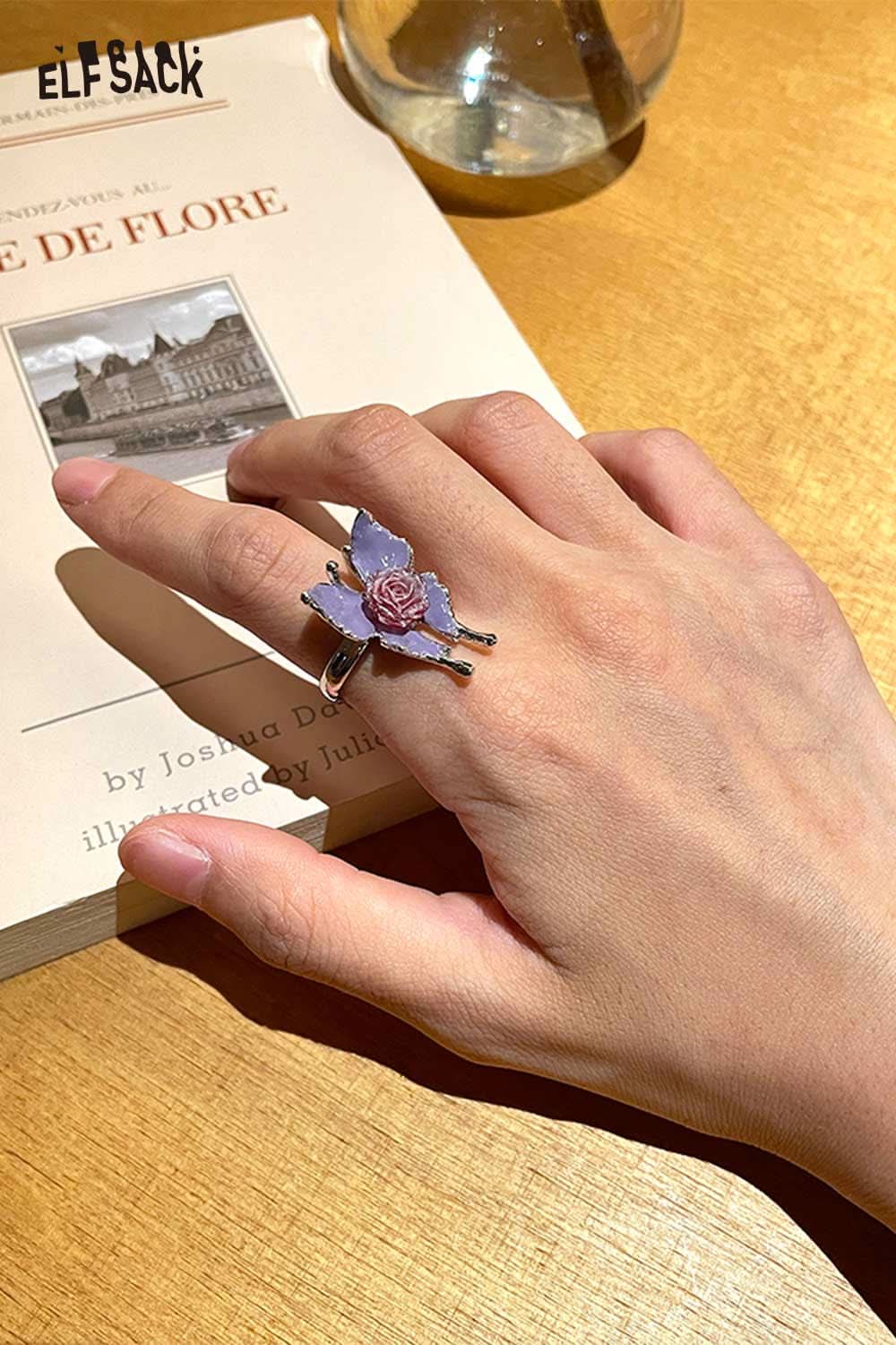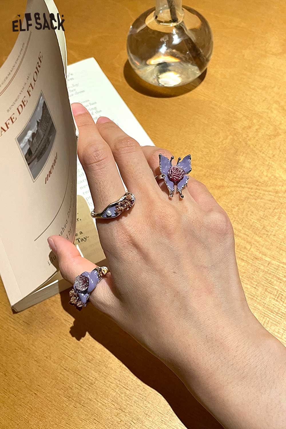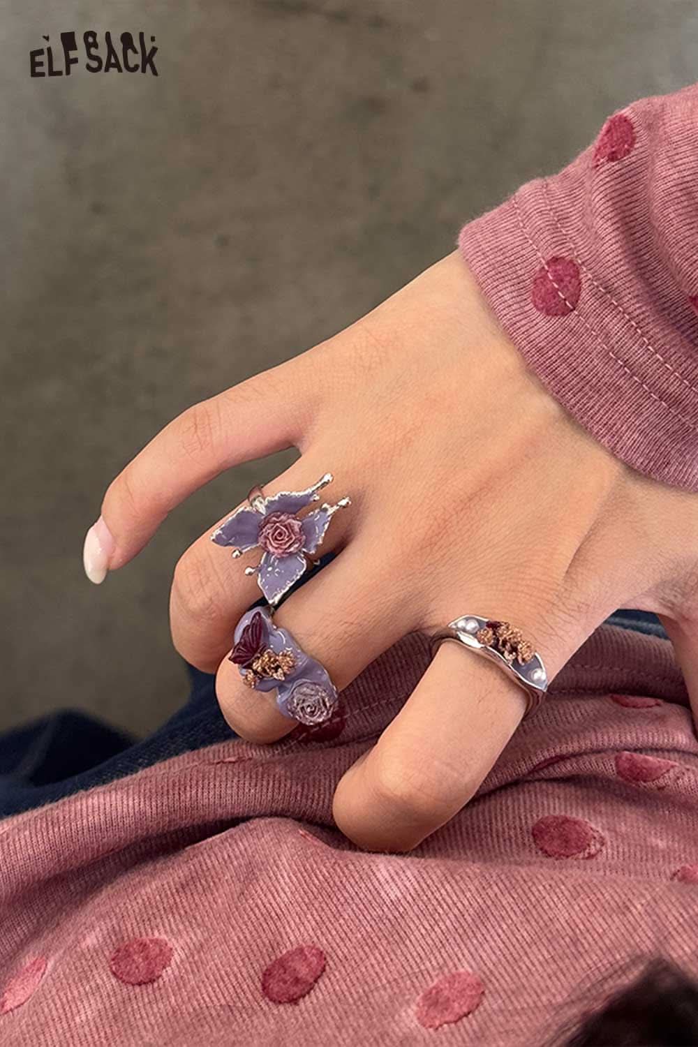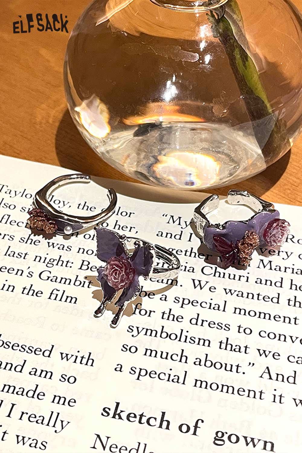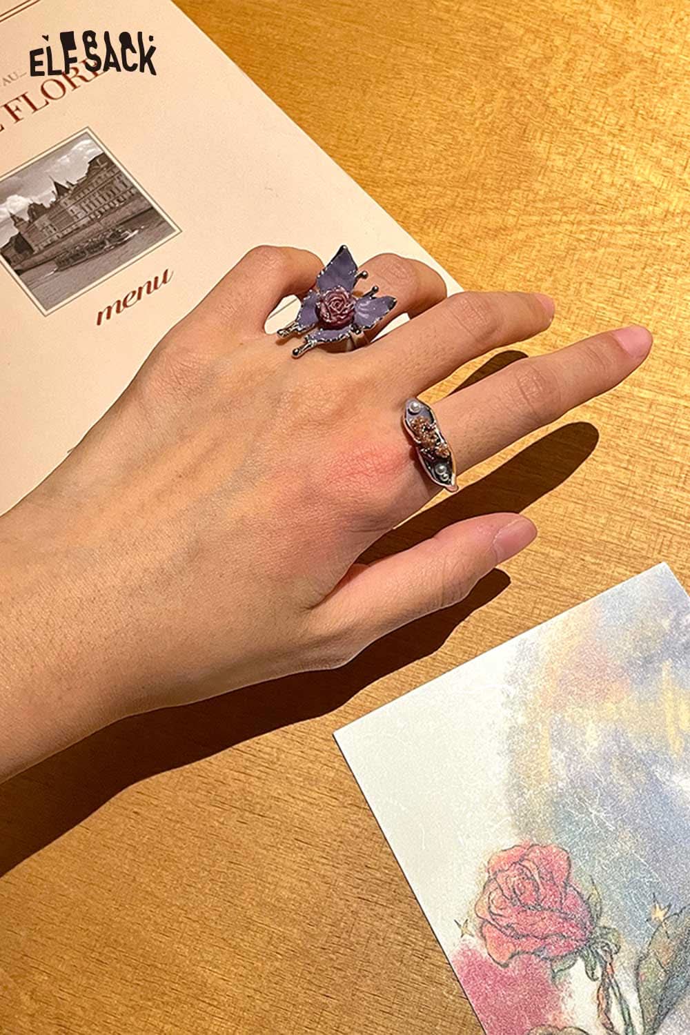 Solid Alloy Butterfly Rose Pearl Detail Ring