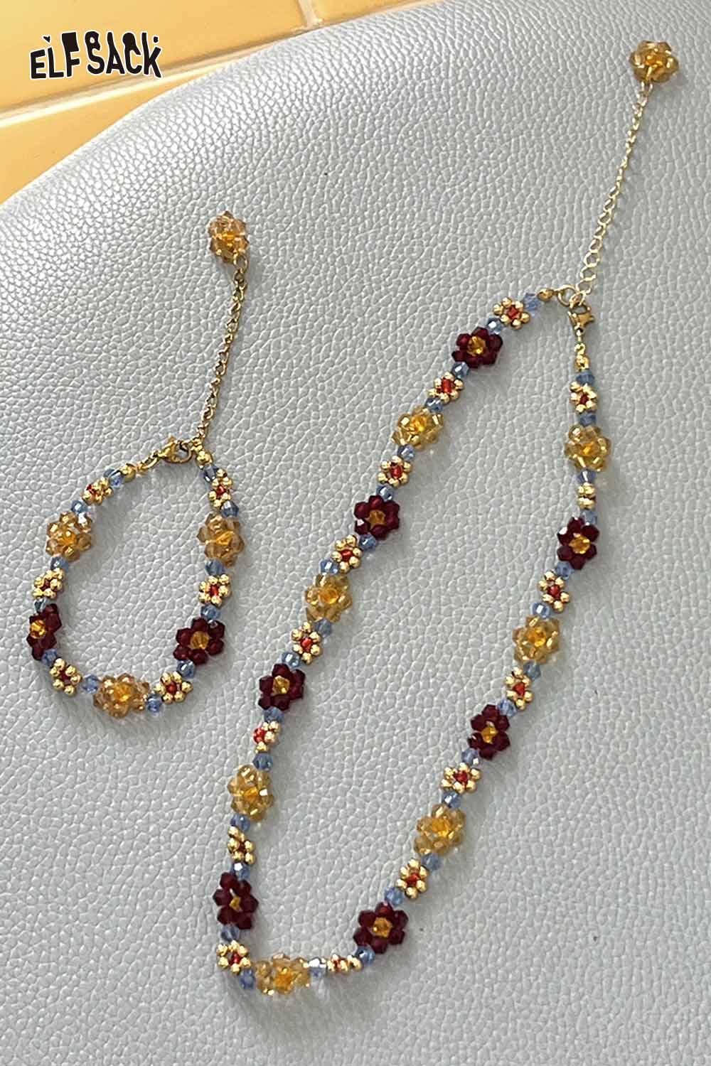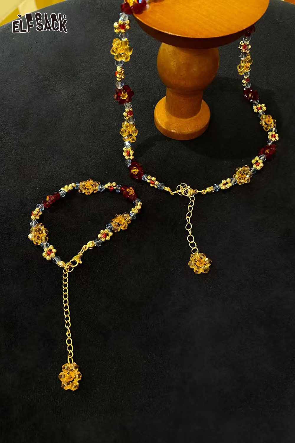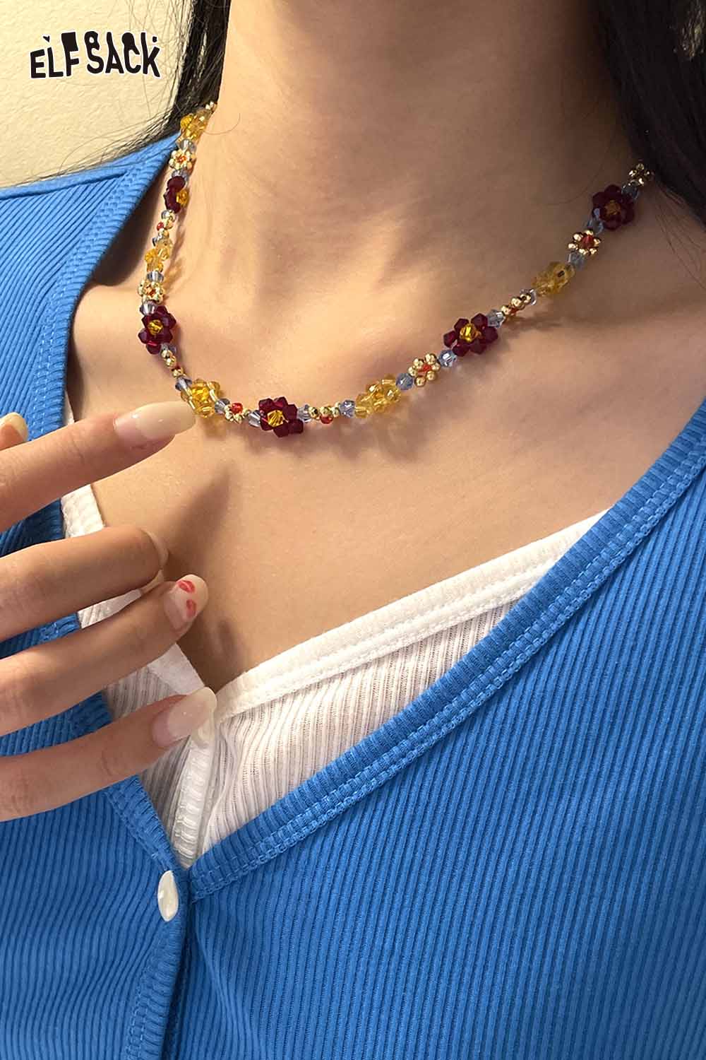 Handstrung Glass Pearl Floral Pendant Necklace Delicate Chain