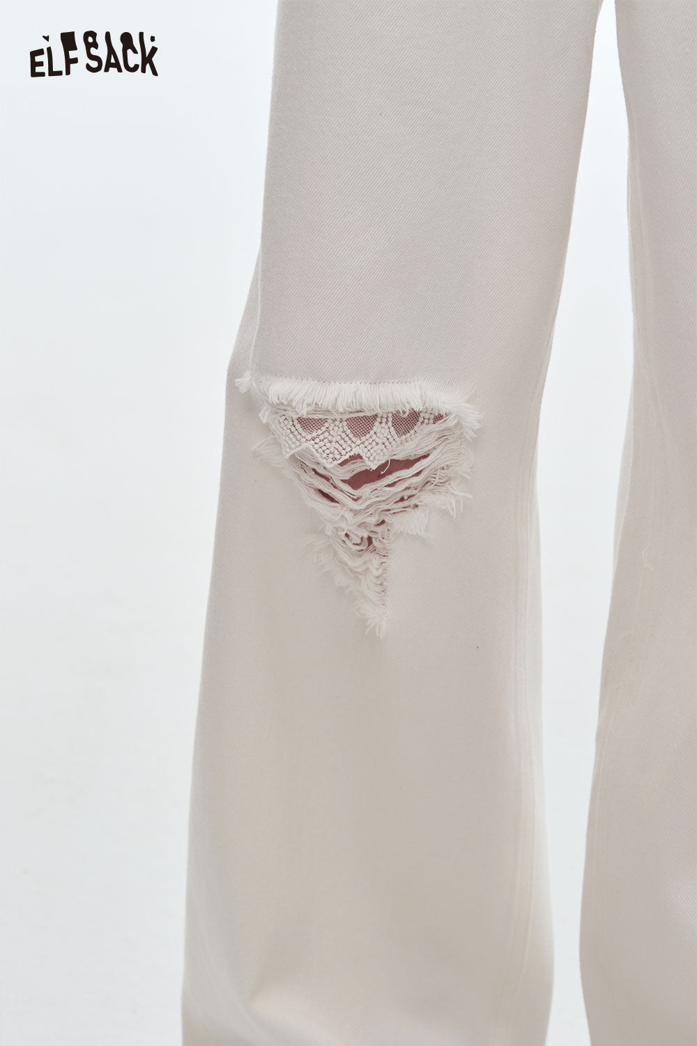 Stretch Denim Distressed Wide Leg Jeans