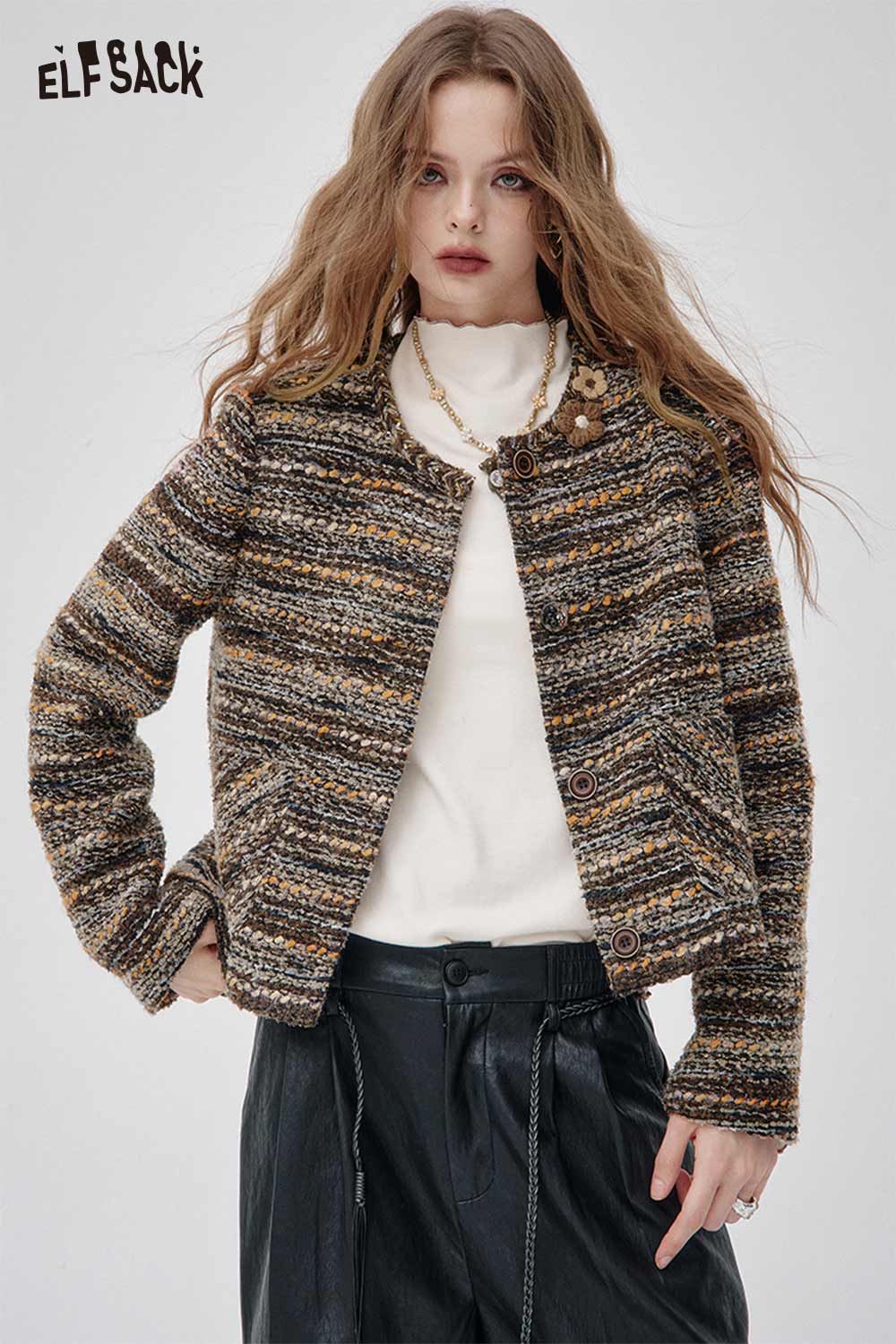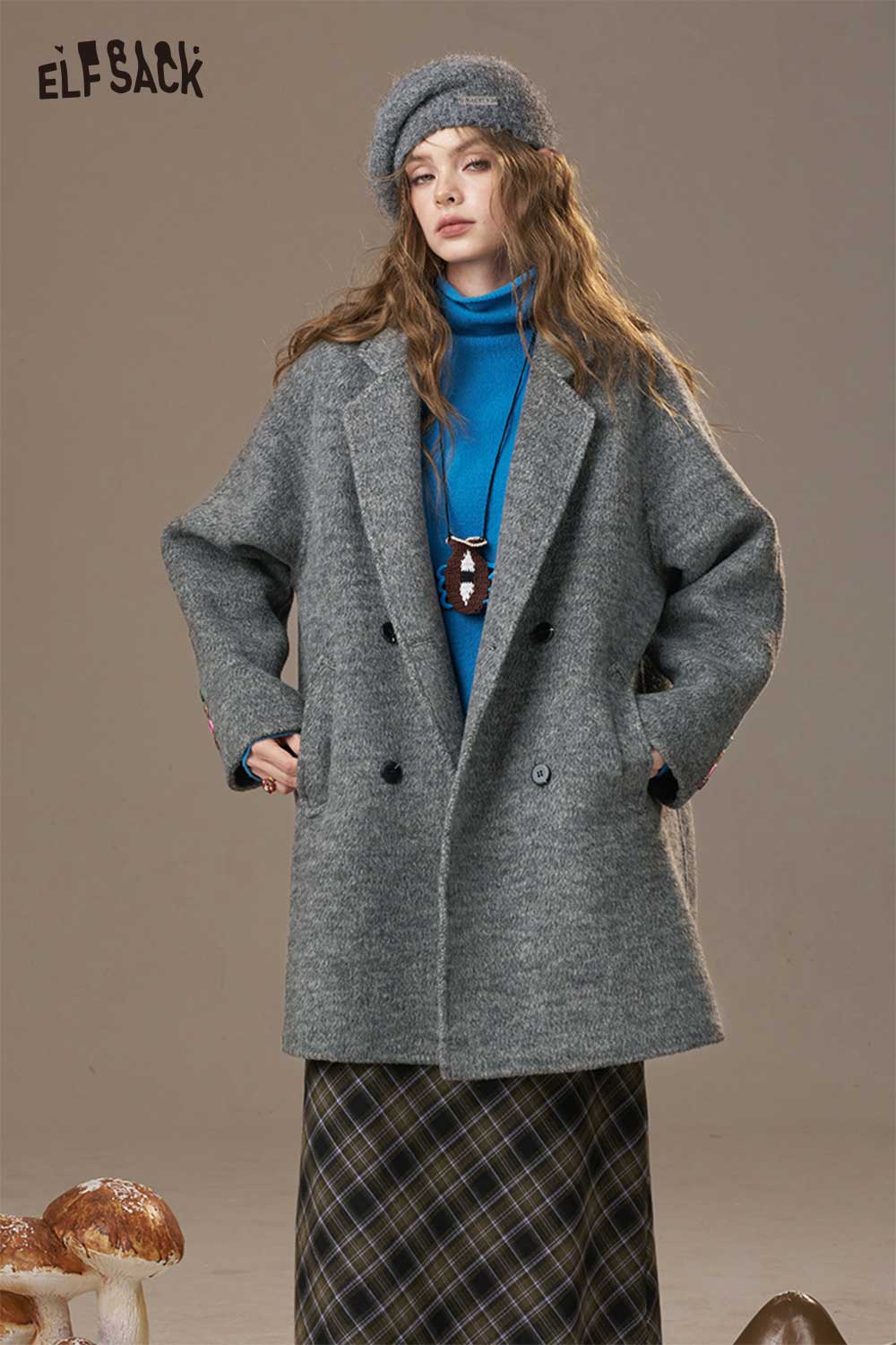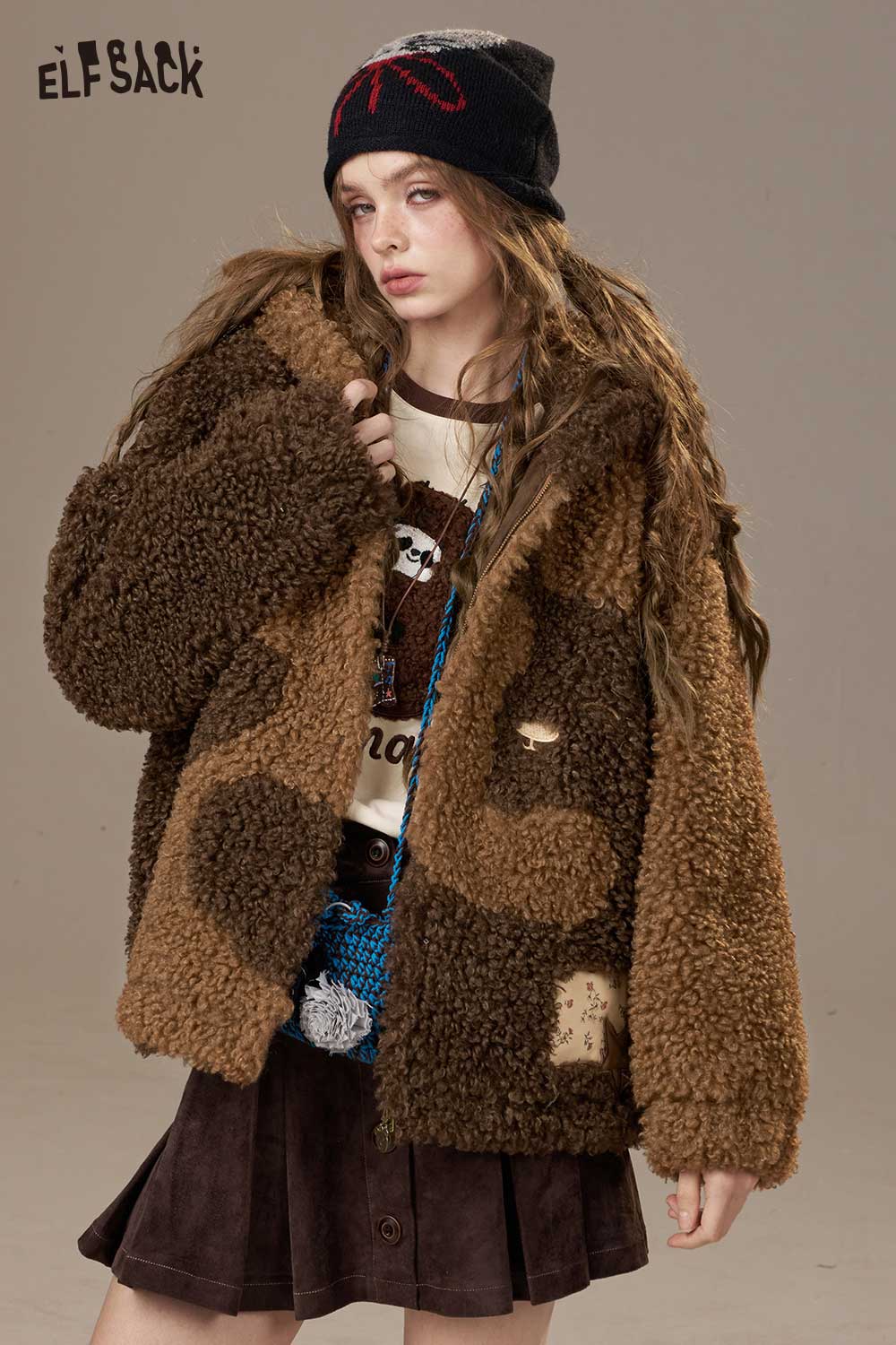 ELFSACK wool blend oversized tote bag in brown, perfect for everyday style and practicality
