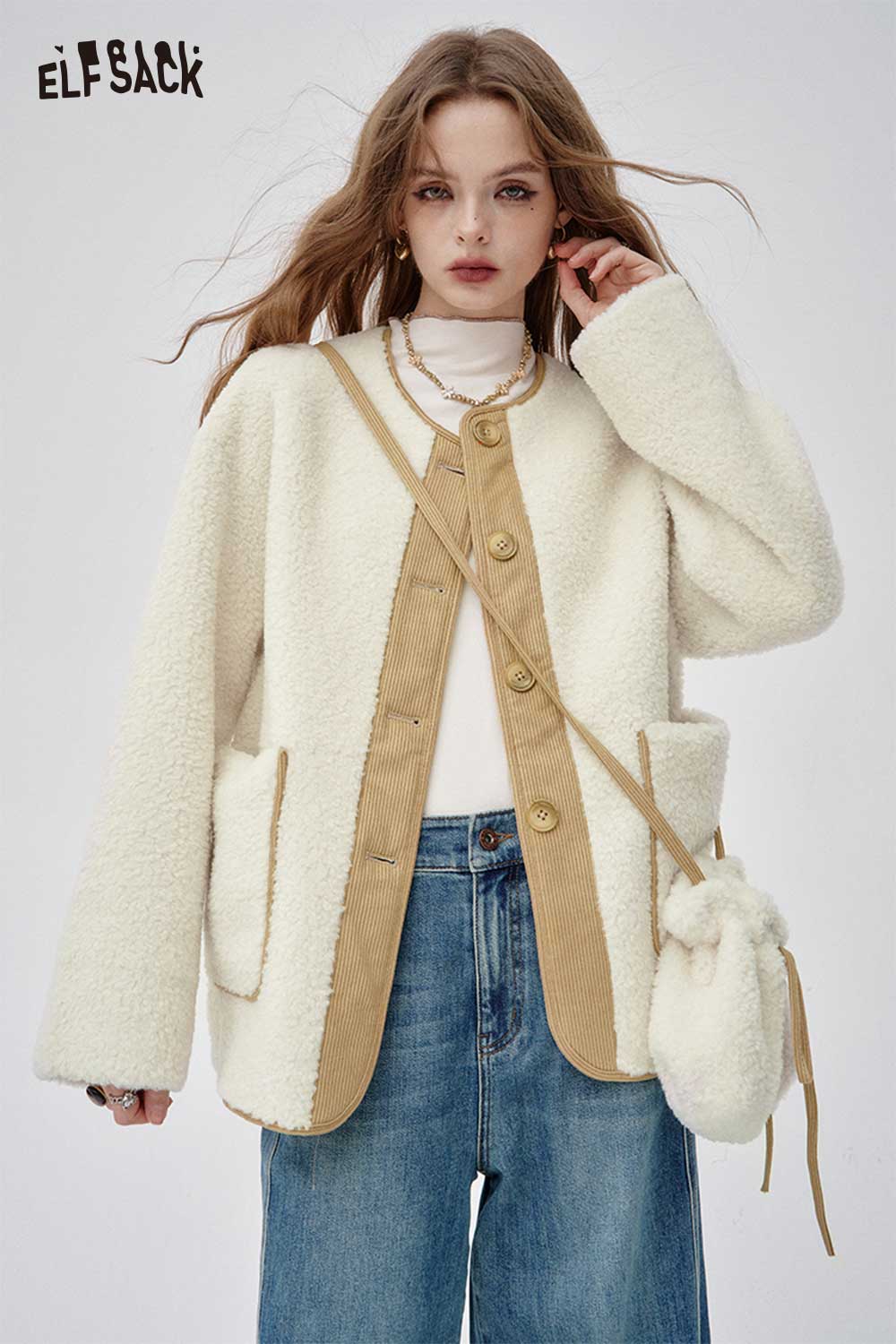 ELFSACK wool blend oversized tote bag in brown with a stylish chain strap for casual outings