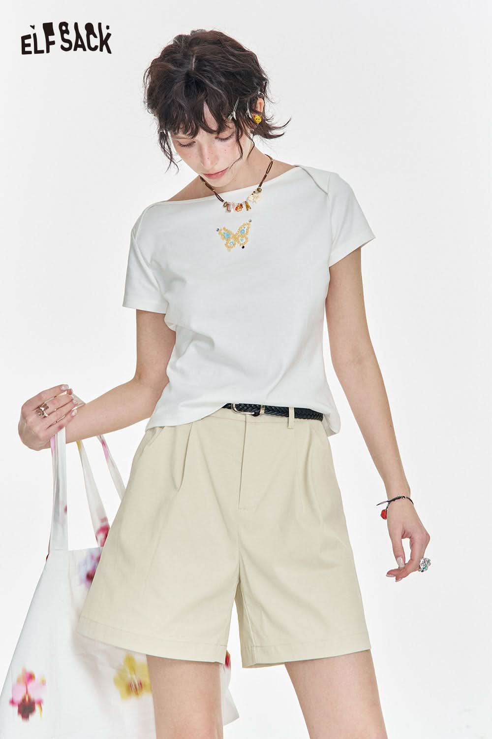 Stretch Twill High Waist A-Line Shorts