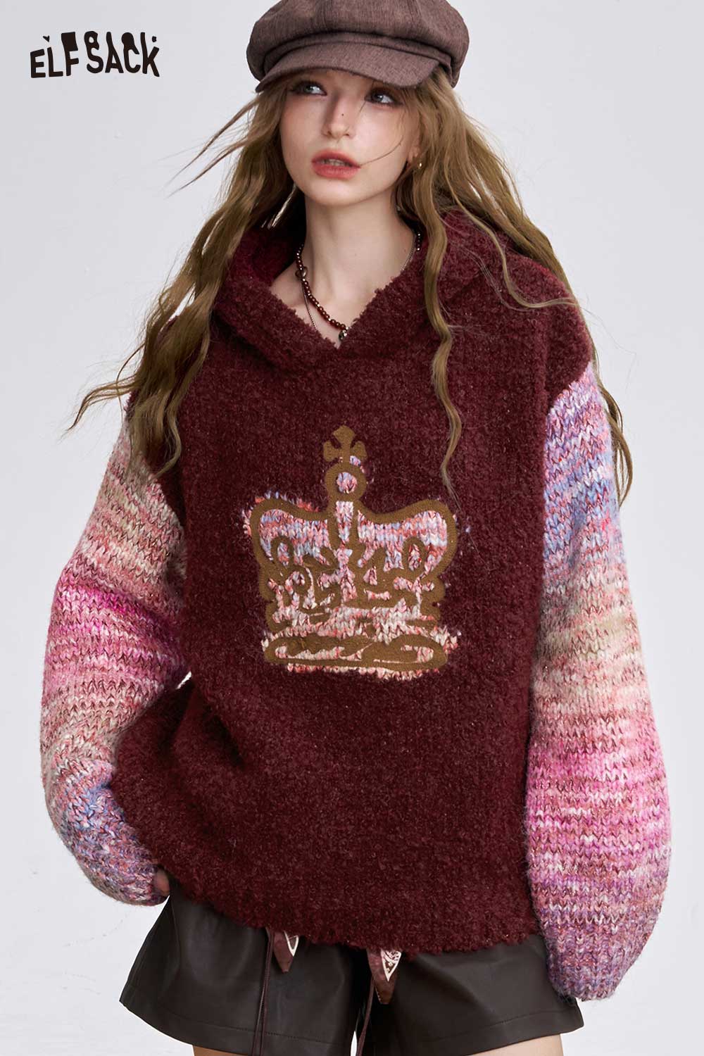 Soft Striped Patchwork Sleeve Design Colourful Print Knitted Sweater