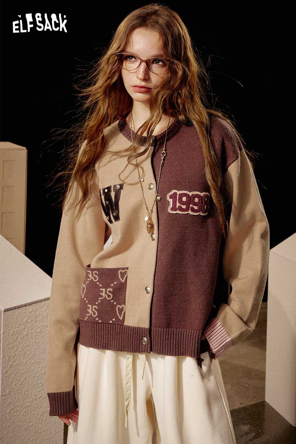Soft Knit Color Block Lapel Collar Slim Fit Cardigan