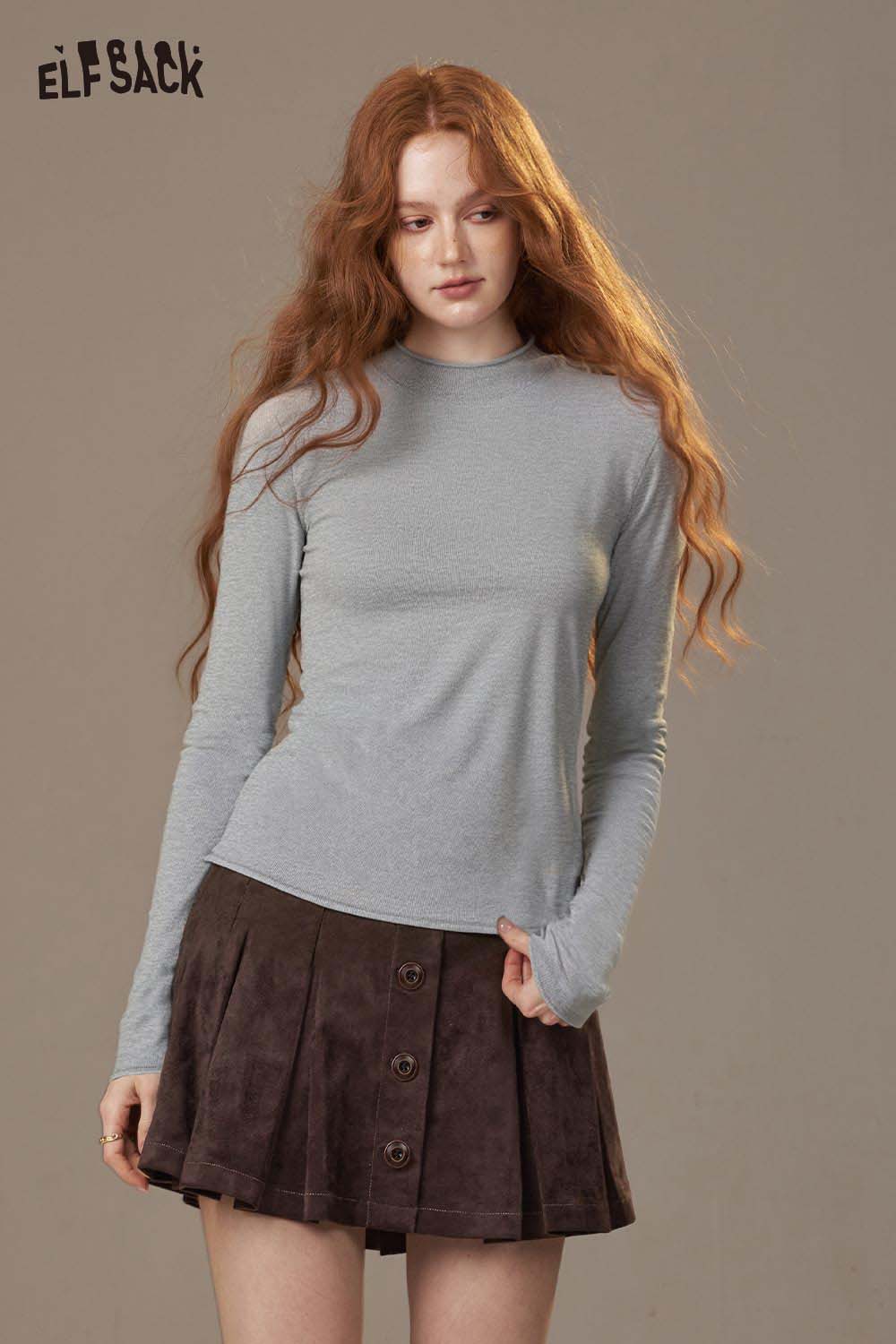 Soft Solid Color Fitted Silhouette Long Sleeve Top
