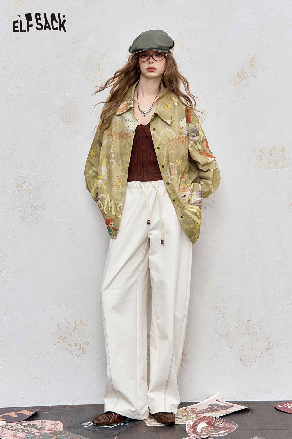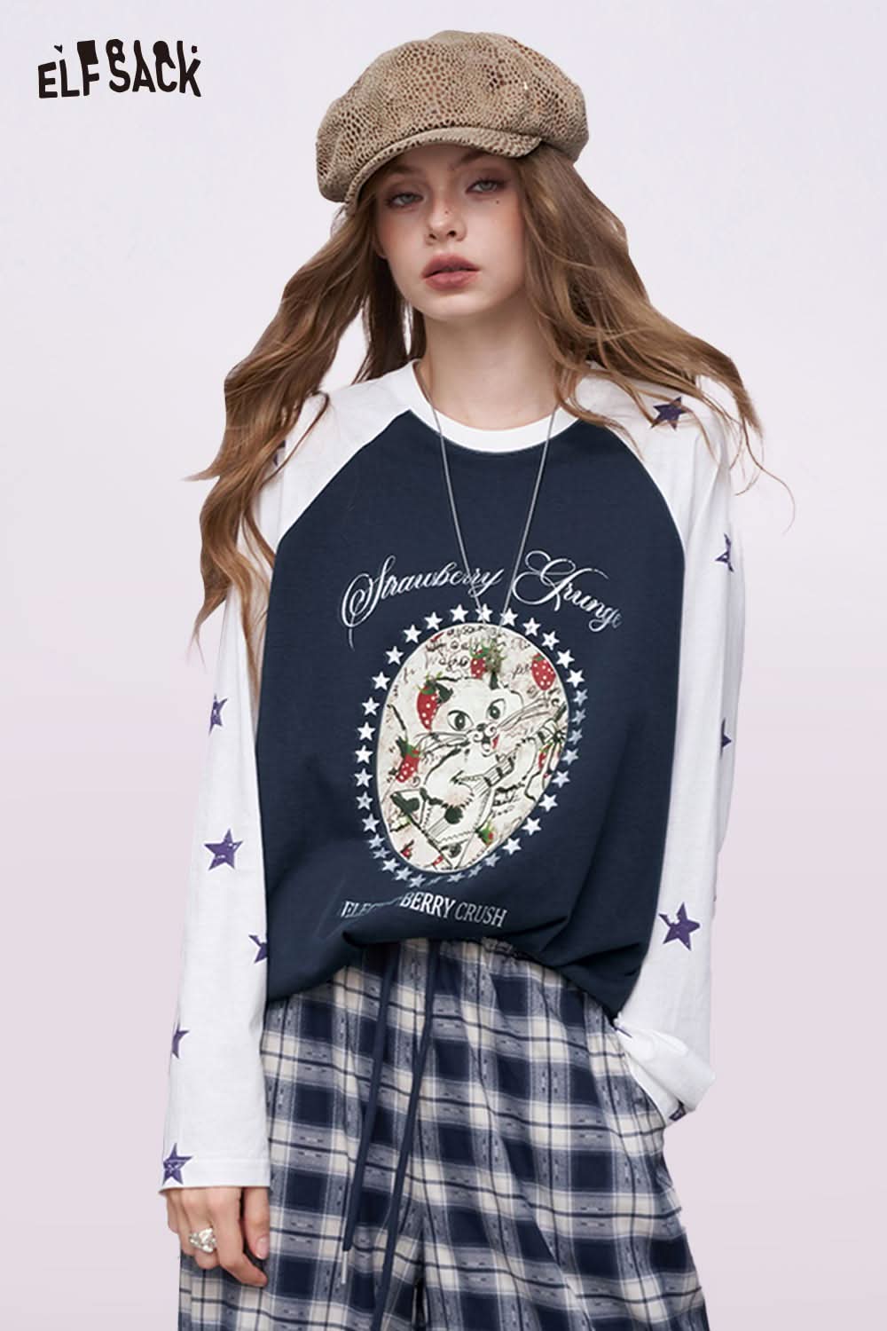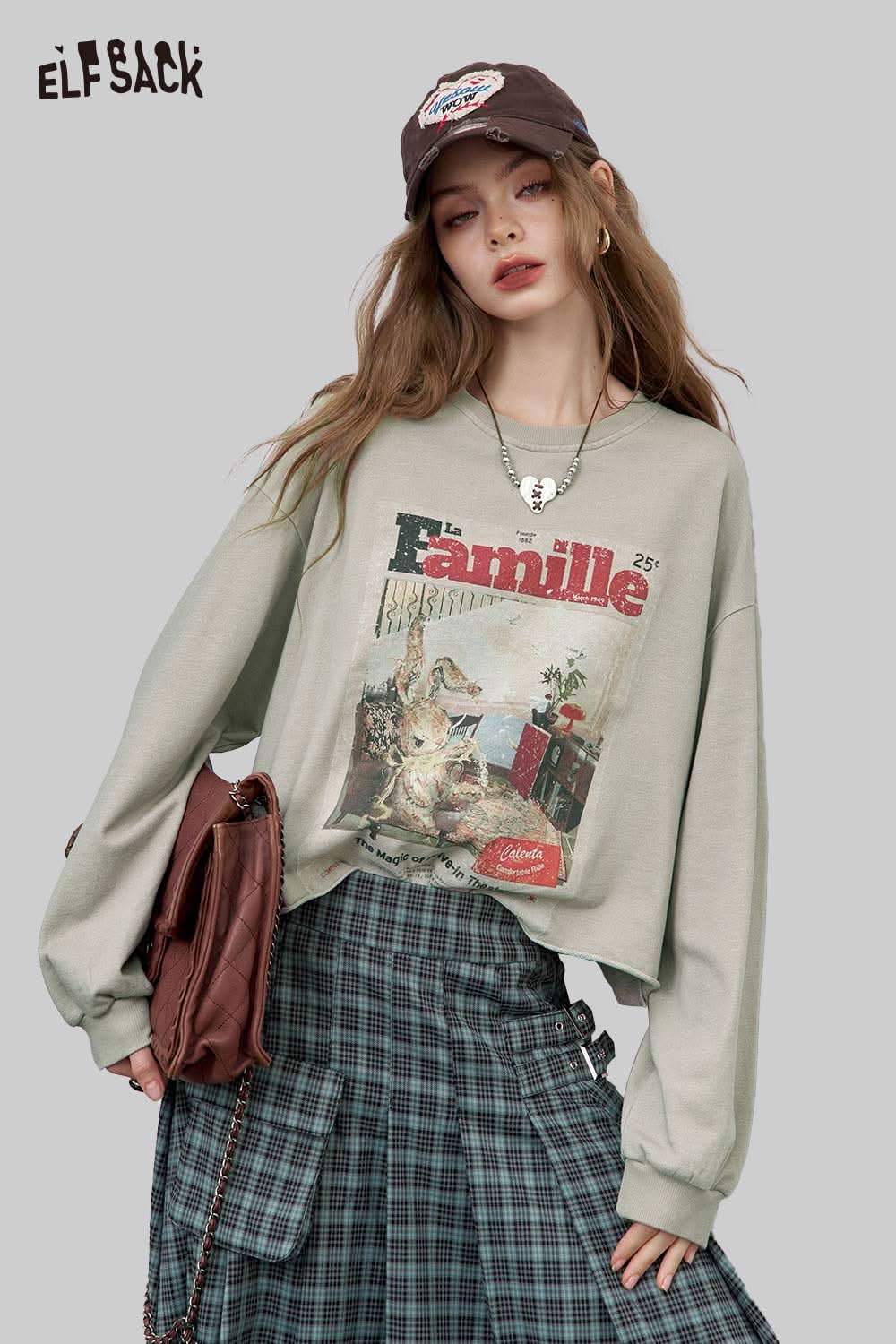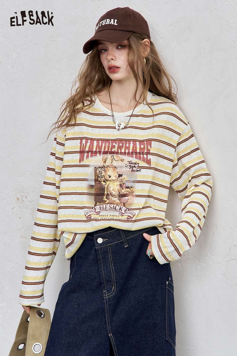 ELFSACK distressed cotton jersey long sleeve tee in light color with vintage print design, perfect for casual outfits