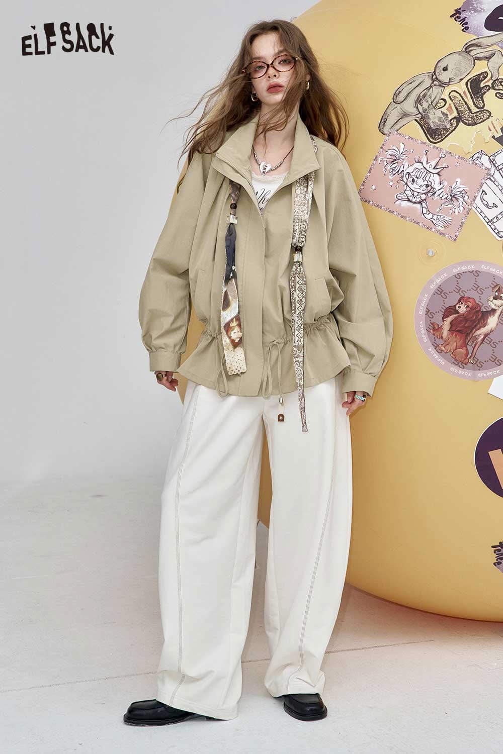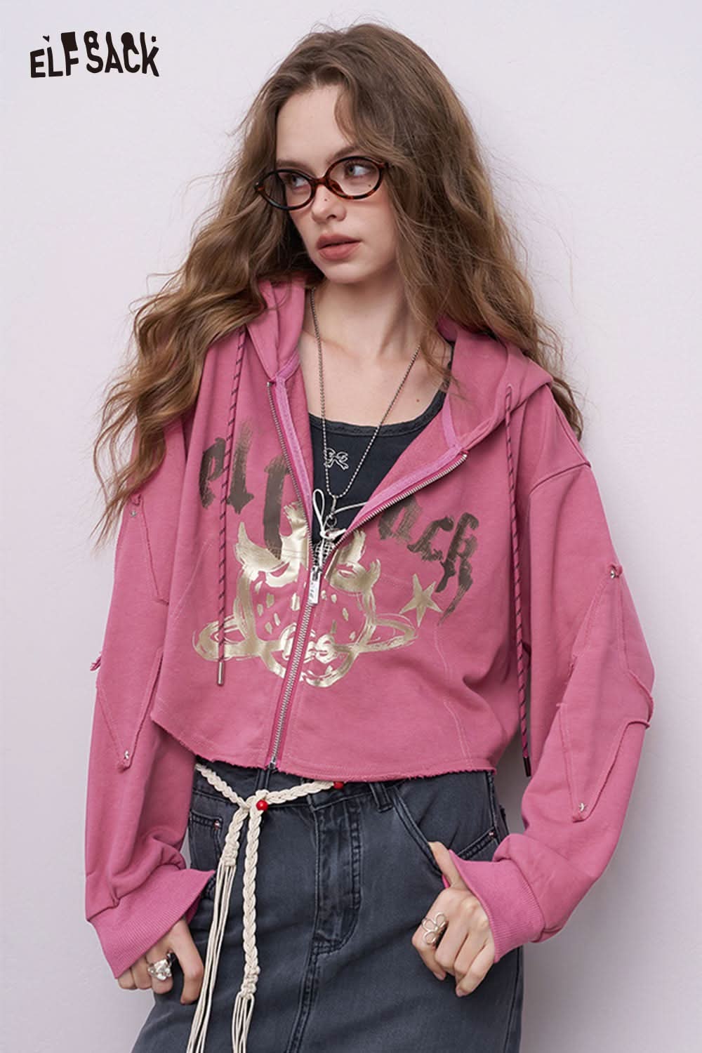 ELFSACK women's diamond embellished denim jacket styled with graphic tee plaid pants and brown cap