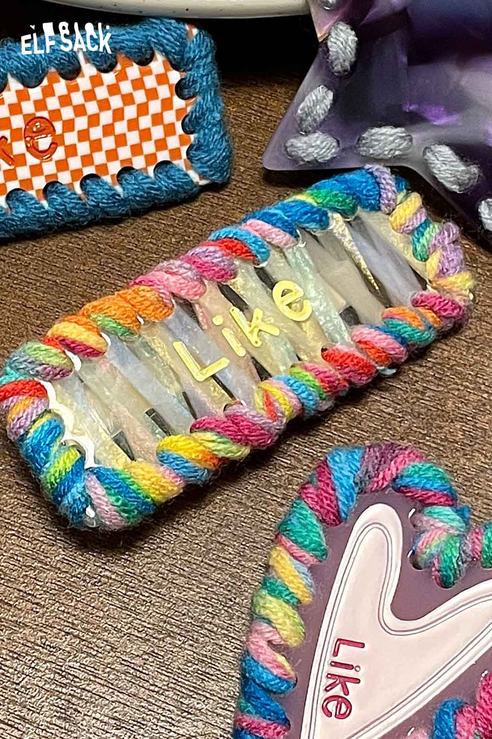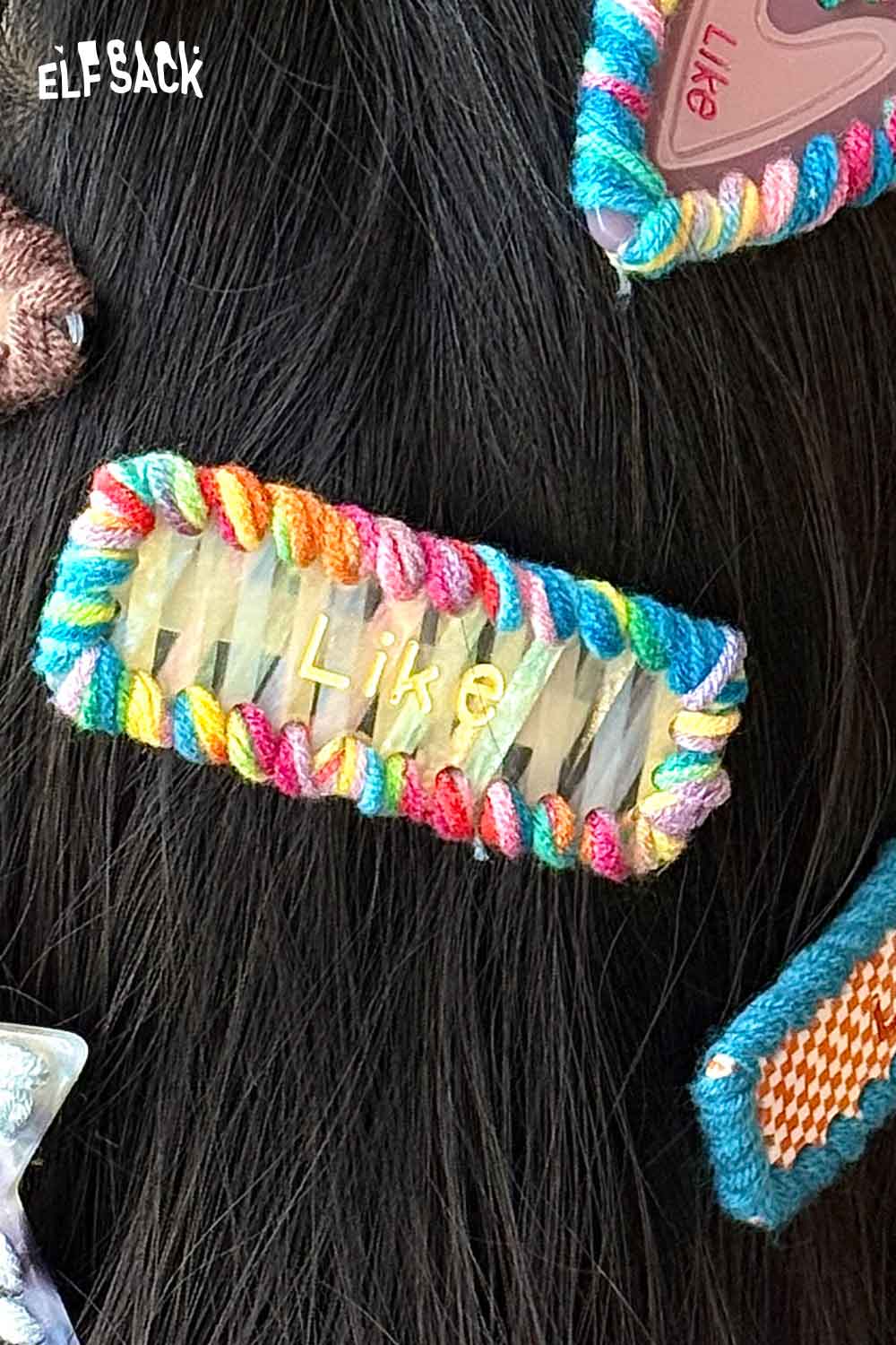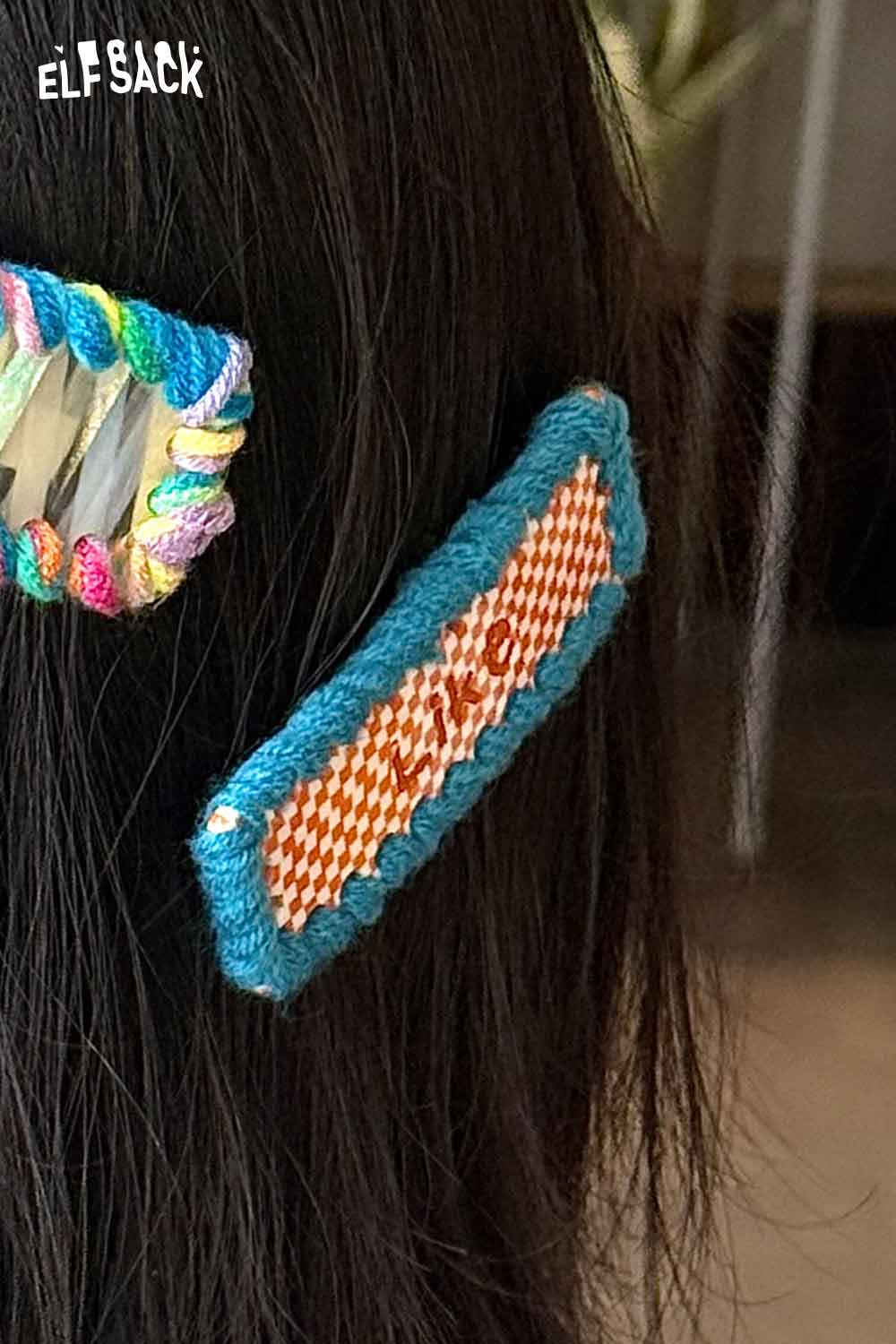 Hand Braided Colorful Yarn Alphabet Design Hairpin with Bead Accents