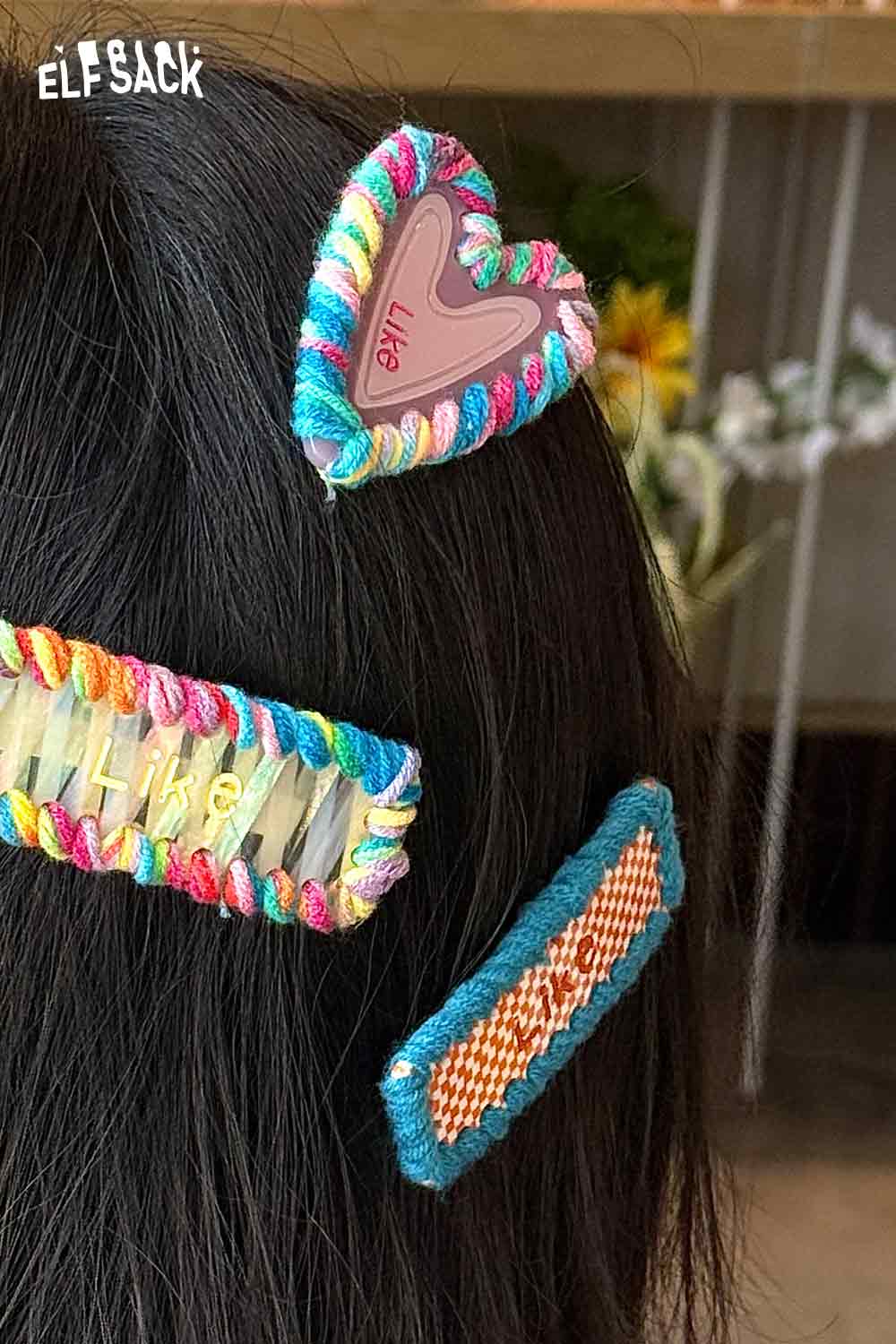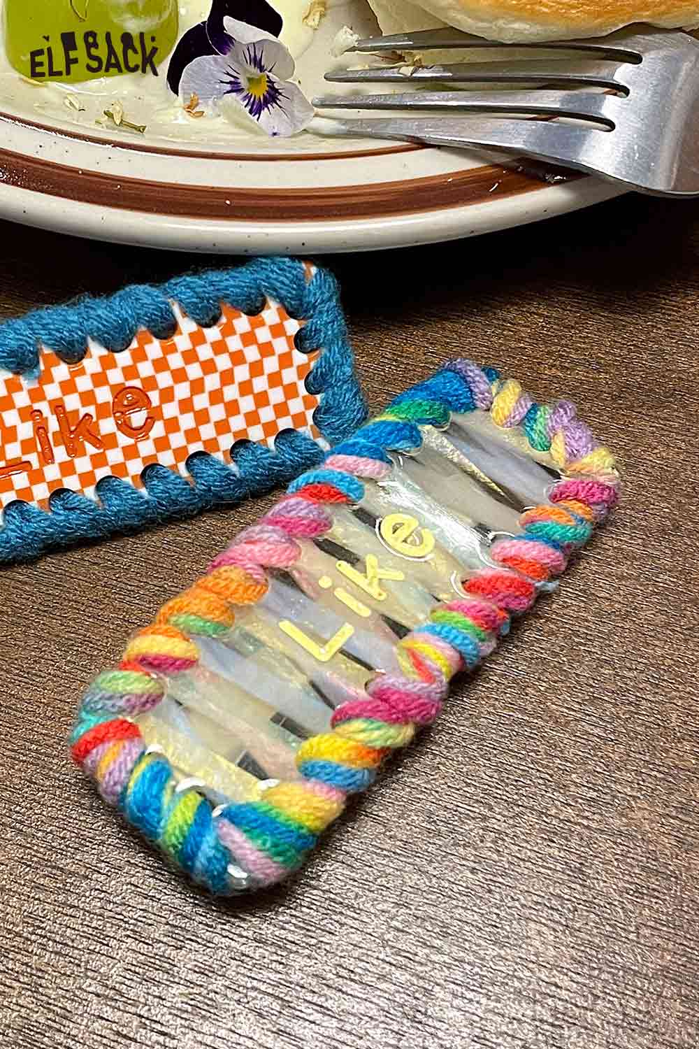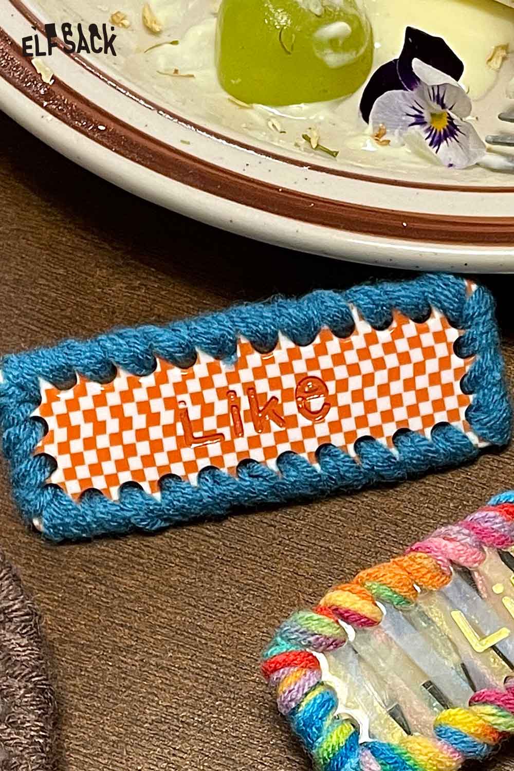 Hand Braided Colorful Yarn Alphabet Design Hairpin with Bead Accents