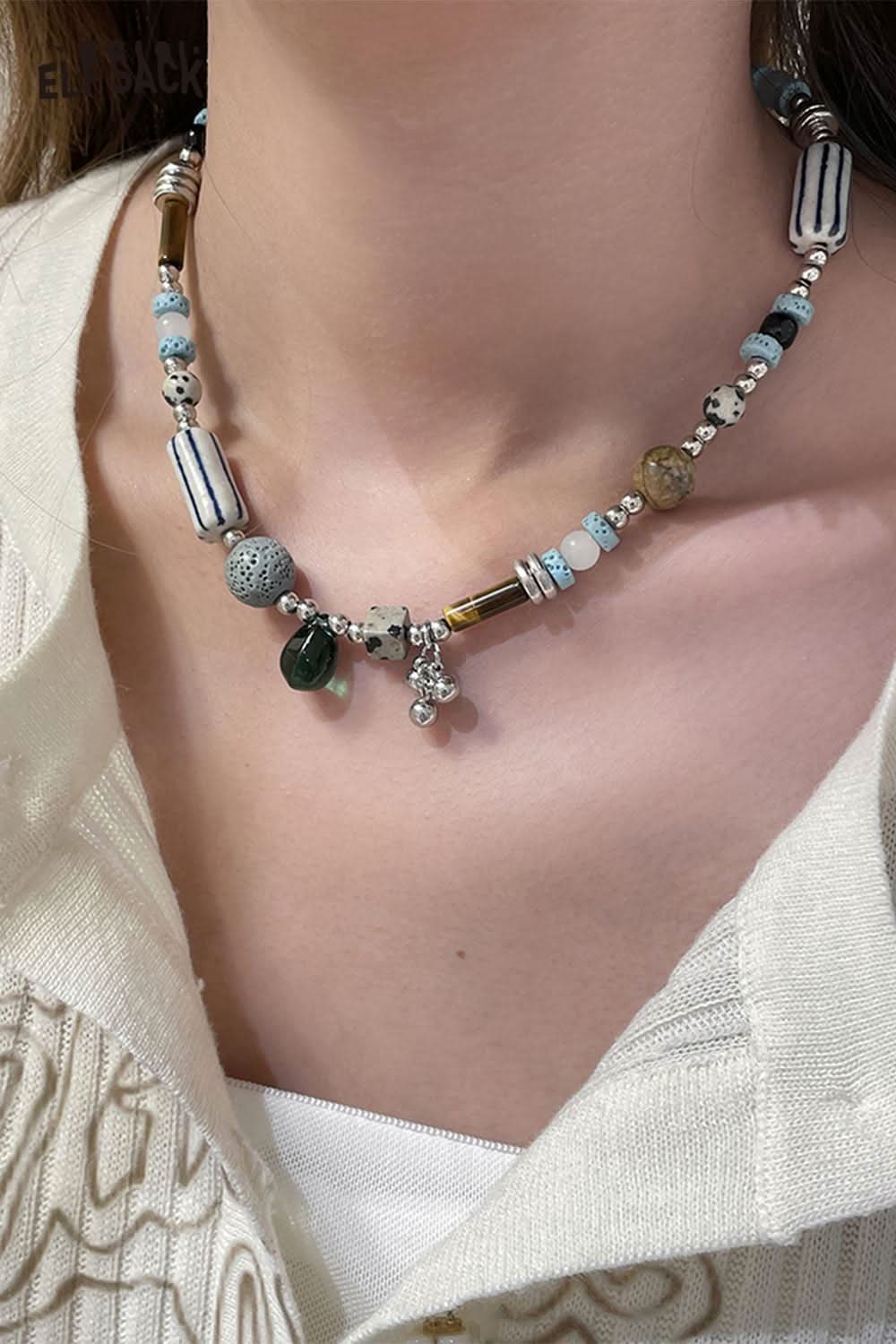 Handstrung Glass Bead Bohemian Cute Gradient Color Necklace