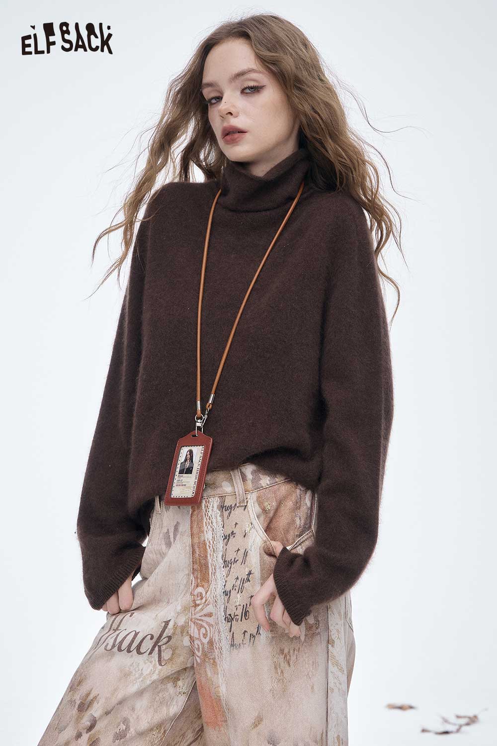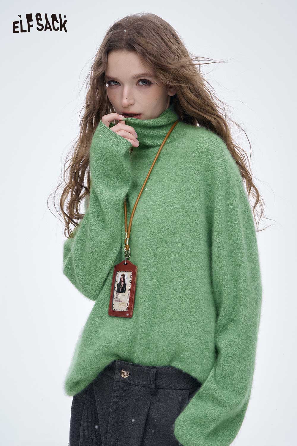 Wool Loose Classic High Neck Slouchy Solid Base Sweater