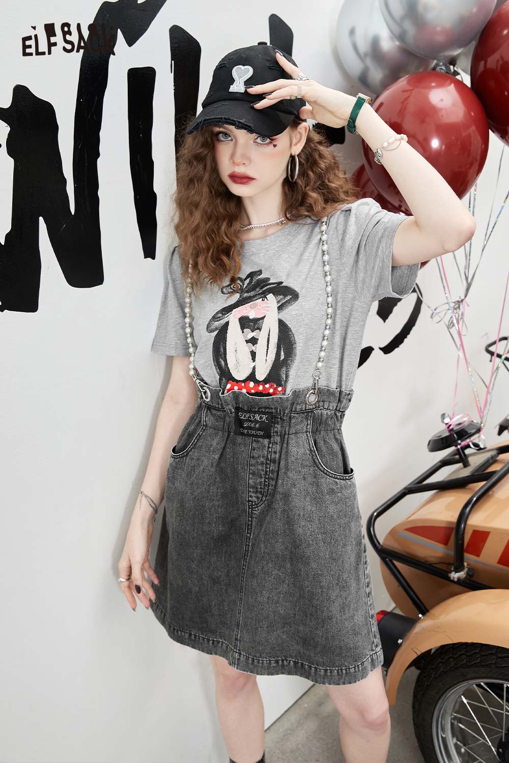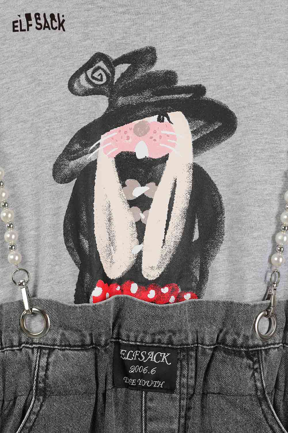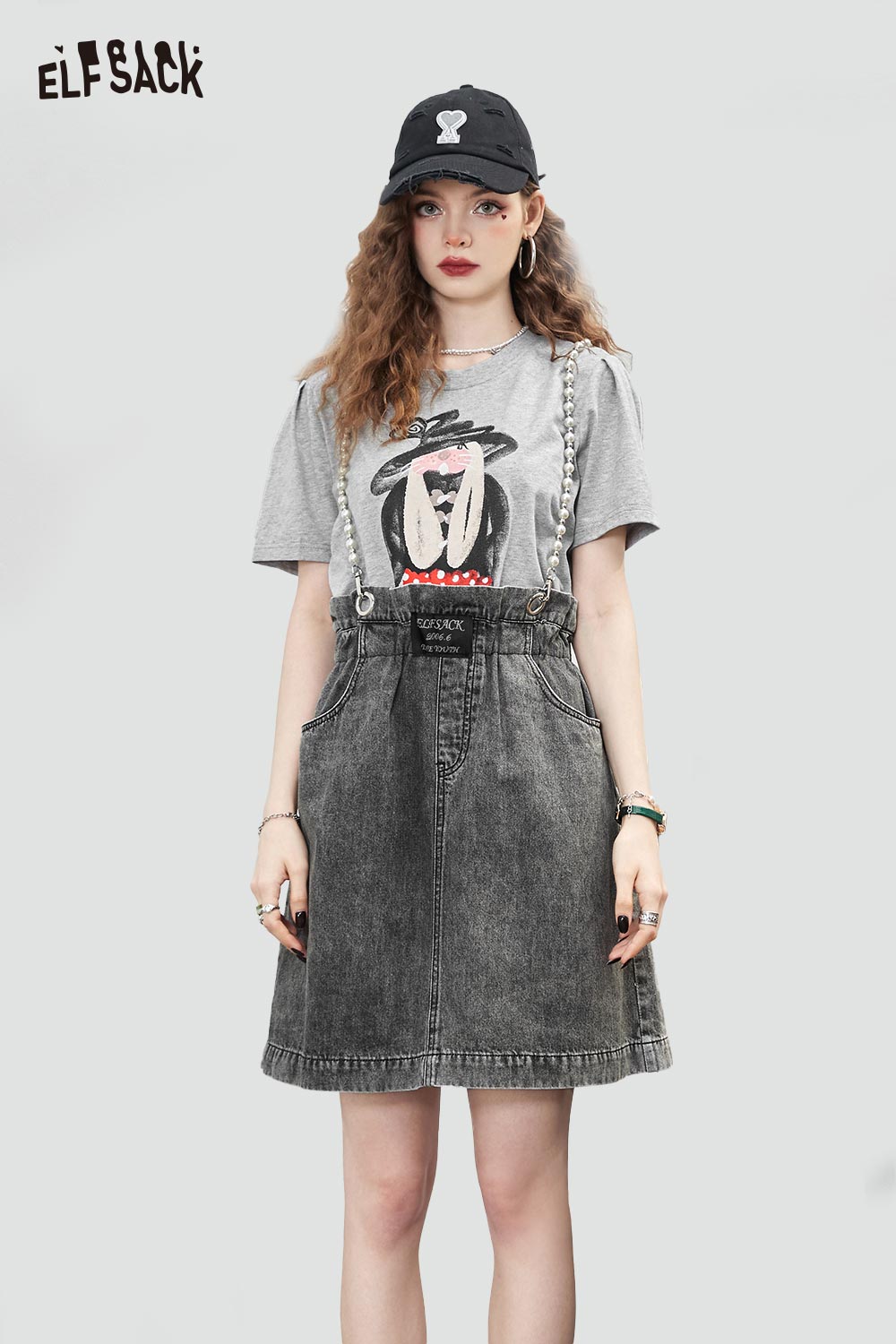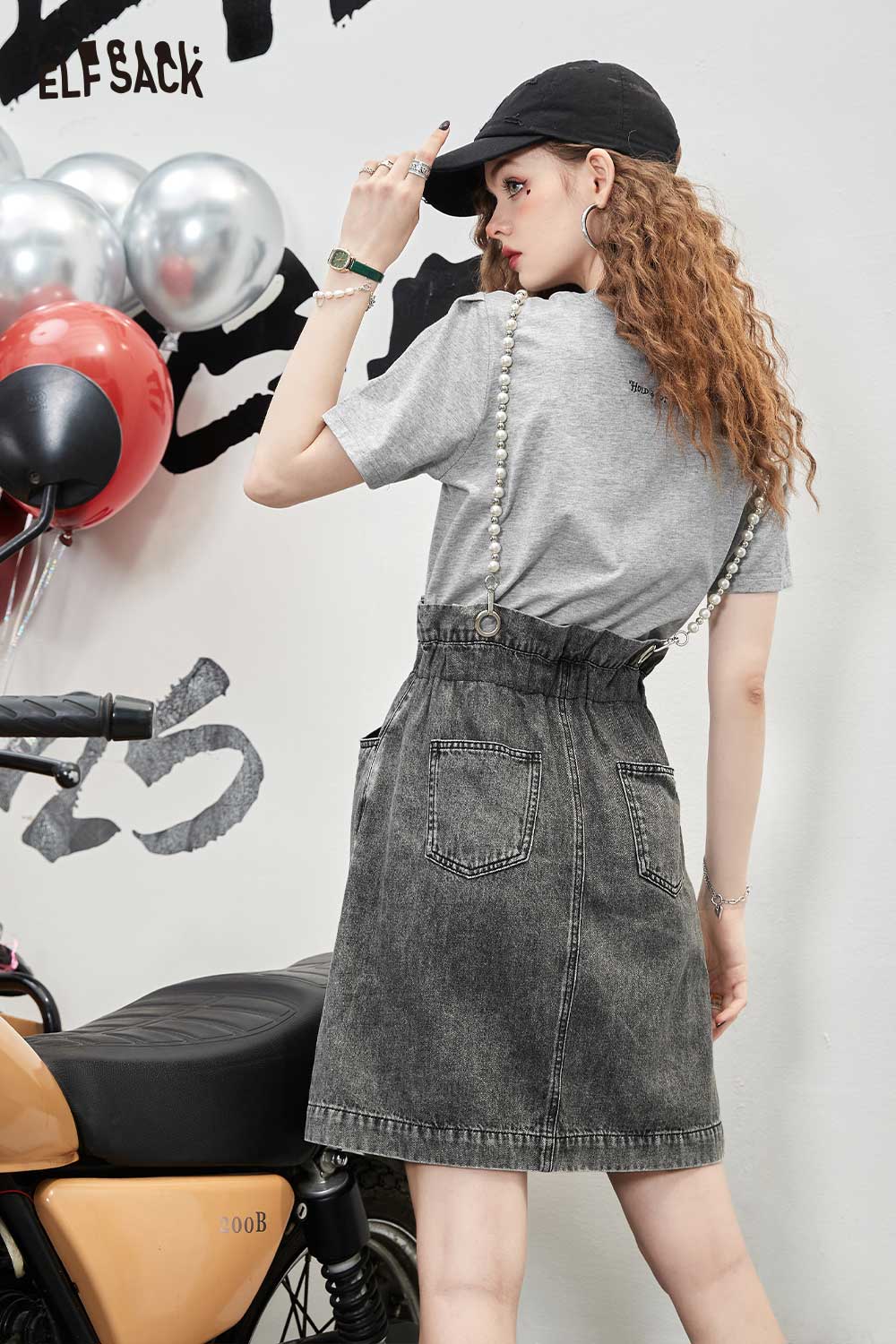Denim Jumper Pearl Strap Detail Dress