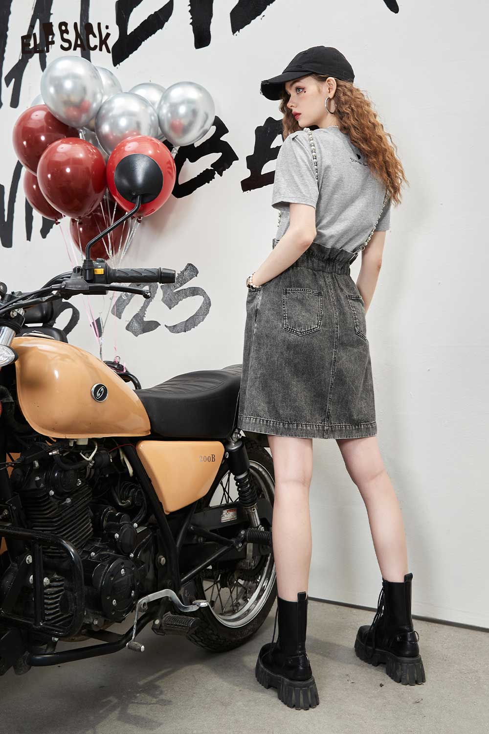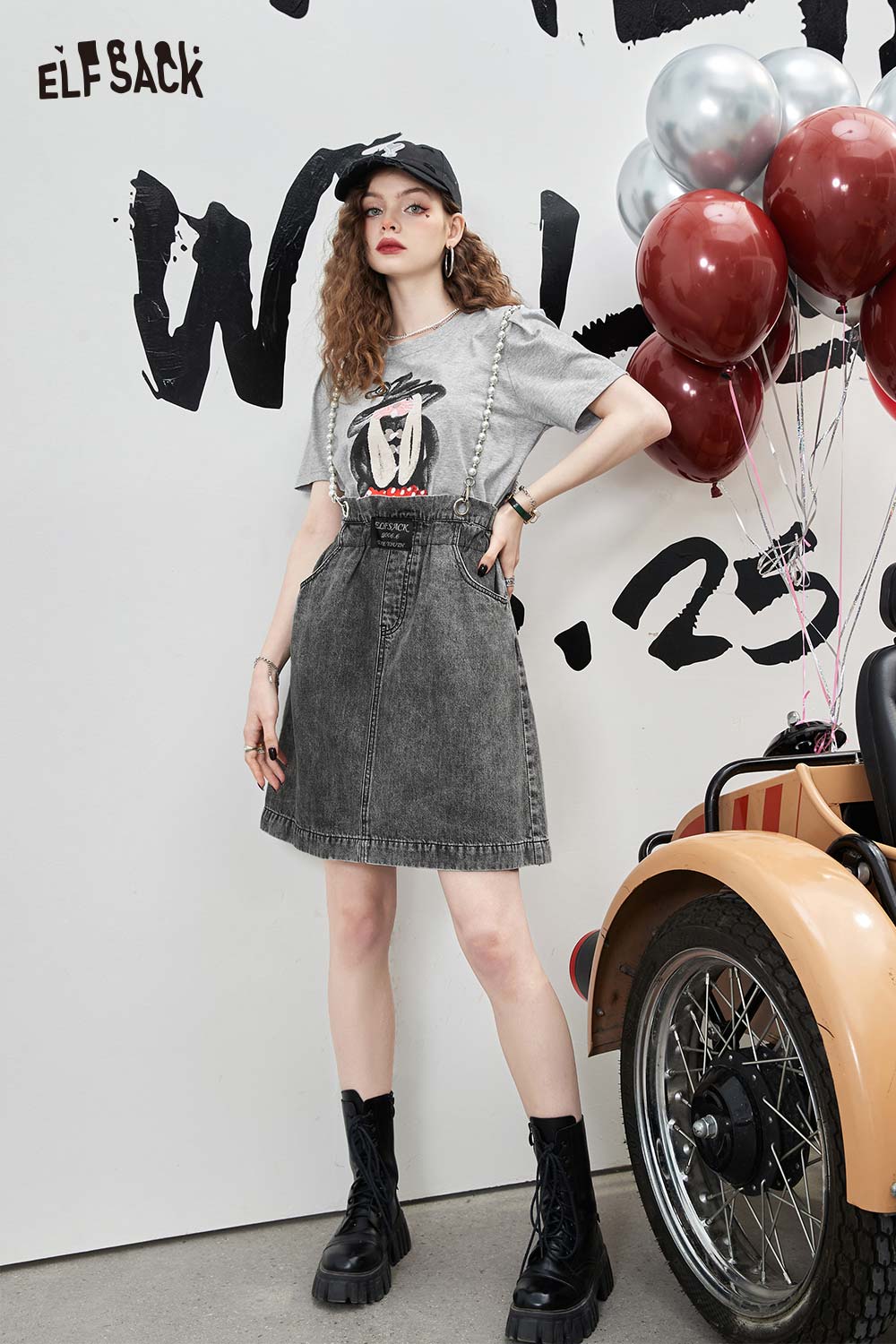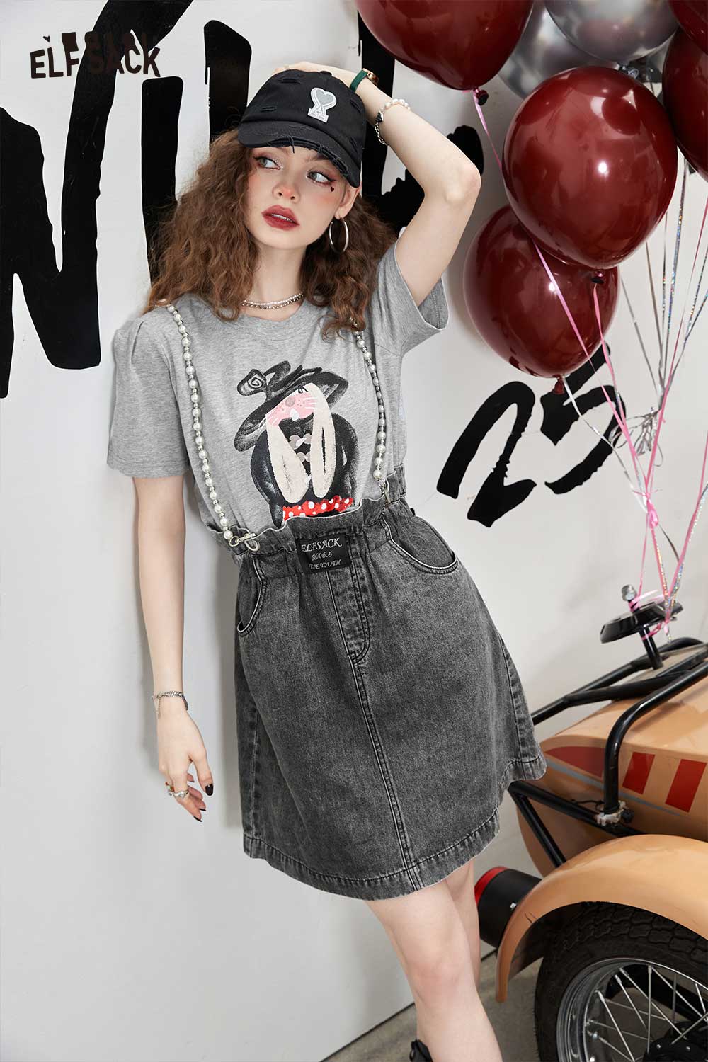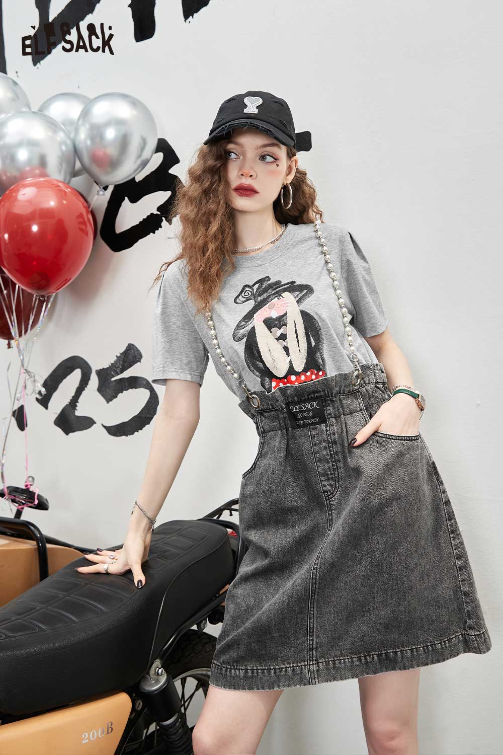 Denim Jumper Pearl Strap Detail Dress