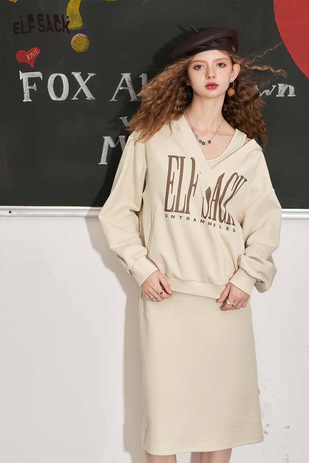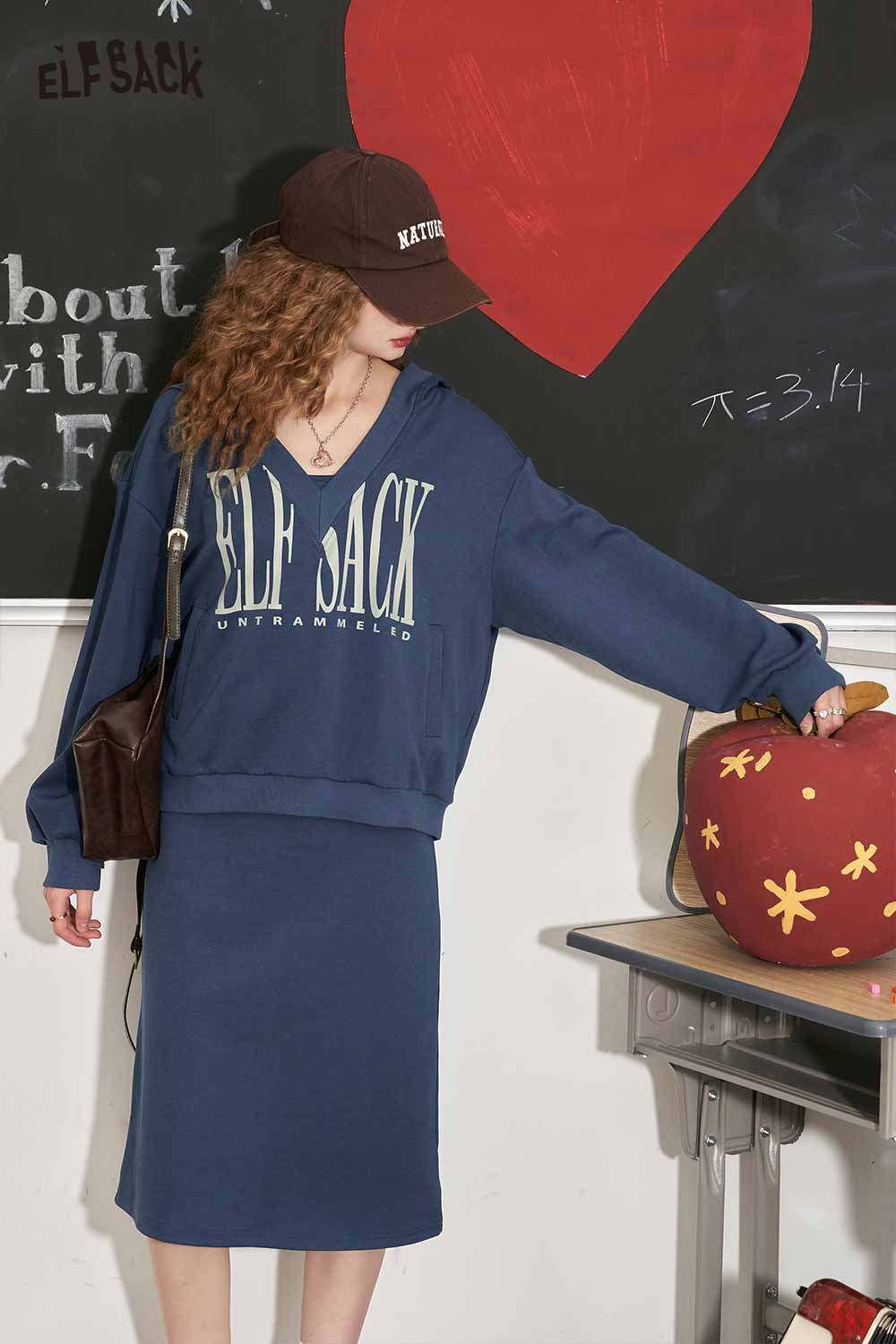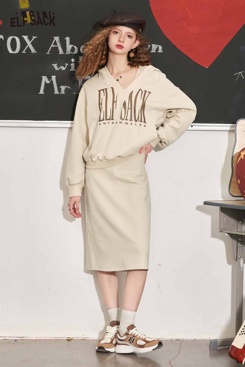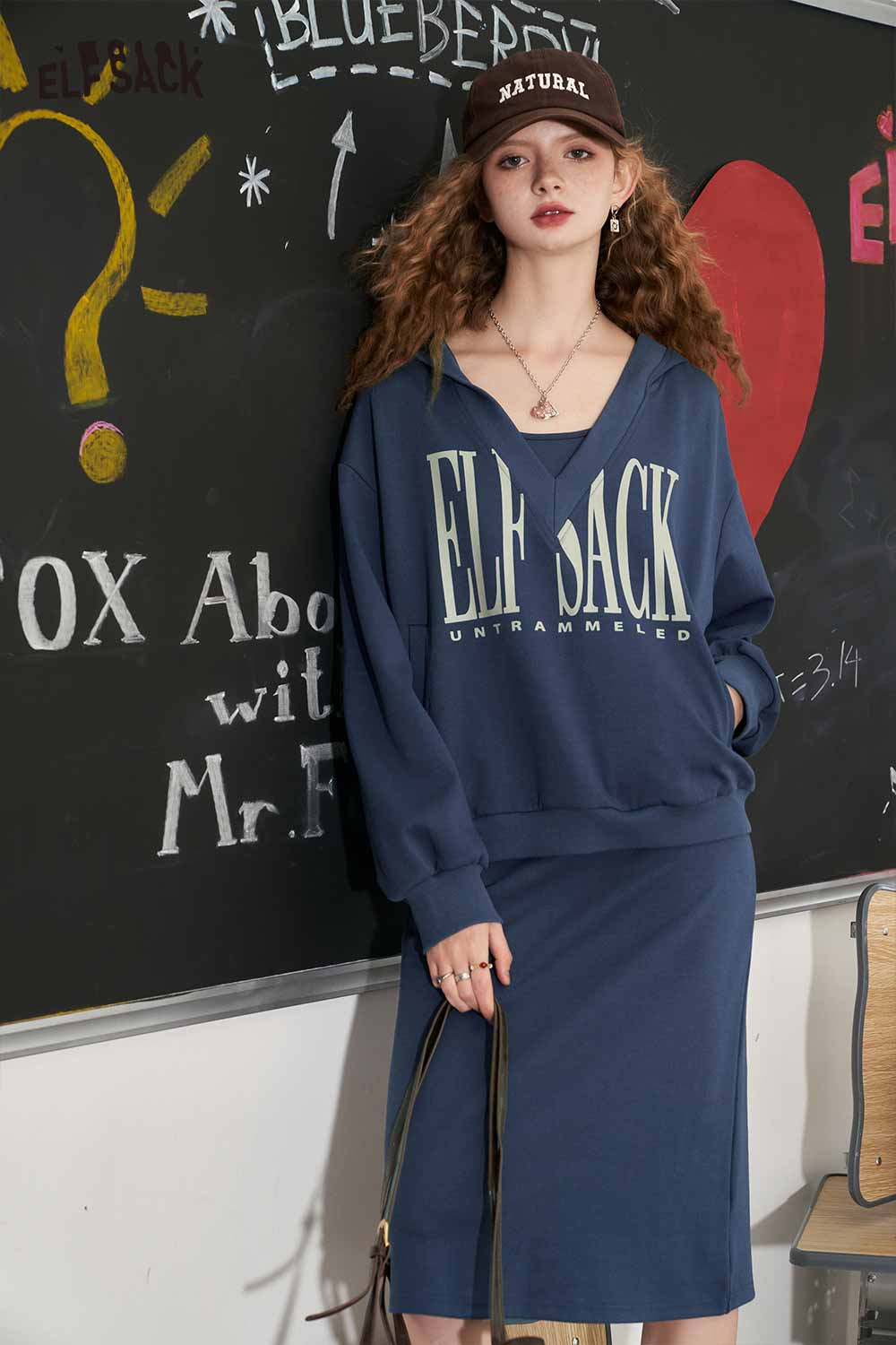 Breathable Loose Sport Hoodie Slip Skirt Set