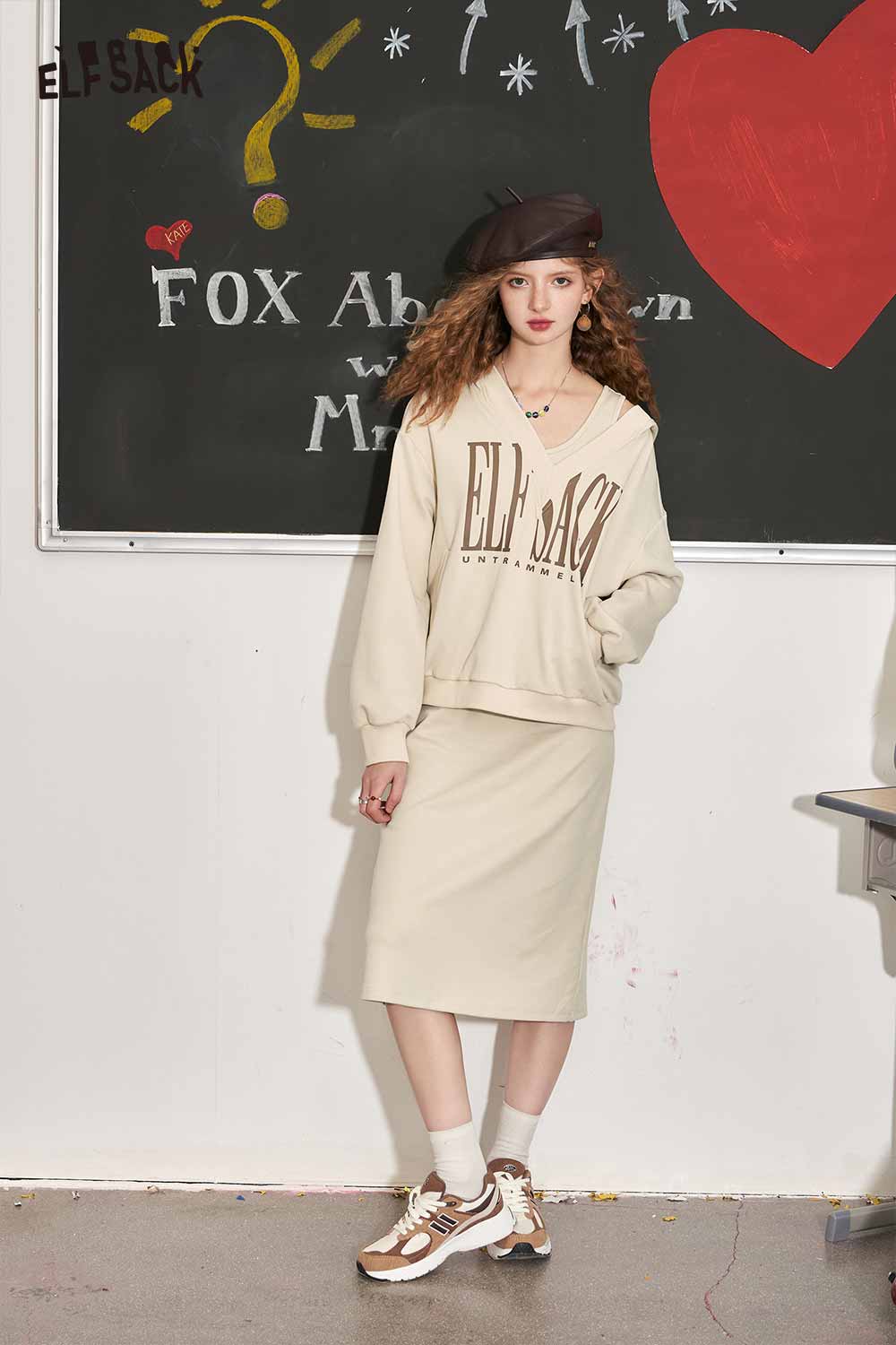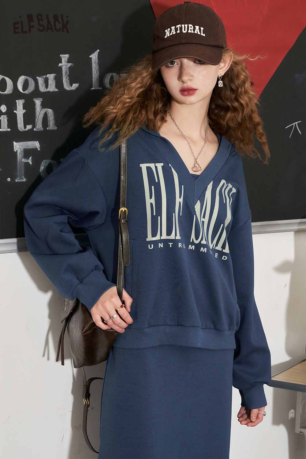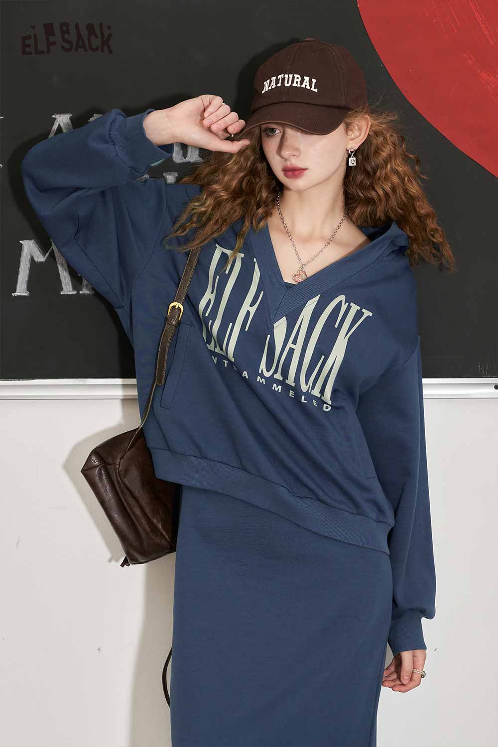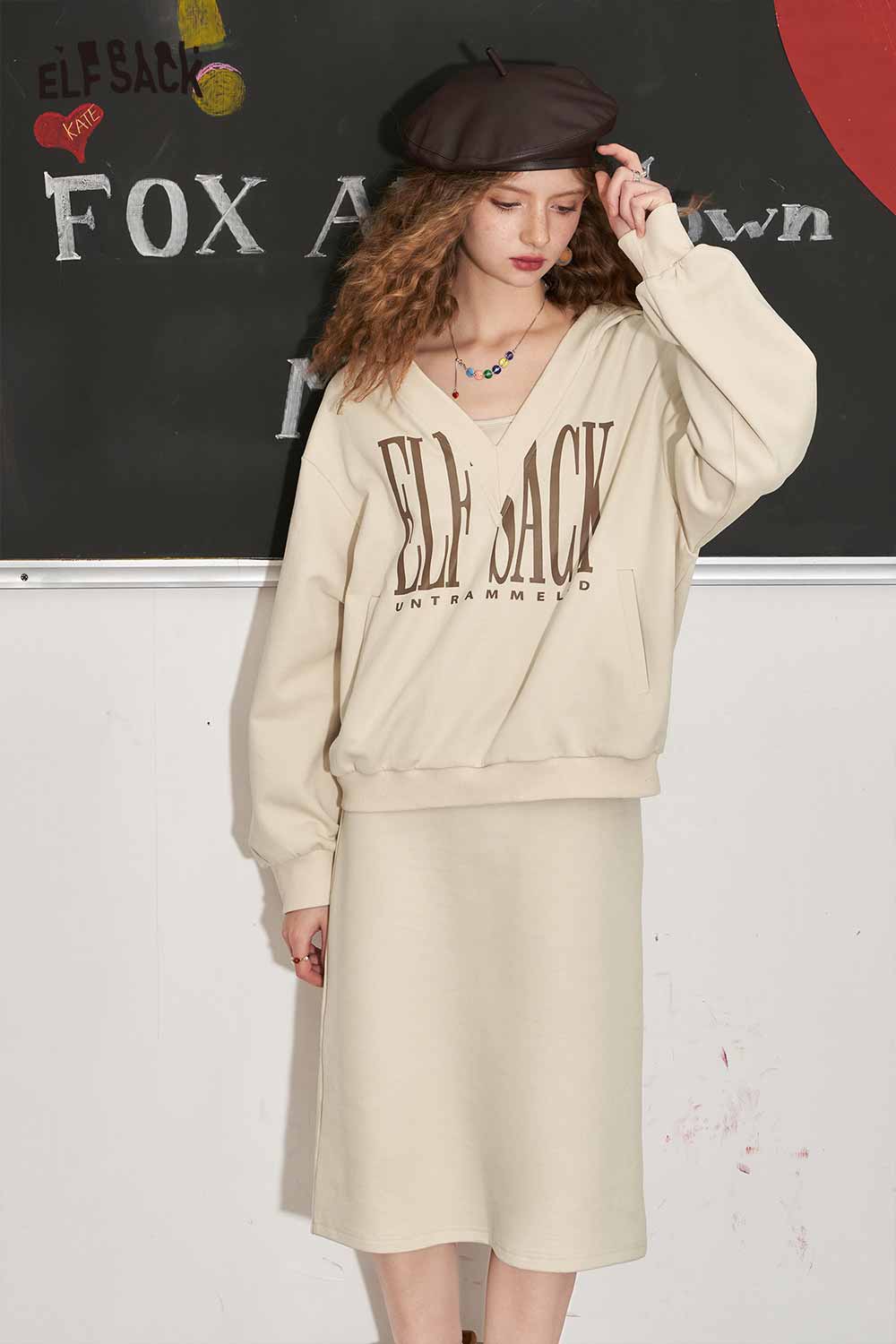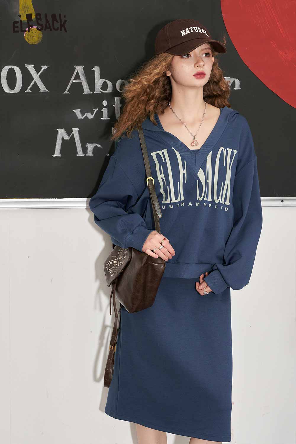 Breathable Loose Sport Hoodie Slip Skirt Set