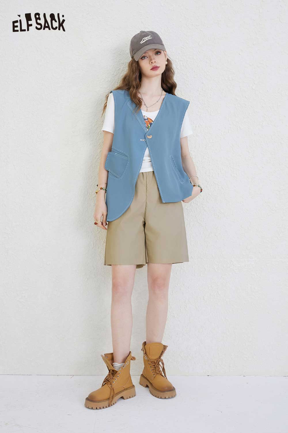 Breathable Petite High Waist Loose Wide Leg Bermuda Shorts