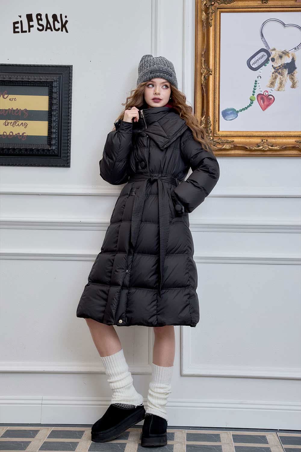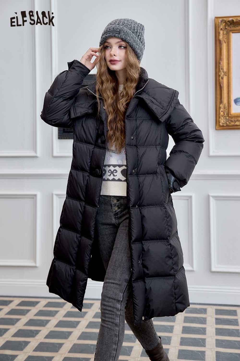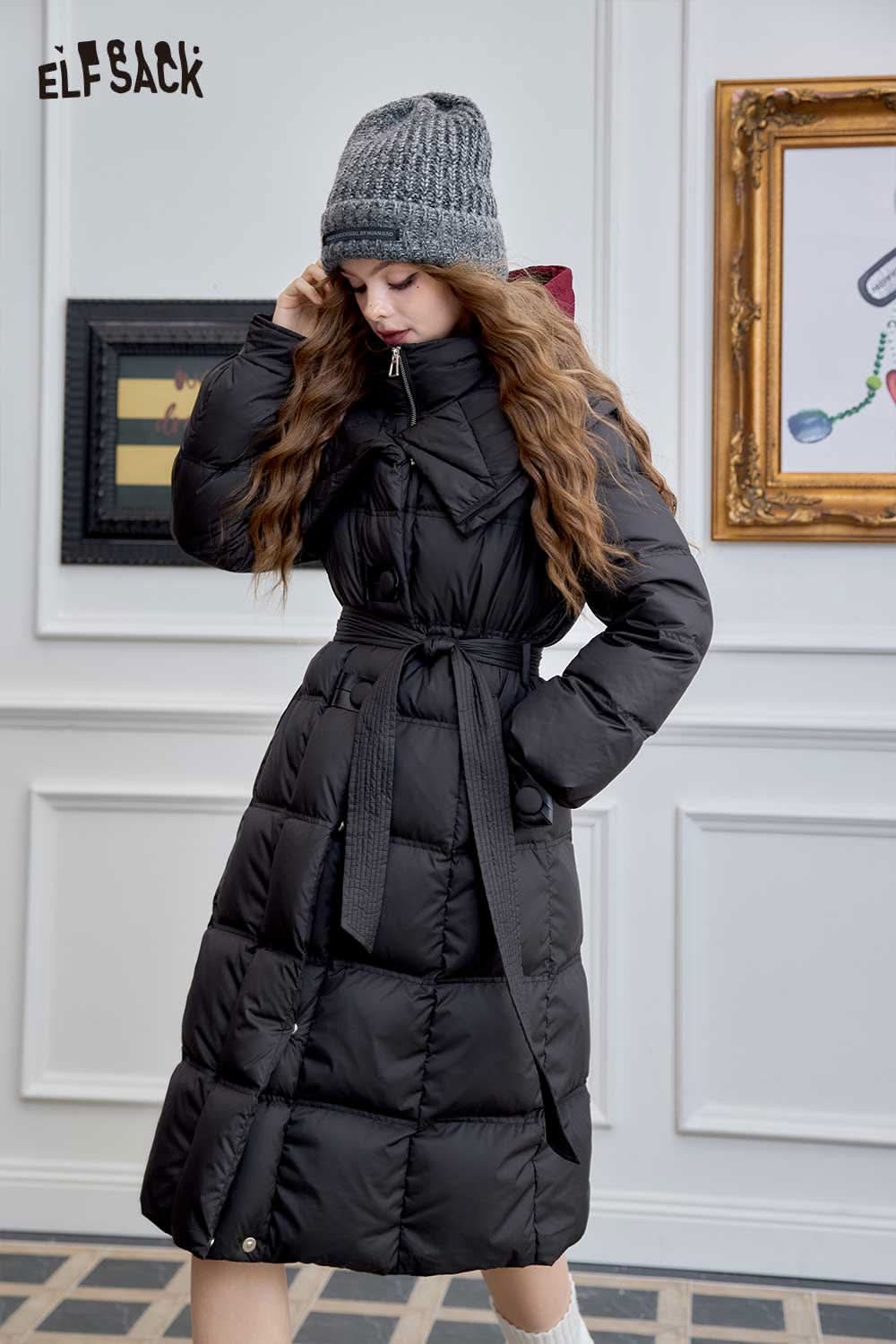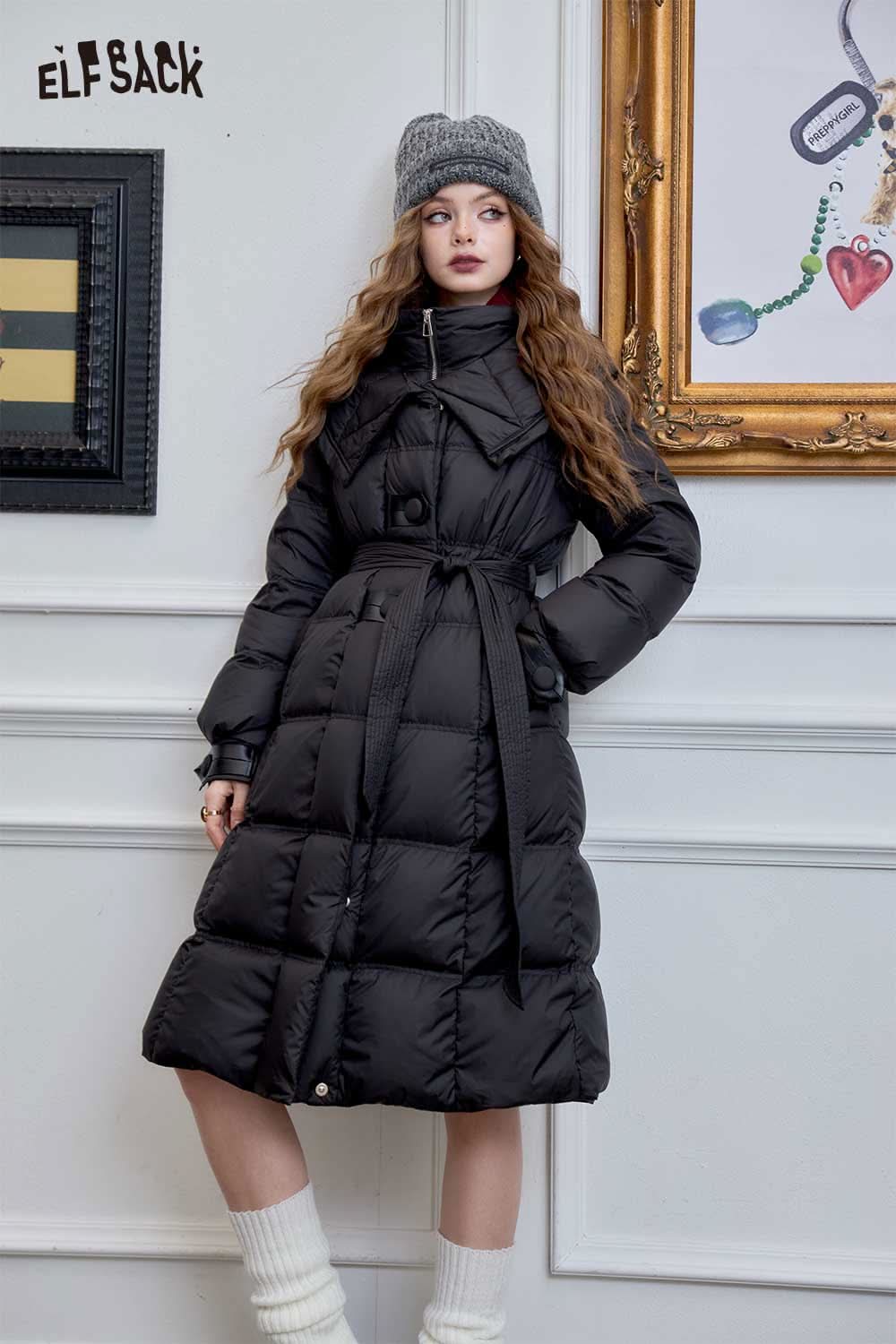 Soft Petite Warm Black Waist Long Stand Collar Down Jacket
