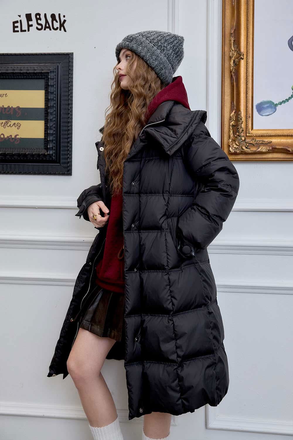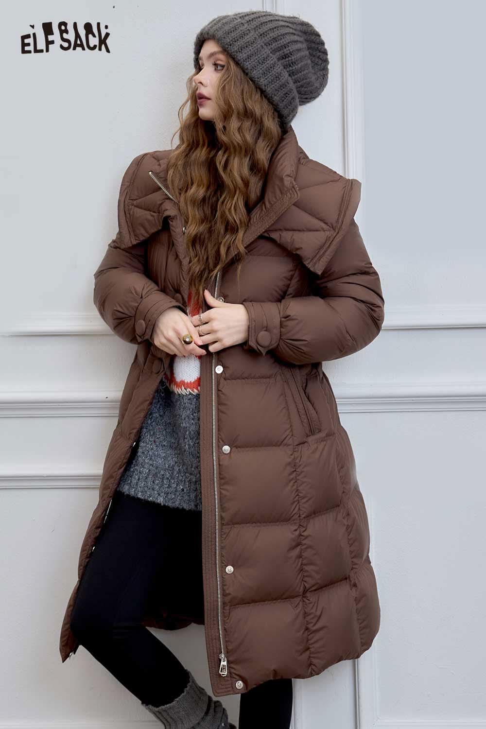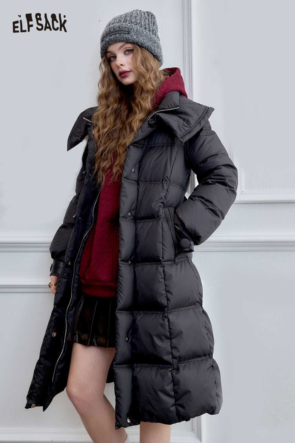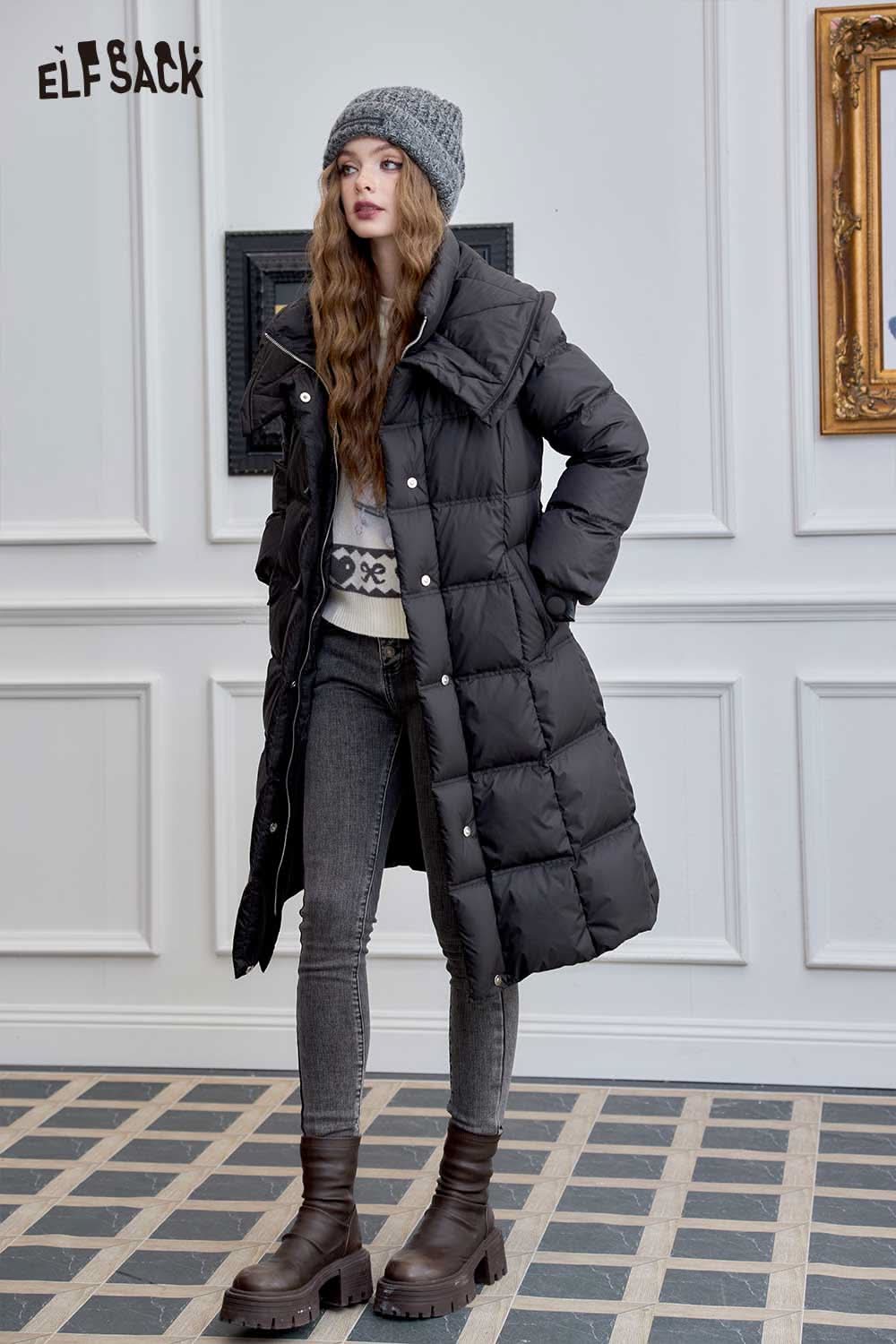 Soft Petite Warm Black Waist Long Stand Collar Down Jacket