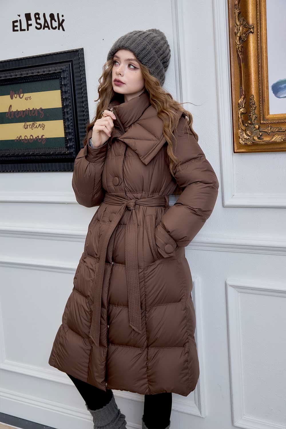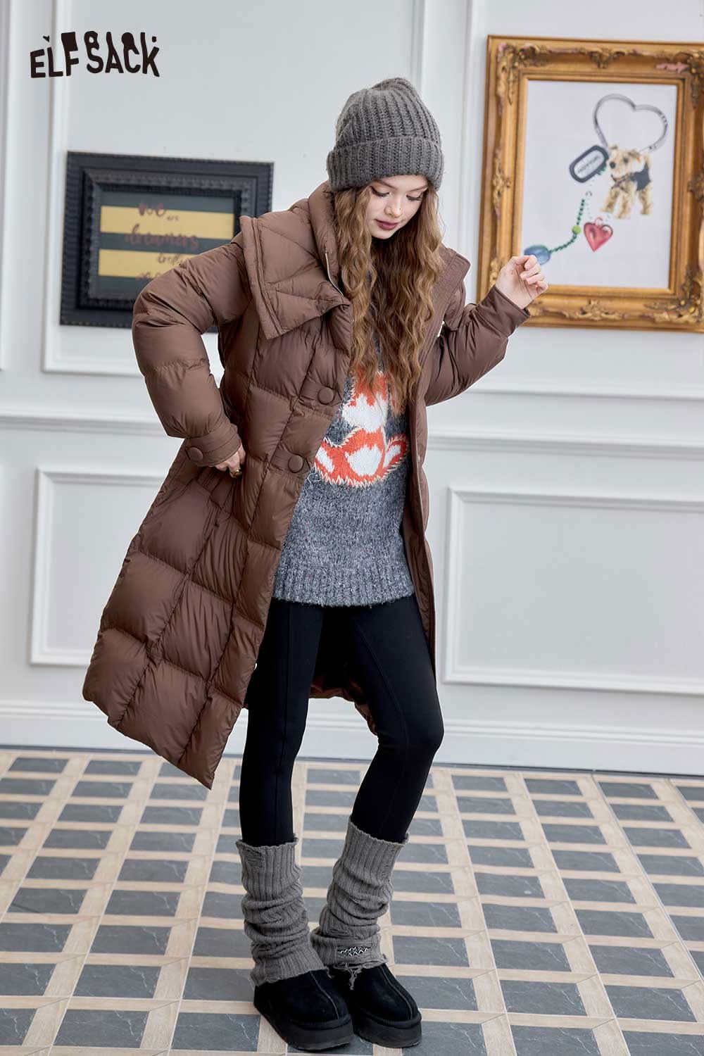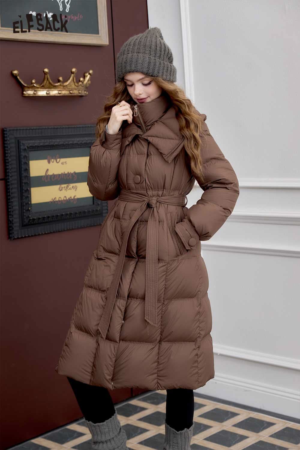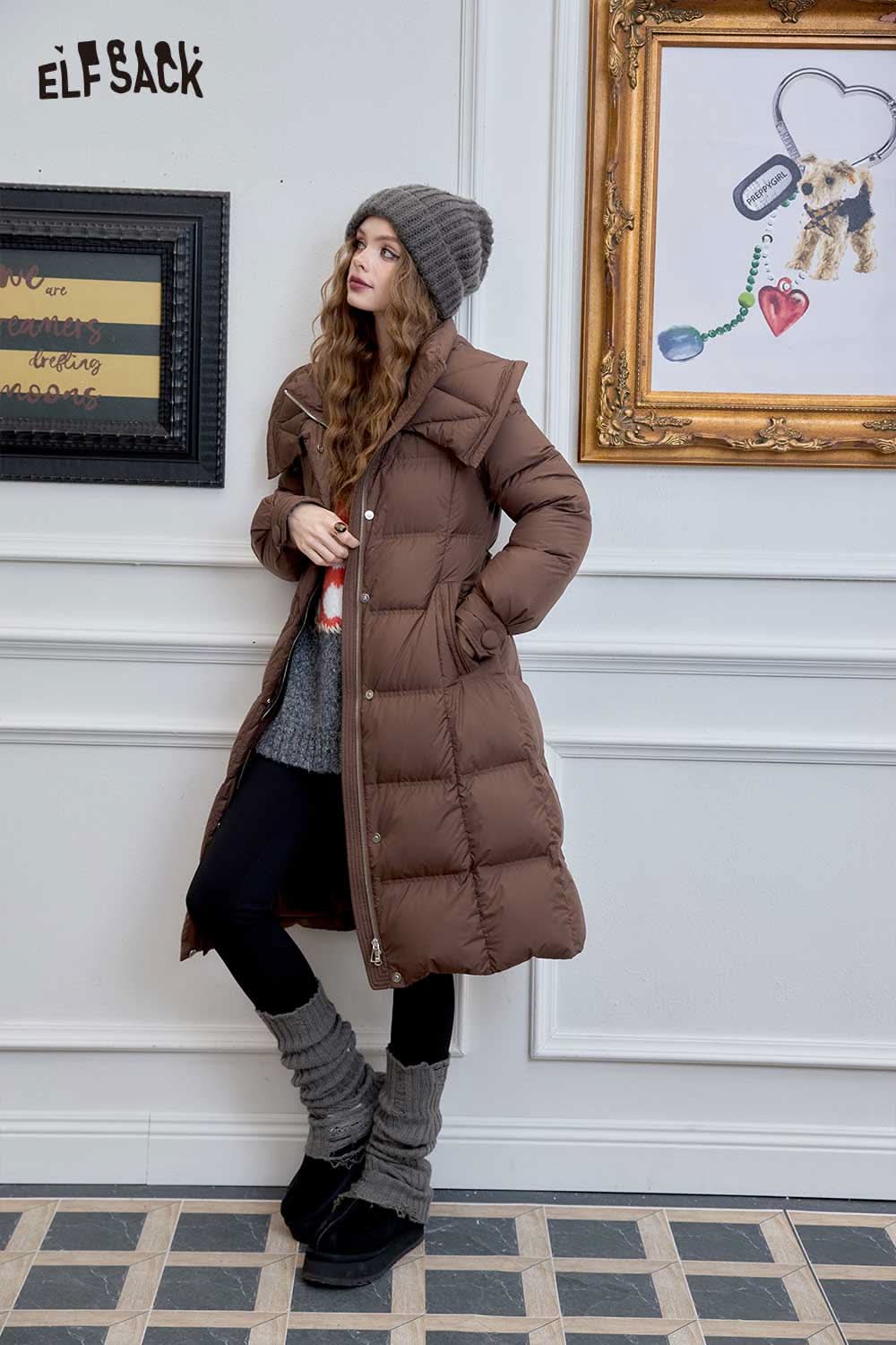 Soft Petite Warm Black Waist Long Stand Collar Down Jacket