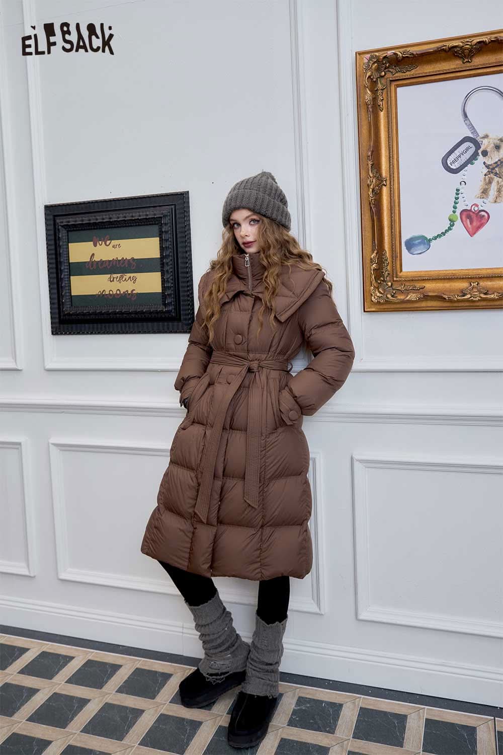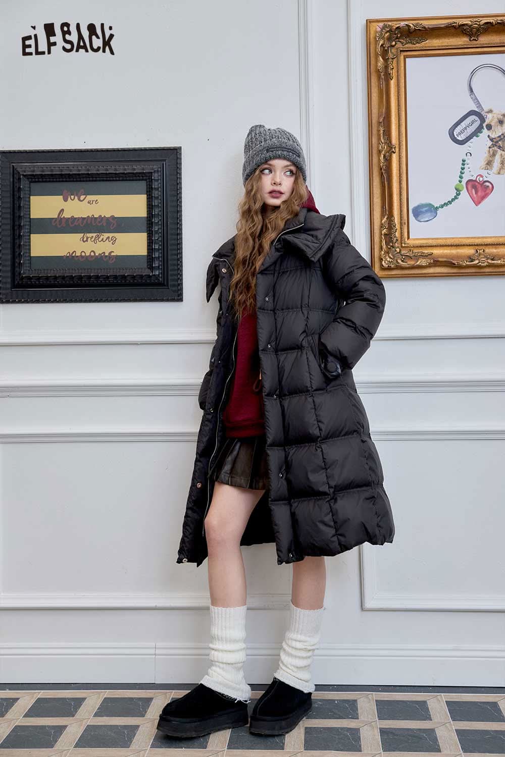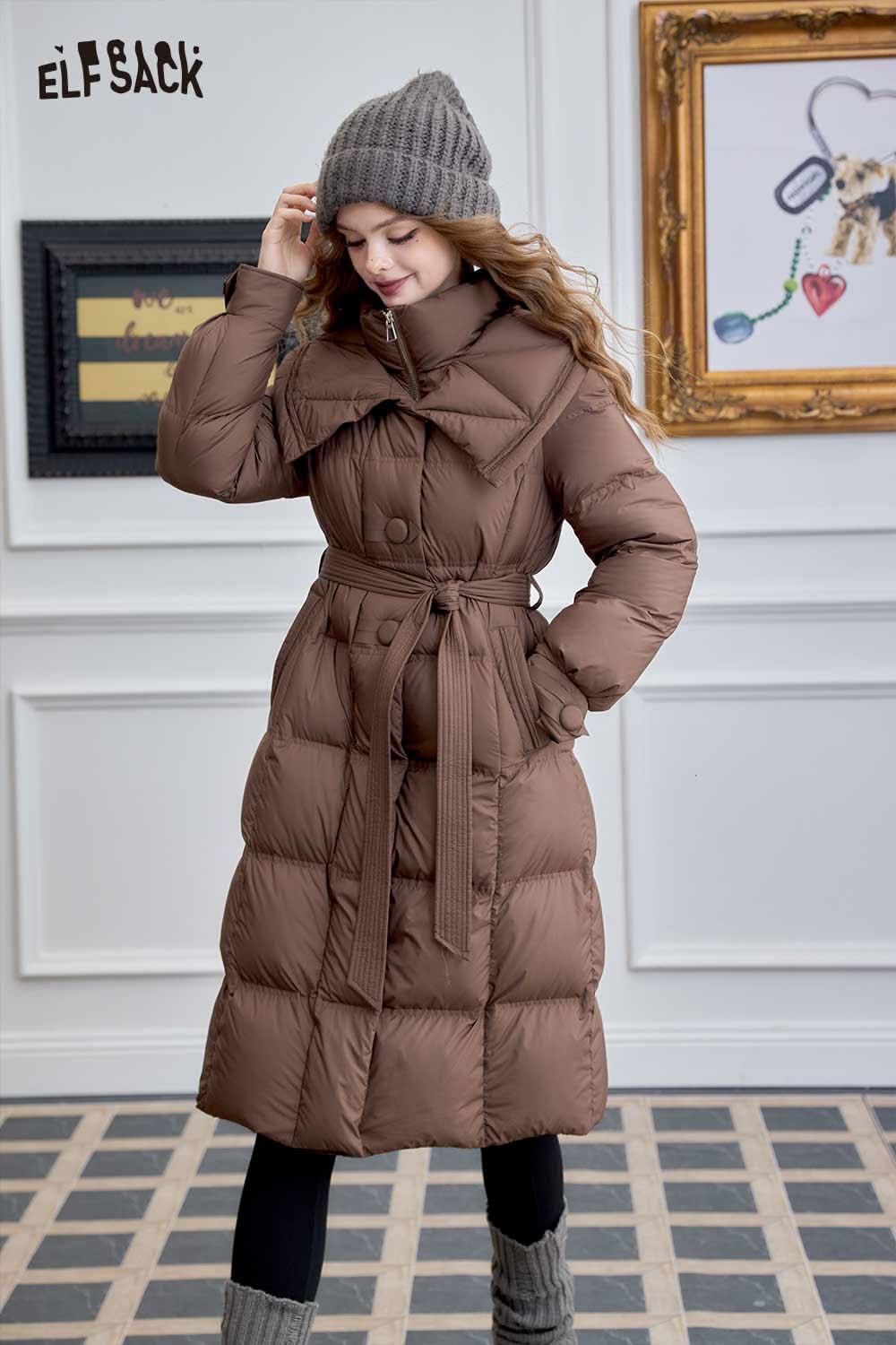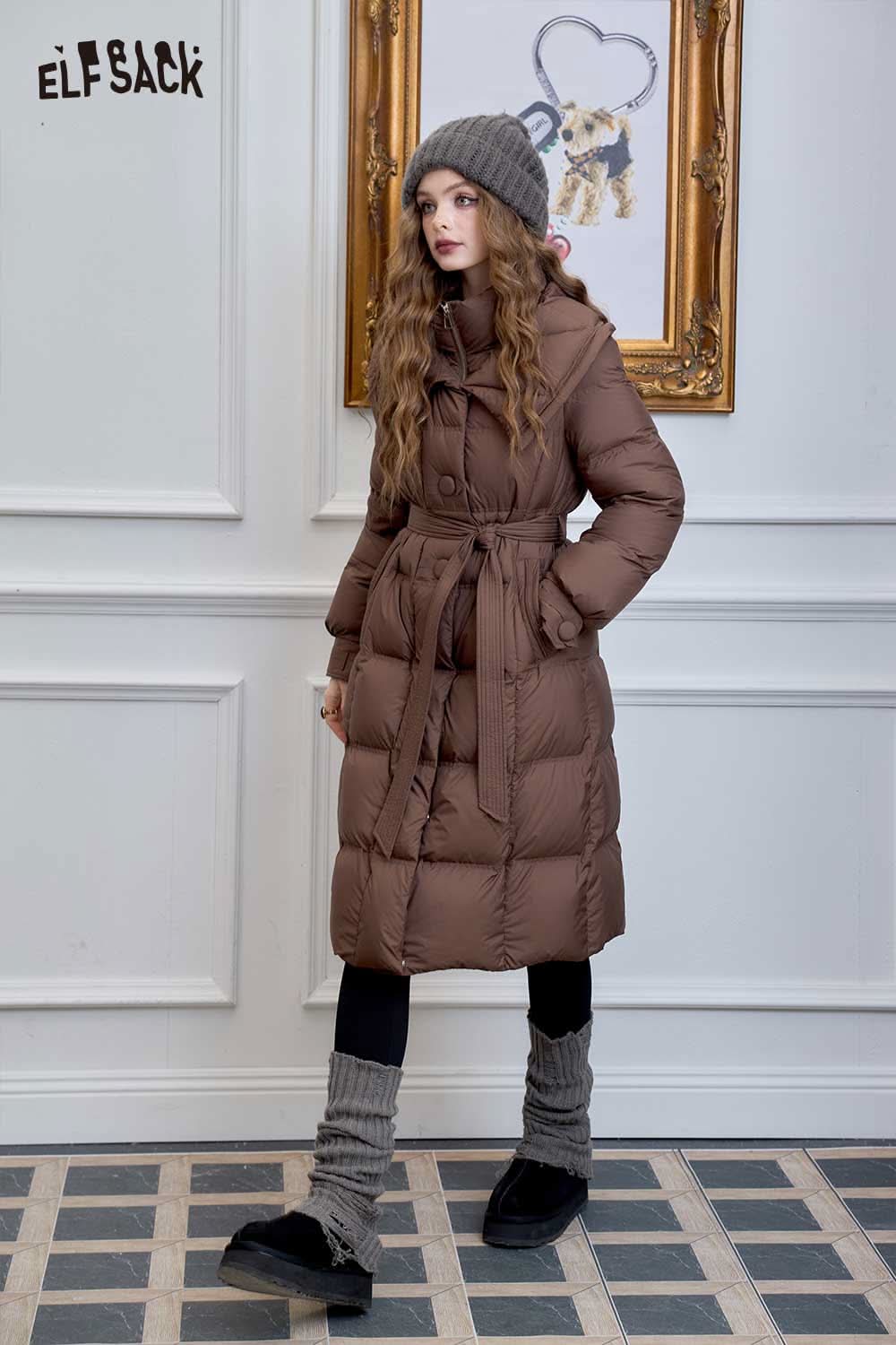 Soft Petite Warm Black Waist Long Stand Collar Down Jacket