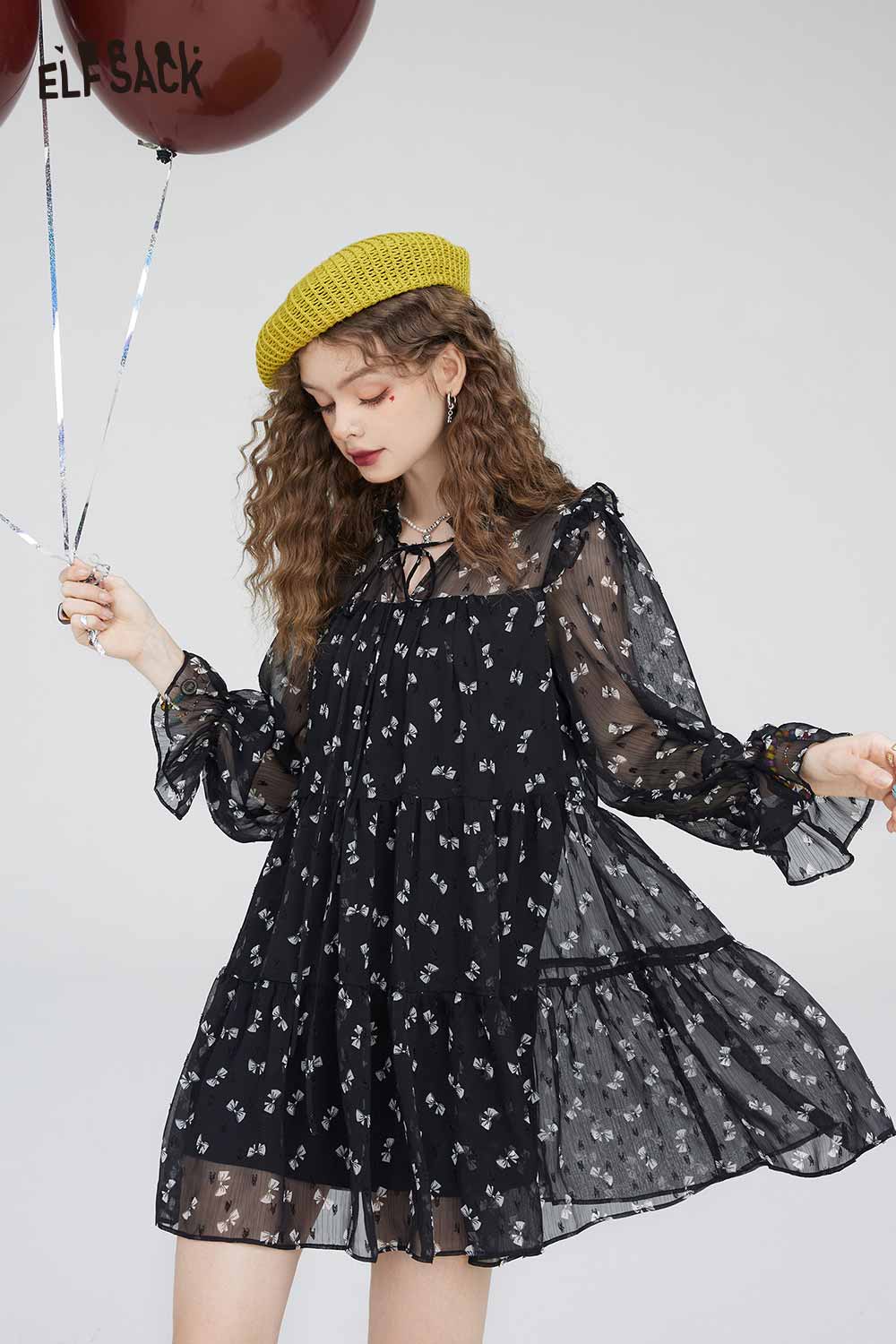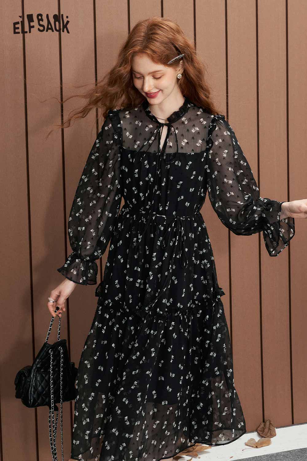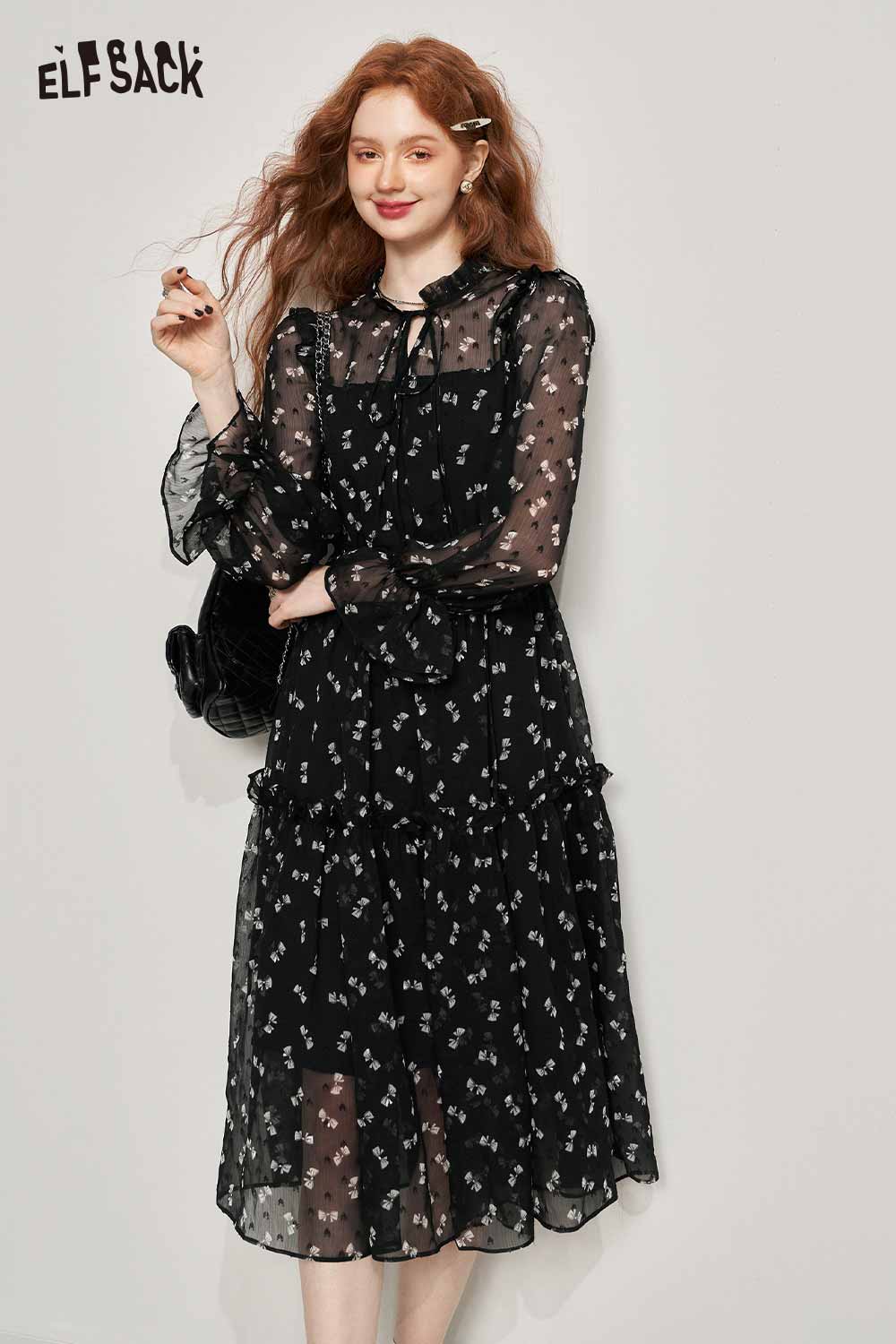 Soft Slimming Elegant Floral Long Sleeve Waist Dress