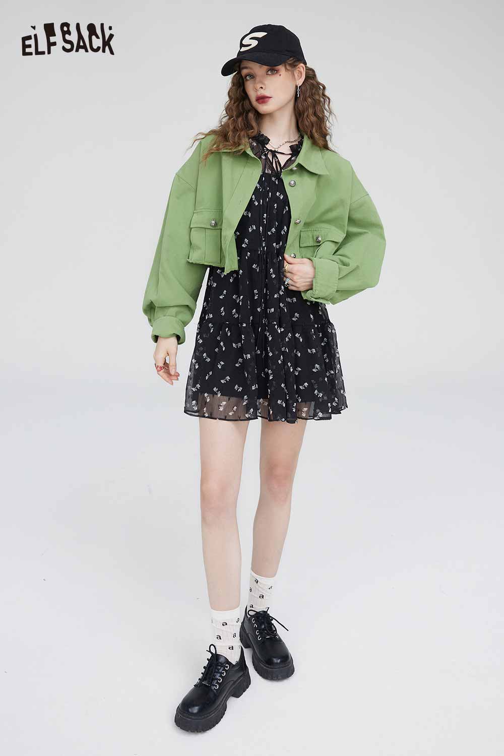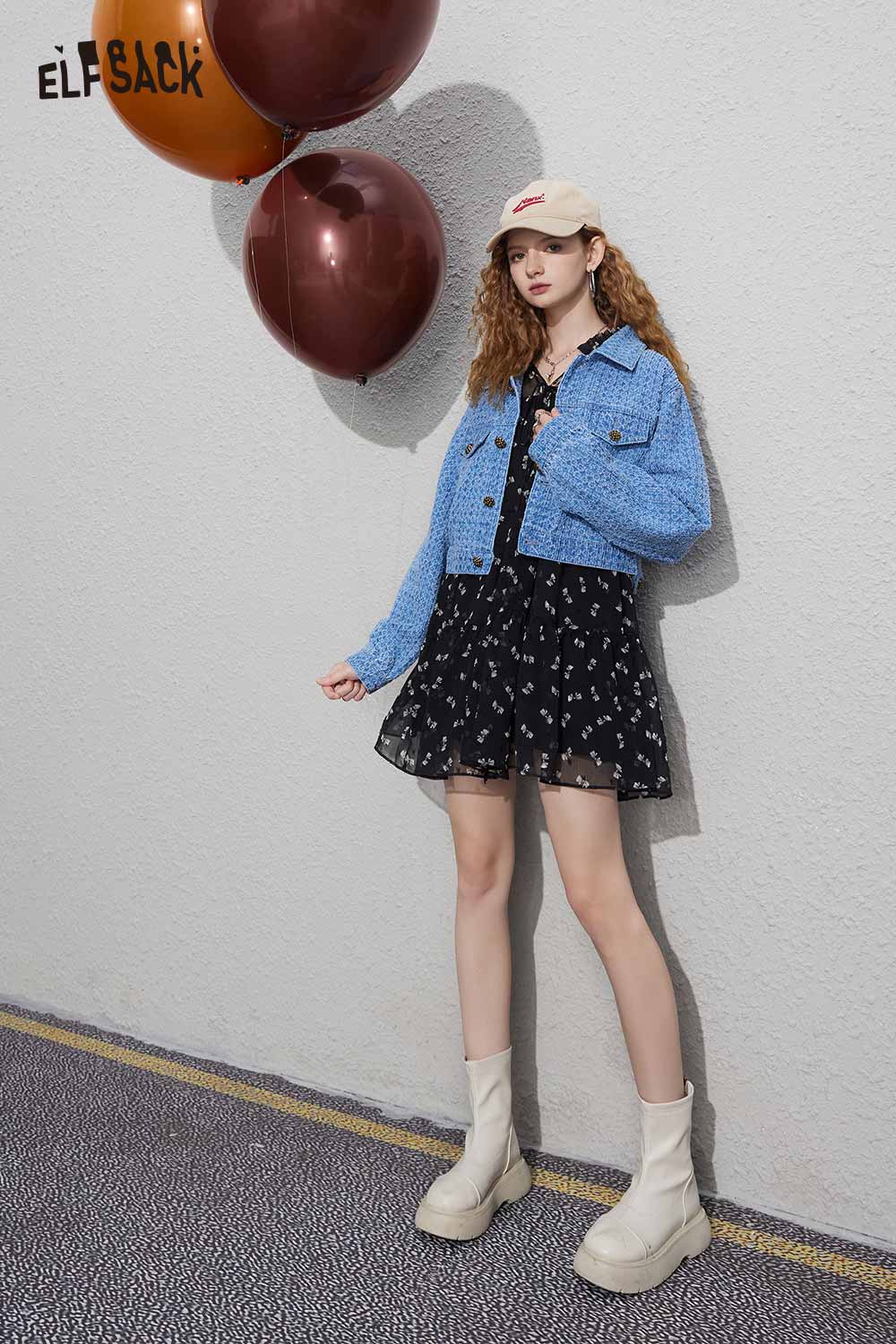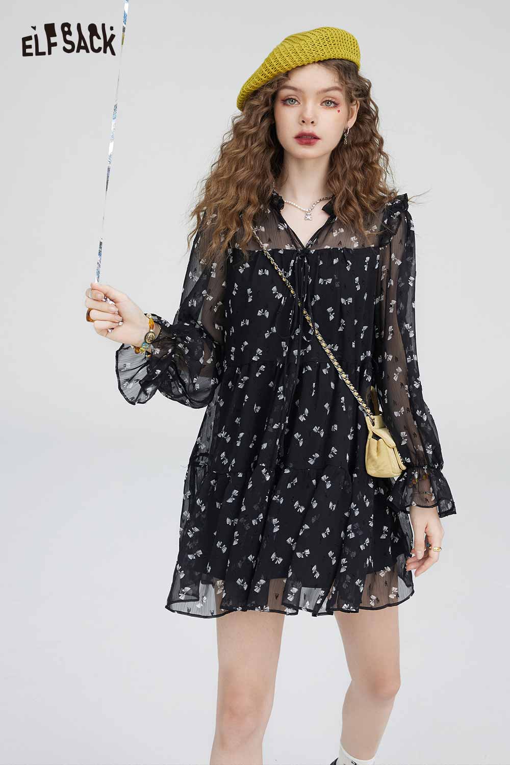 Soft Slimming Elegant Floral Long Sleeve Waist Dress