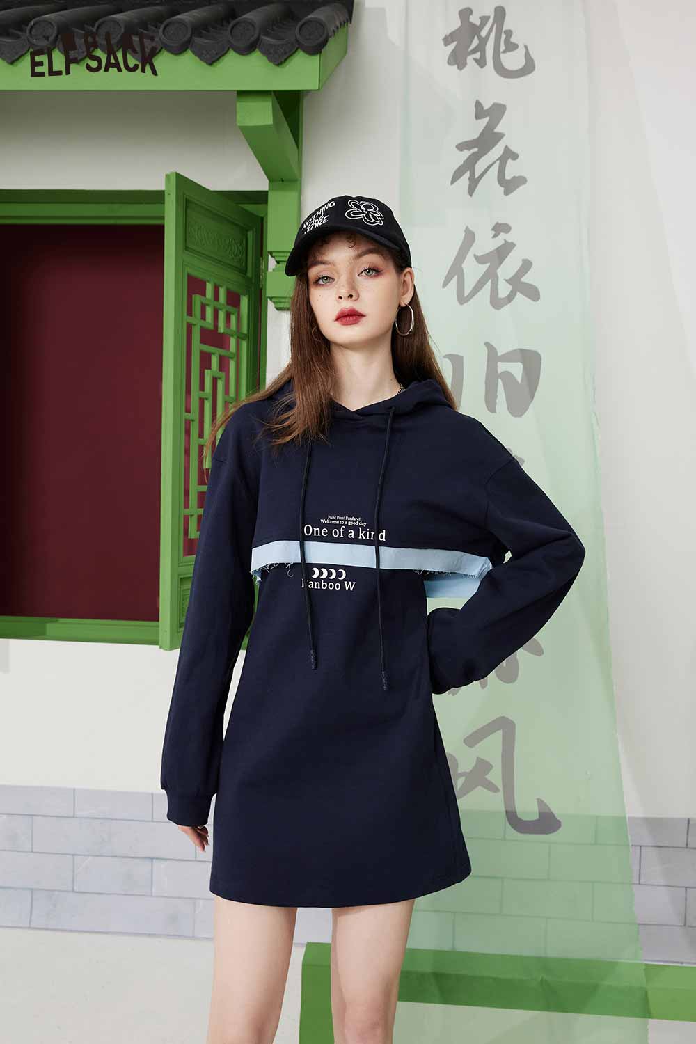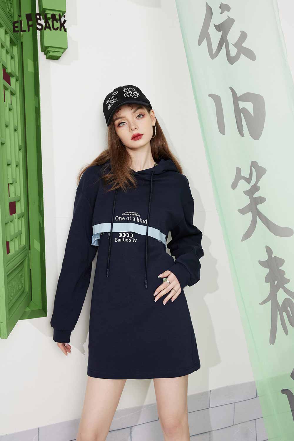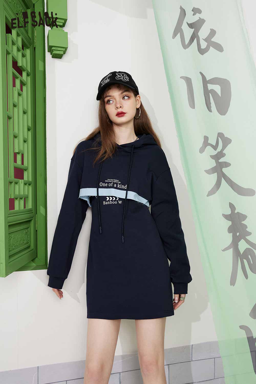 Light Hoodie Slip Patchwork Slimming Skirt Set