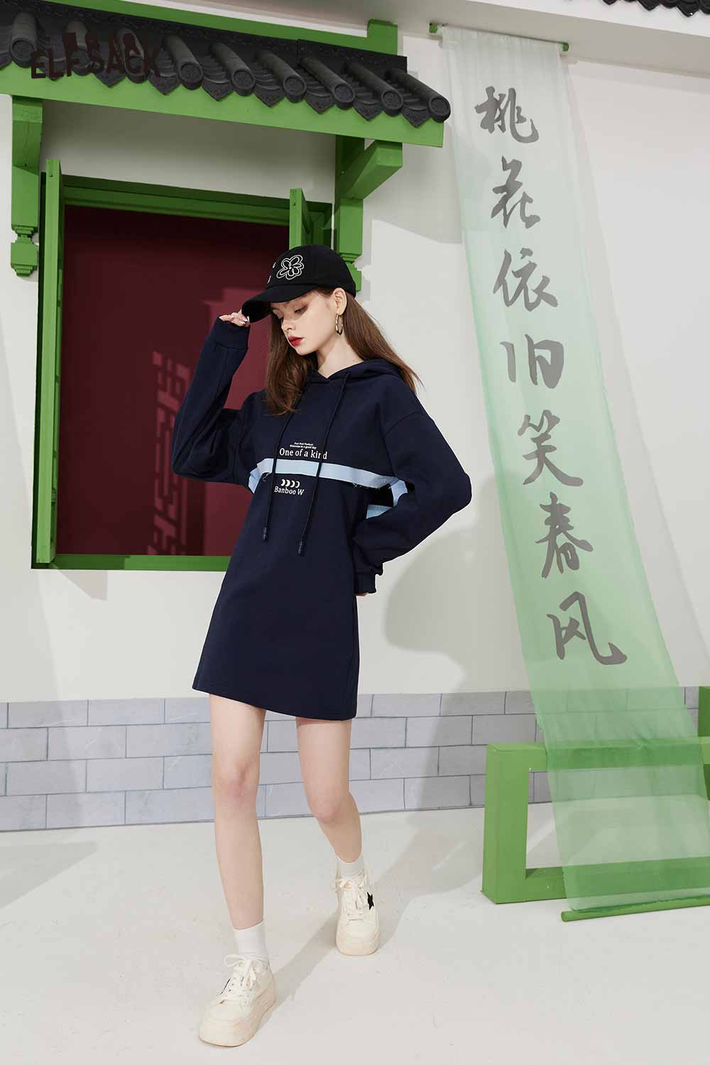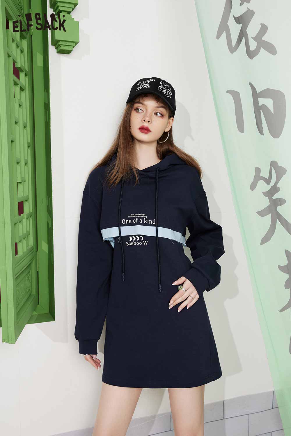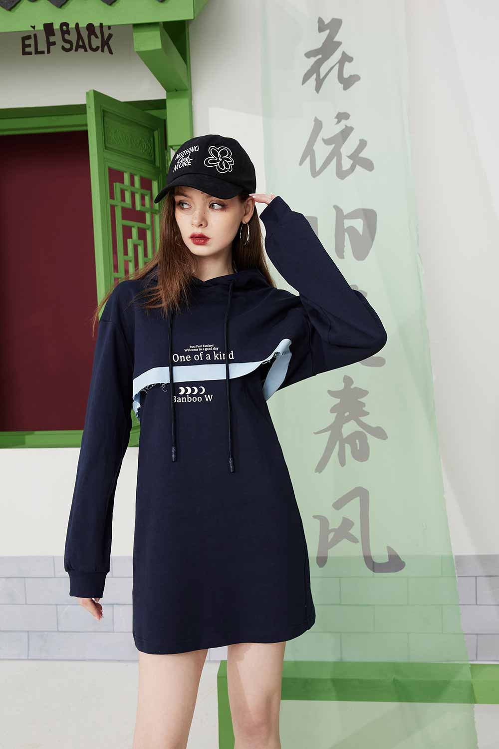 Light Hoodie Slip Patchwork Slimming Skirt Set