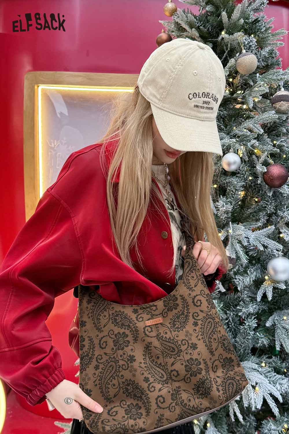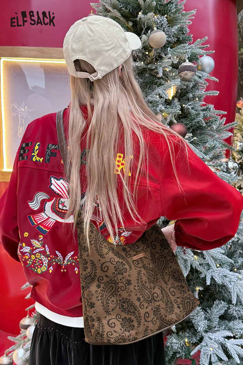 ELFSACK paisley crossbody bag for women styled with a red jacket and casual outfit