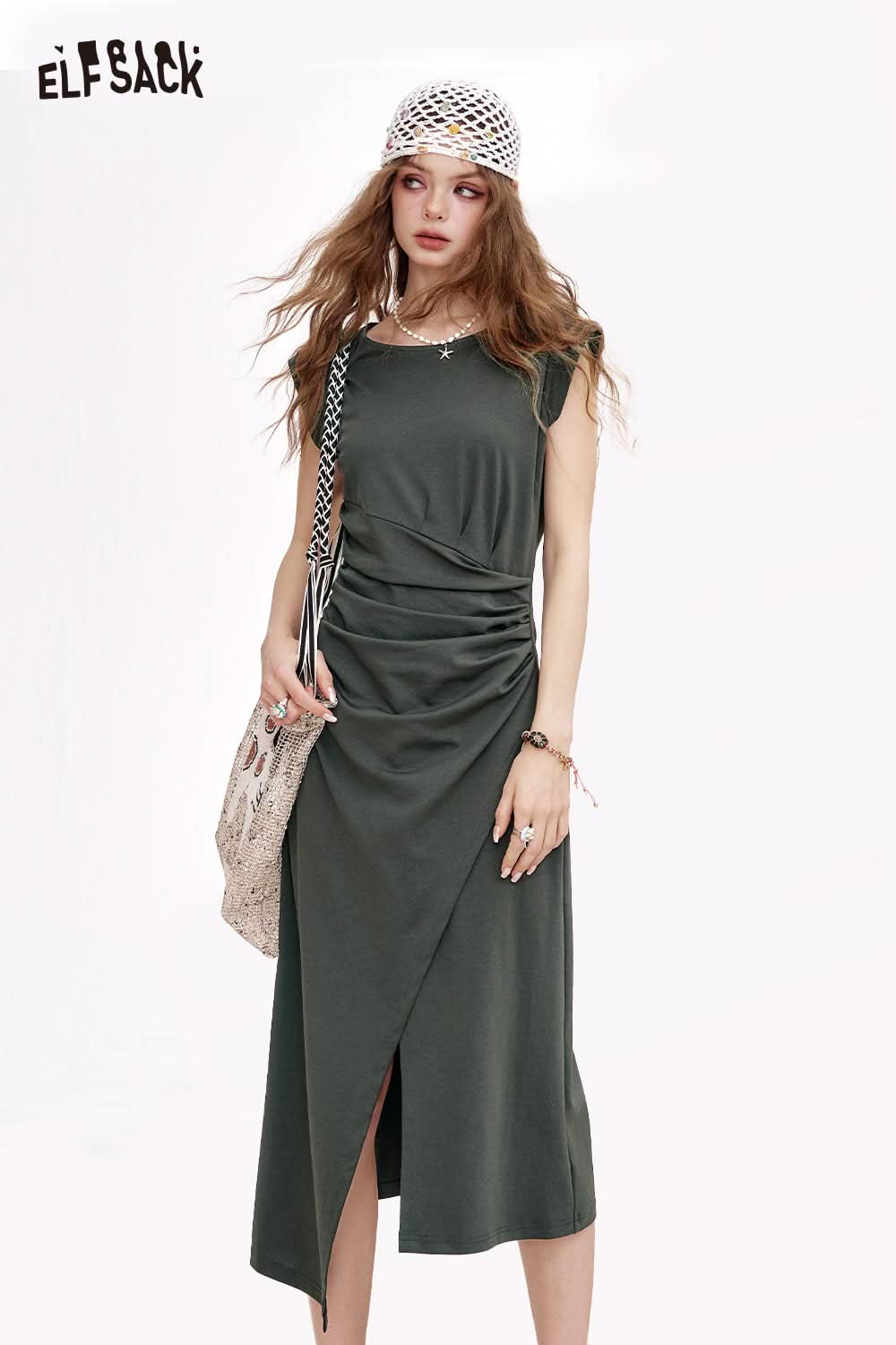 Matte Jersey Asymmetric Slit French Inspired Midi Dress