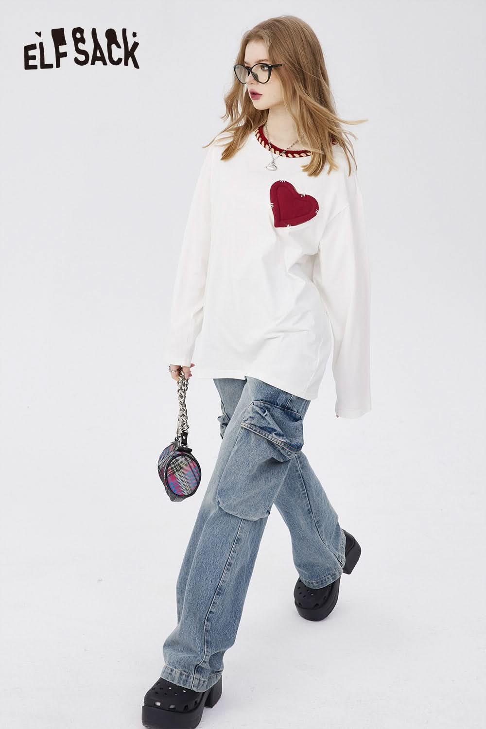 The perfect foundation for any look. Crafted from soft, breathable 100% cotton, this essential women's long-sleeve t-shirt is designed with a flattering slim fit, making it the ideal layering piece. Its defining feature is a delicate, playful heart embroidery that adds a touch of romantic, sweet charm.