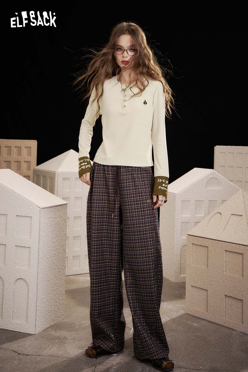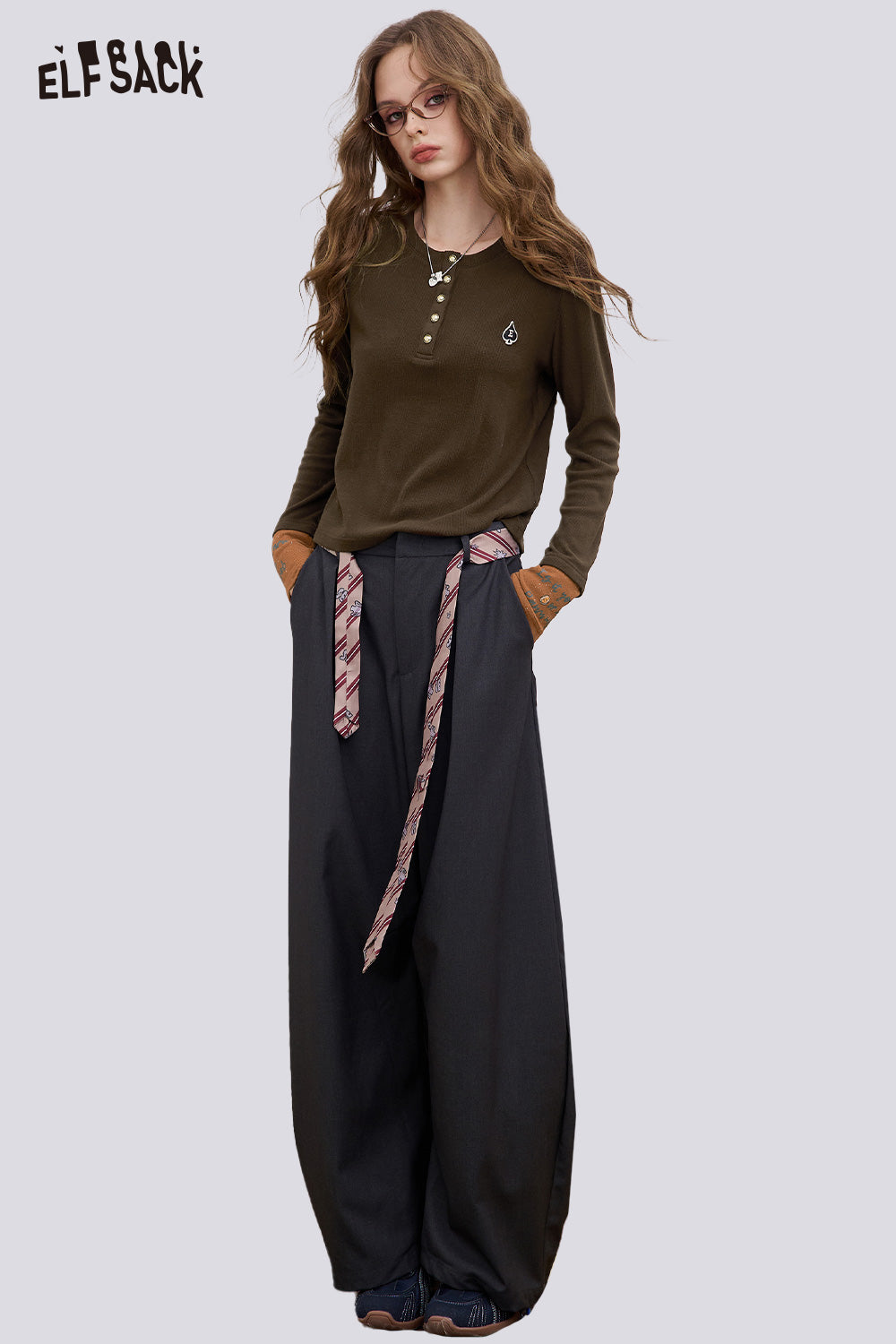 Soft Spliced Sleeve Round Neck Long Sleeve Tshirt