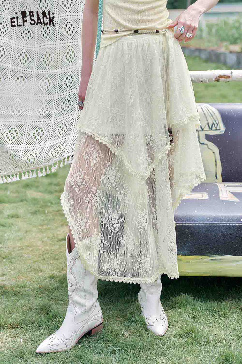Asymmetric Lace Patchwork Design Slimming A Line Half Skirt