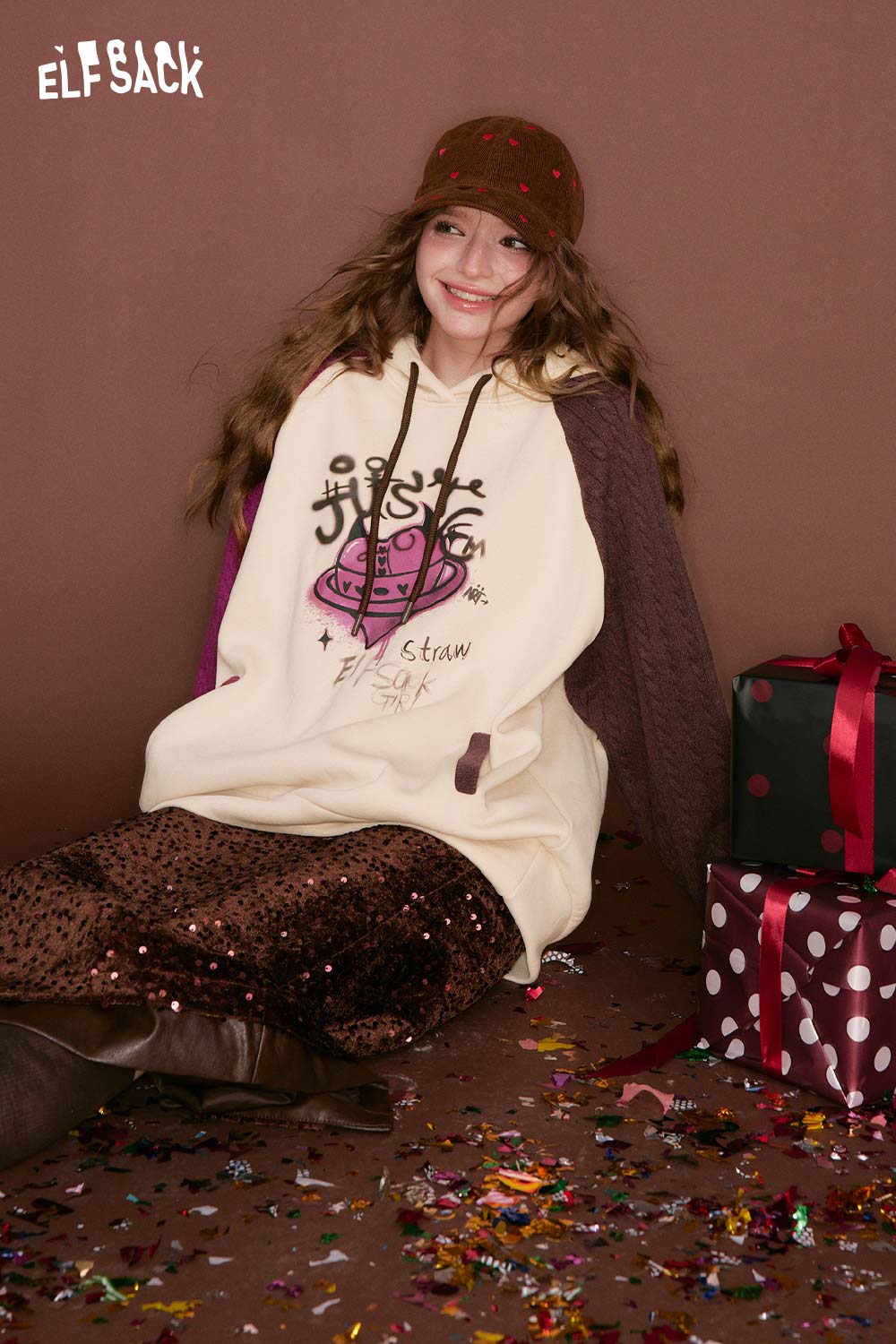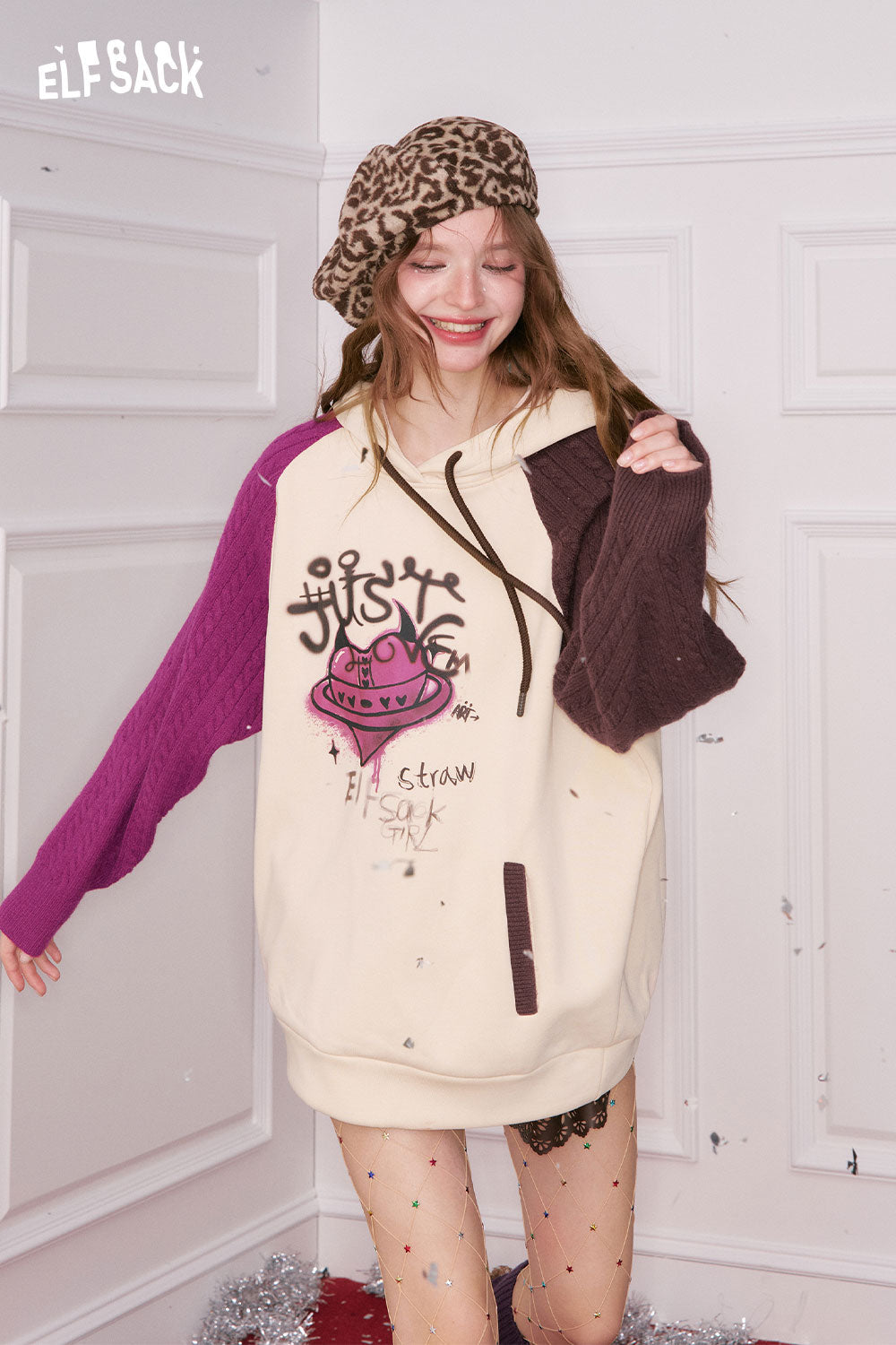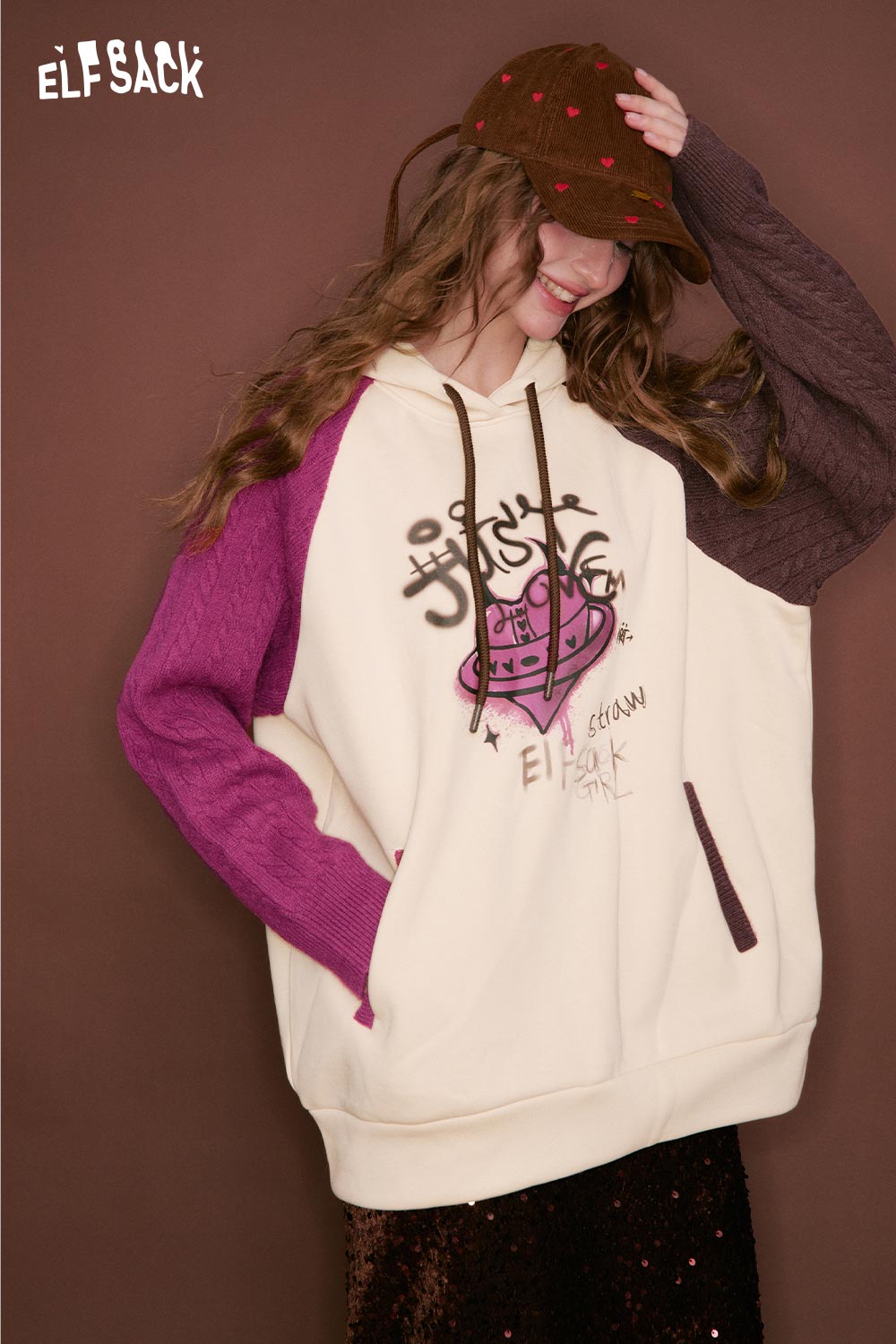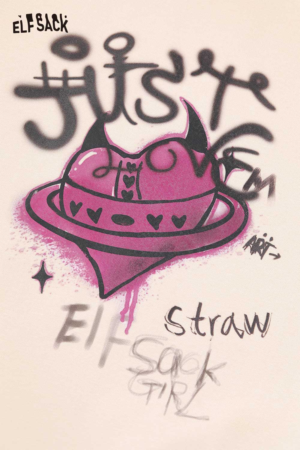 Casual Color Block Raglan Sleeve Heart Letter Doodle Pocket Hoodie