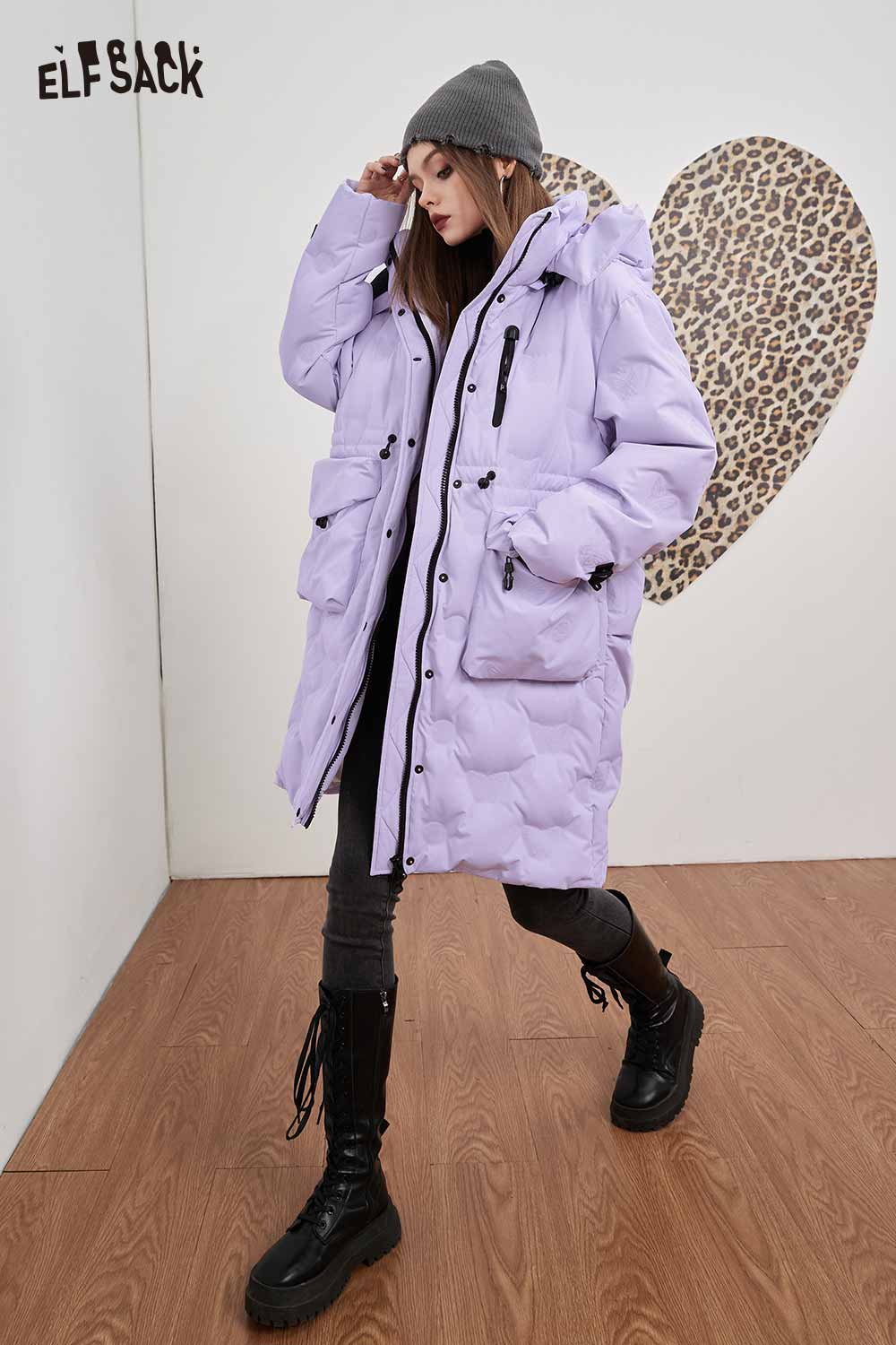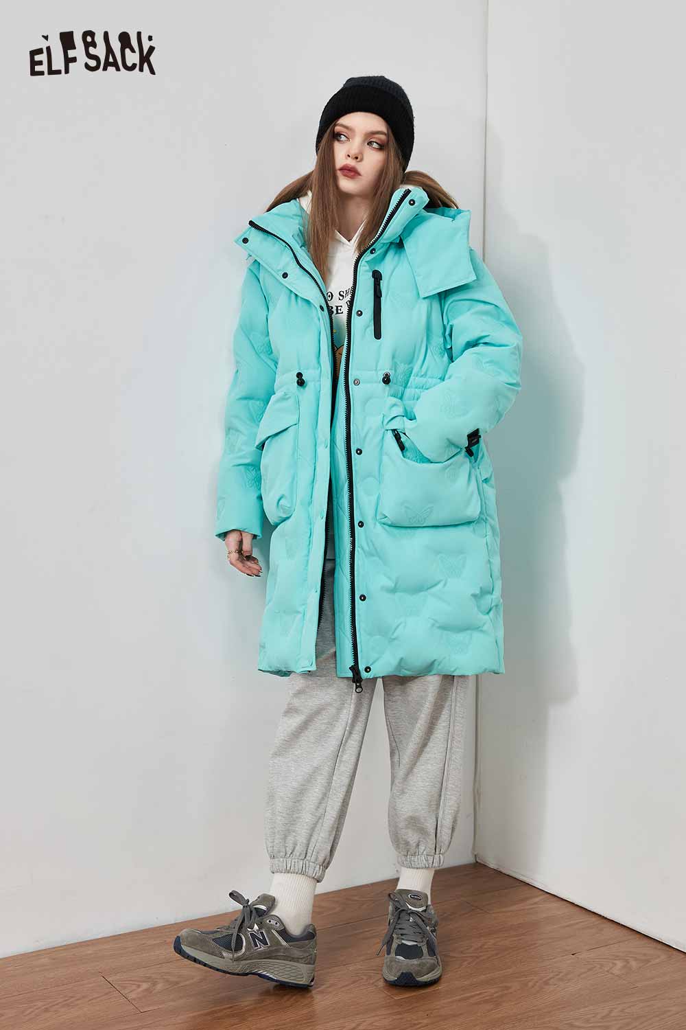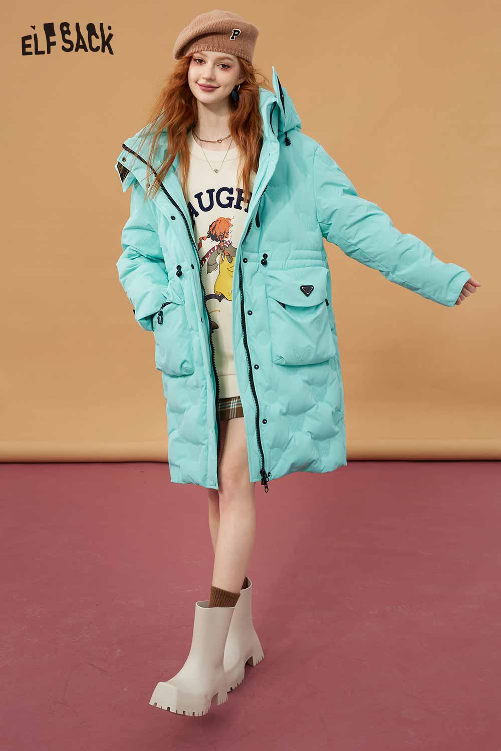 Soft Casual Design Mid Length Solid Hooded Down Jacket