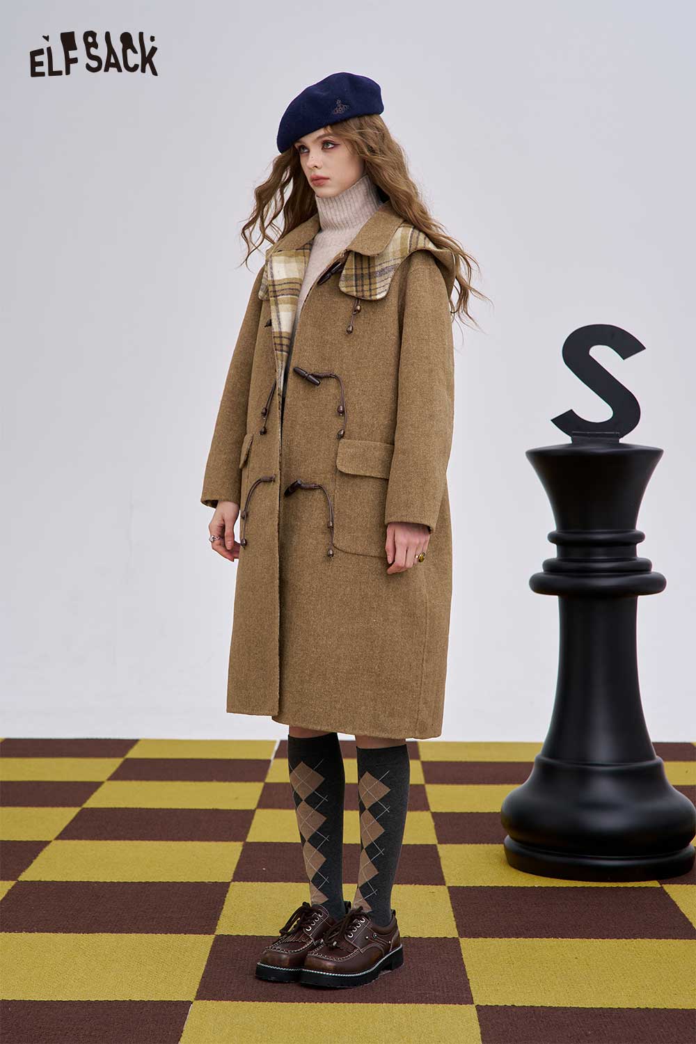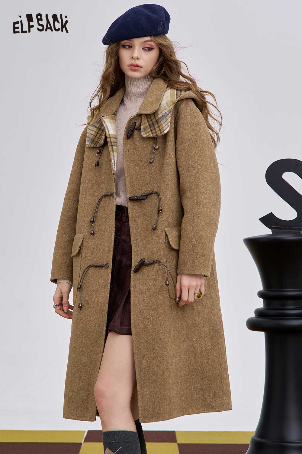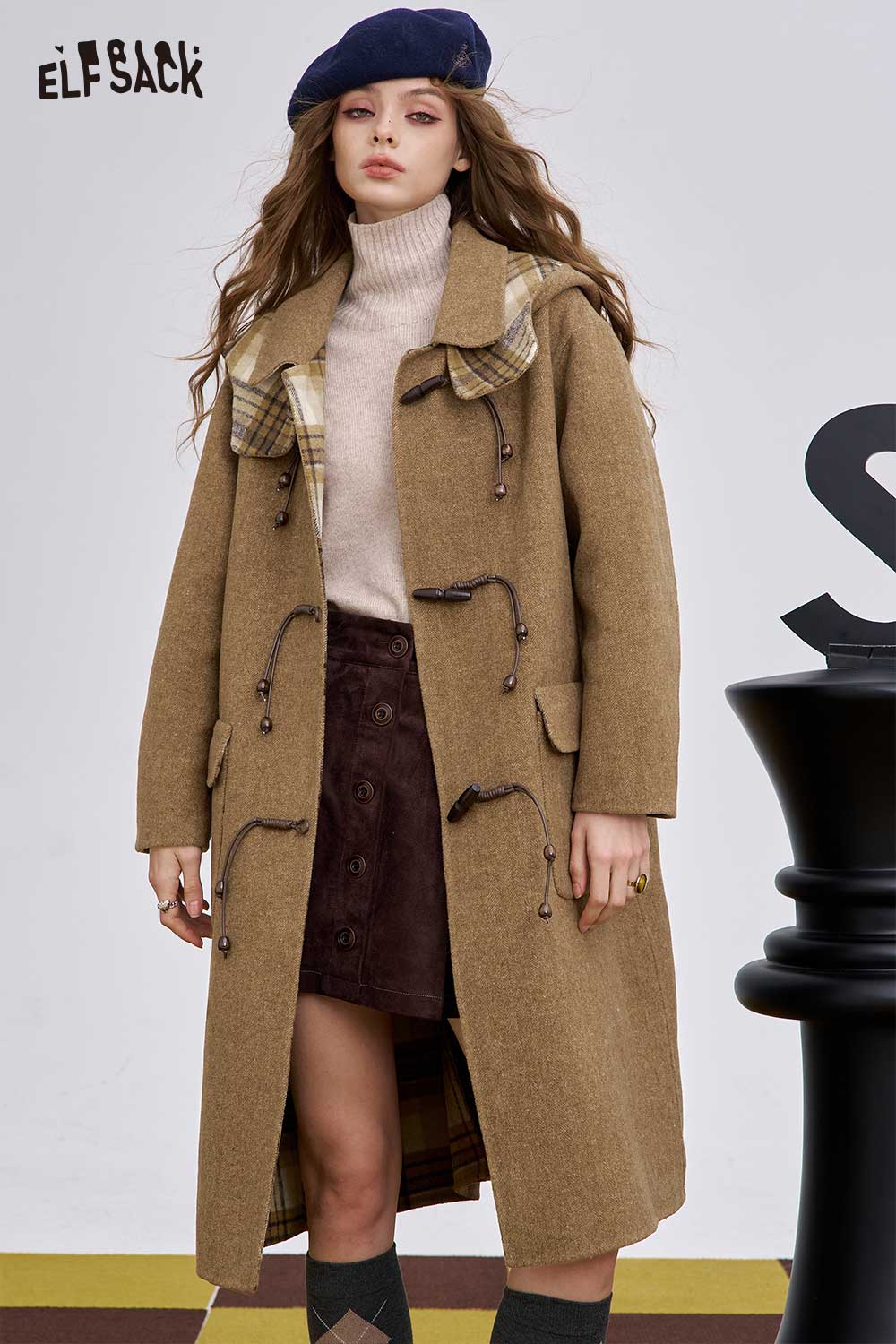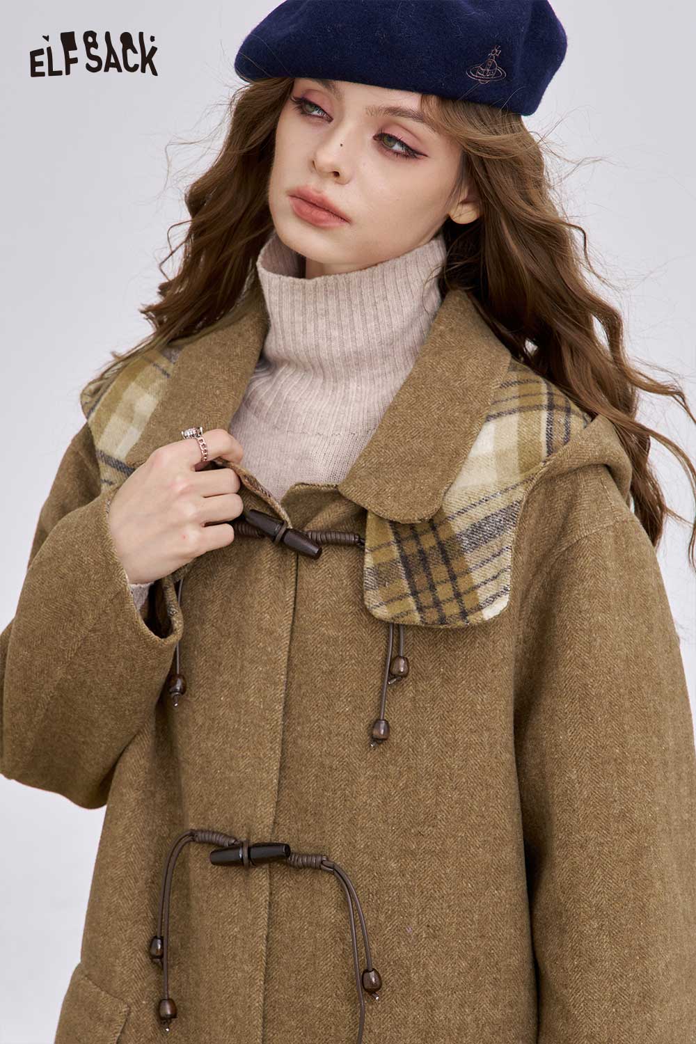Soft Striped Lining Toggle Wool Blend Coat