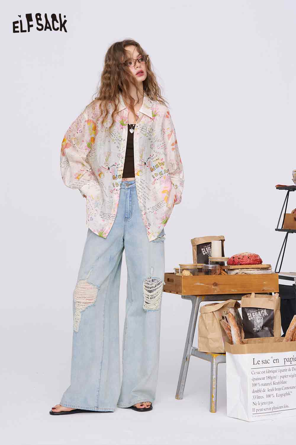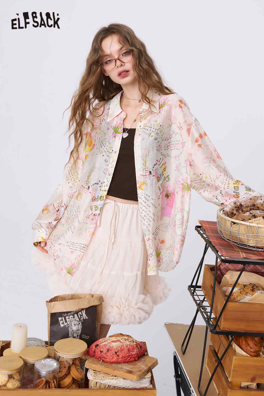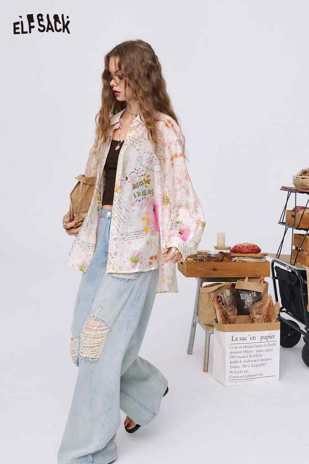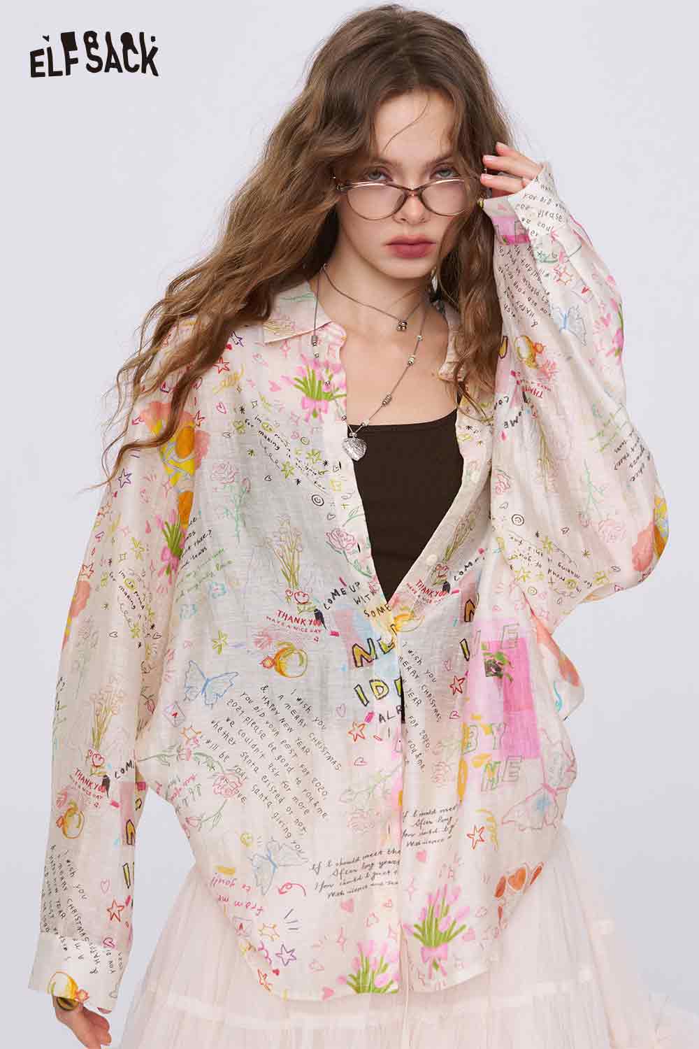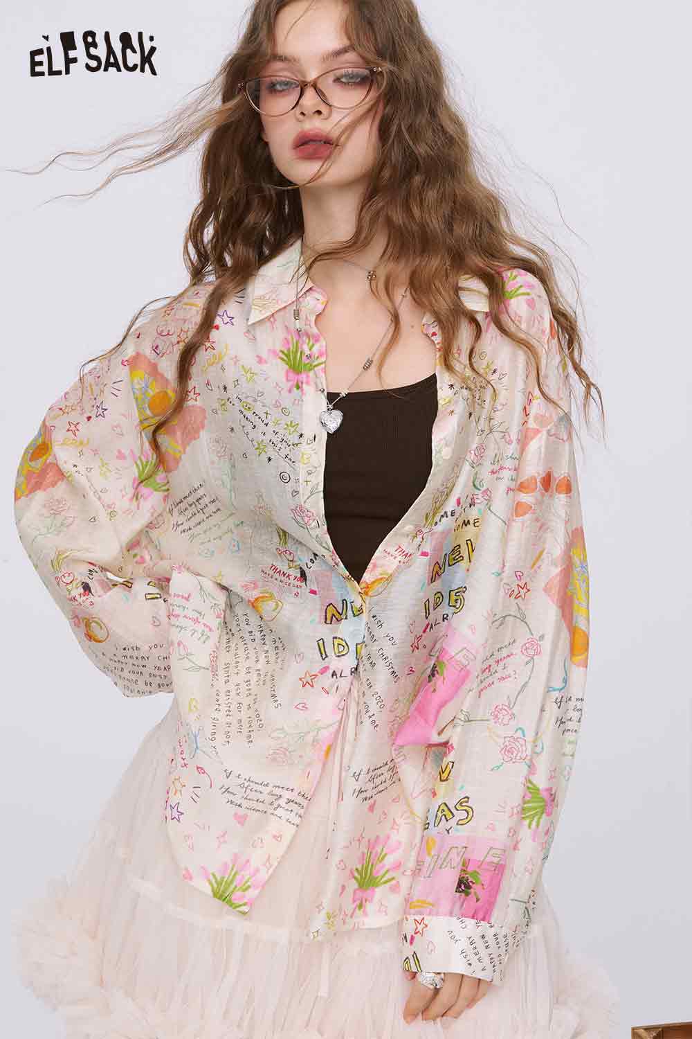 Graffiti Cartoon Print Long Sleeve Shirt